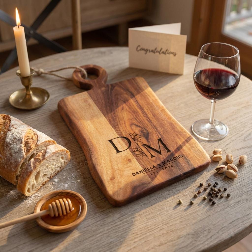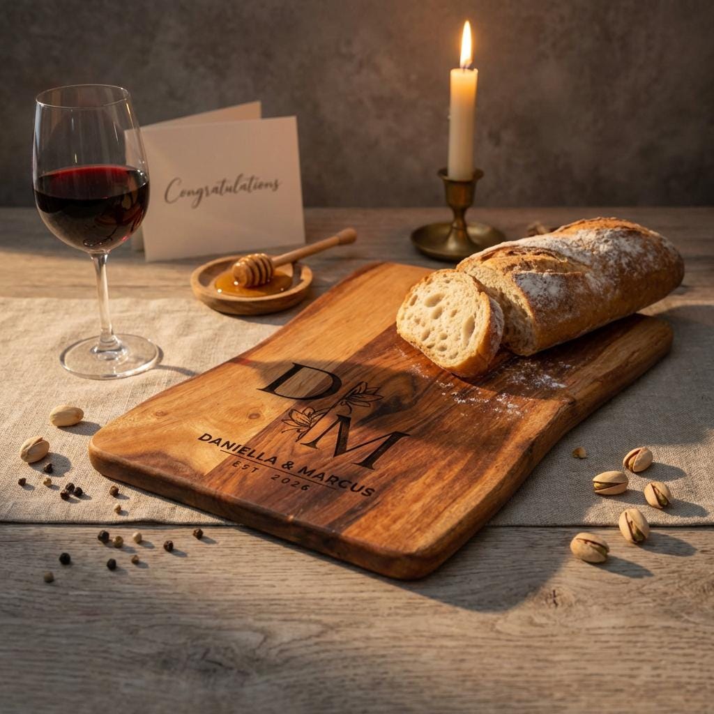Enter Personalization: Provide Names, Monogram Letter, and any Date/Year (e.g., D | M, Daniella & Marcus, Est. 2026).