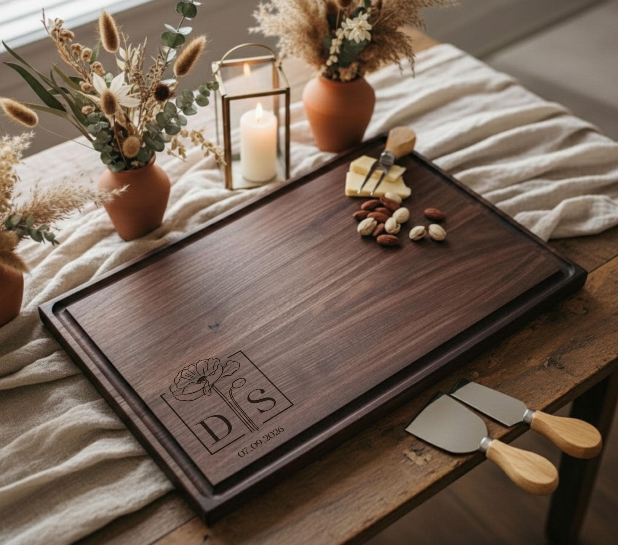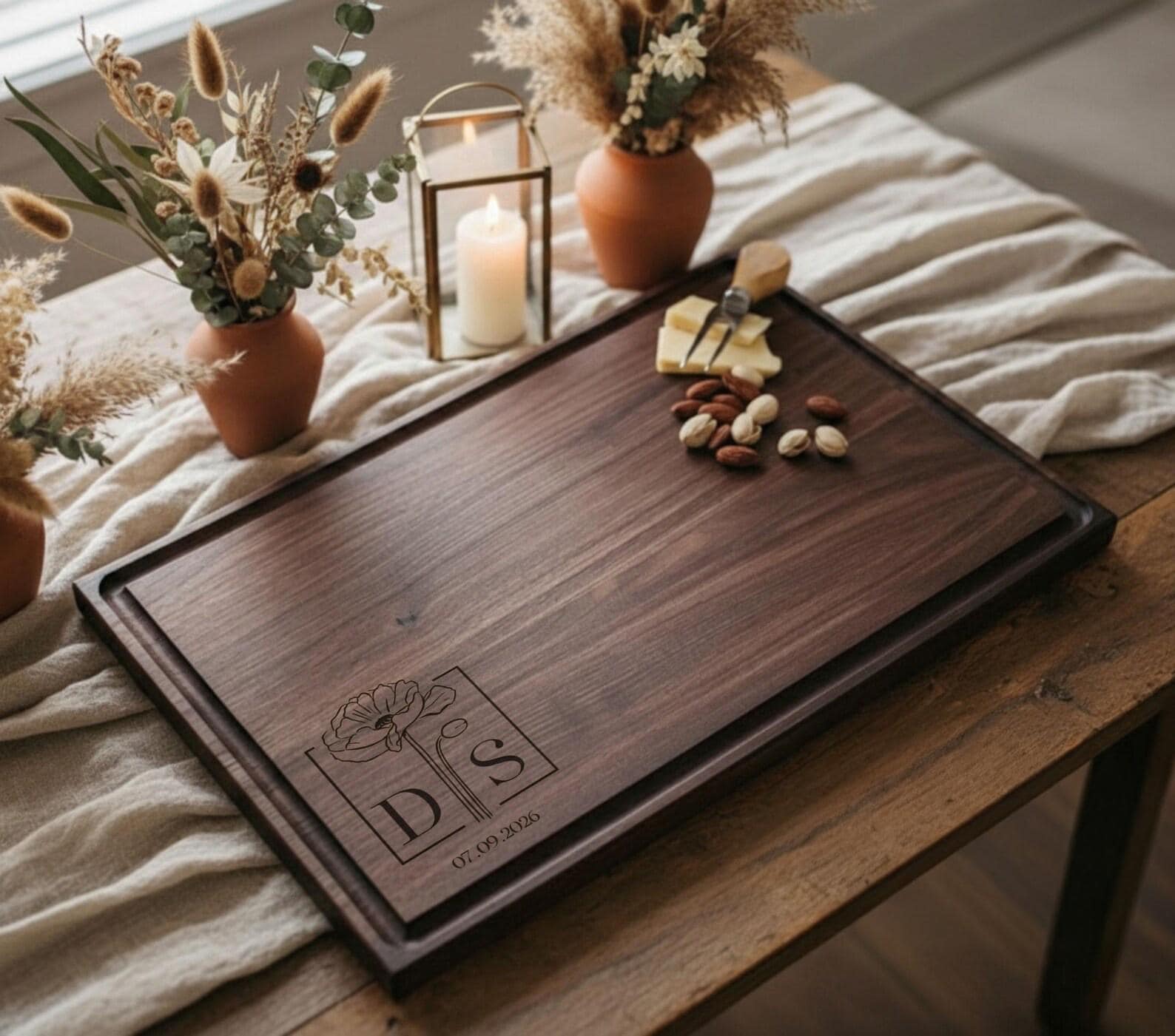 Personalized Cutting Board – Housewarming Gift For Couples: Custom Engraved Monogrammed Charcuterie Board