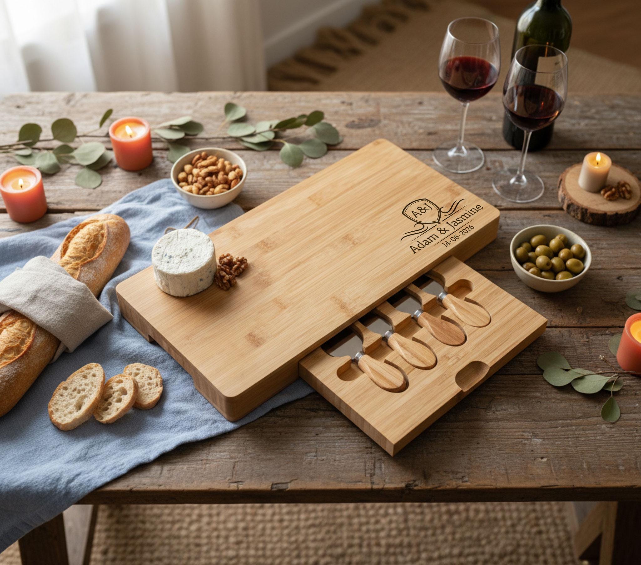 Elevate every occasion with this personalized cheese board set that effortlessly blends art, function, and sentiment. Click “Add to Cart” now to make your special moments unforgettable!