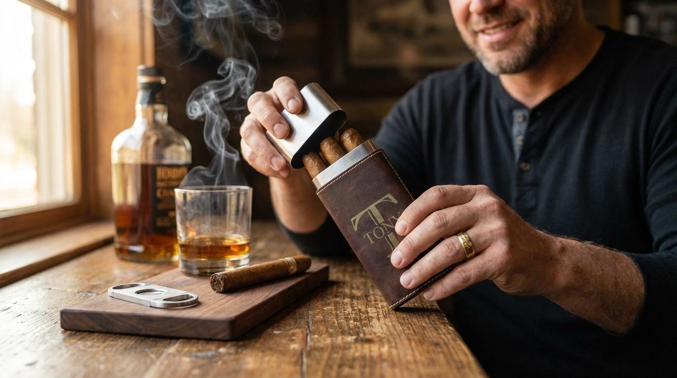Perfect for: Groomsmen gifts, Father’s Day, travel-ready cigar storage, birthday and anniversary presents.