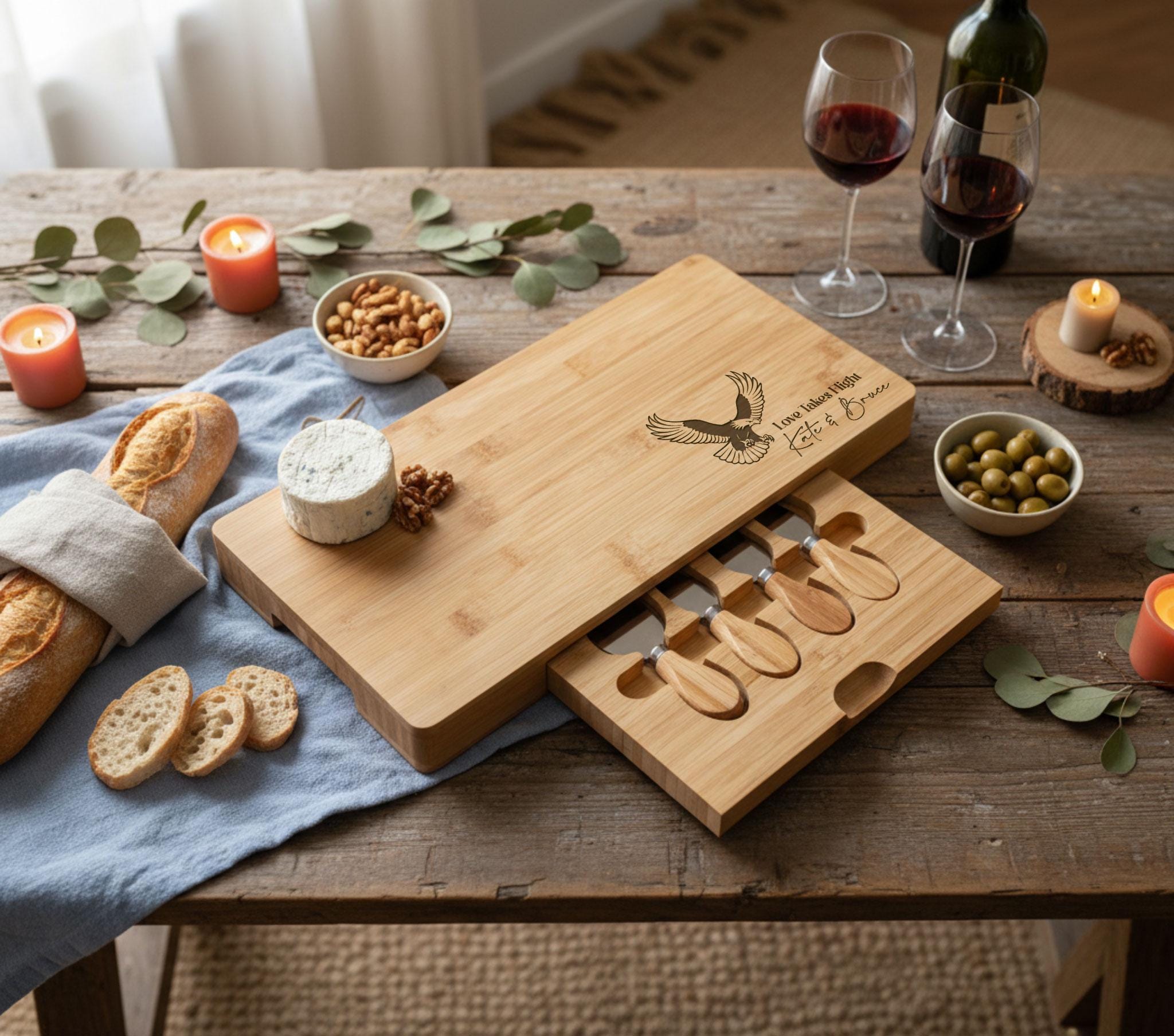 Elevate every occasion with this personalized cheese board set that effortlessly blends art, function, and sentiment. Click “Add to Cart” now to make your special moments unforgettable!