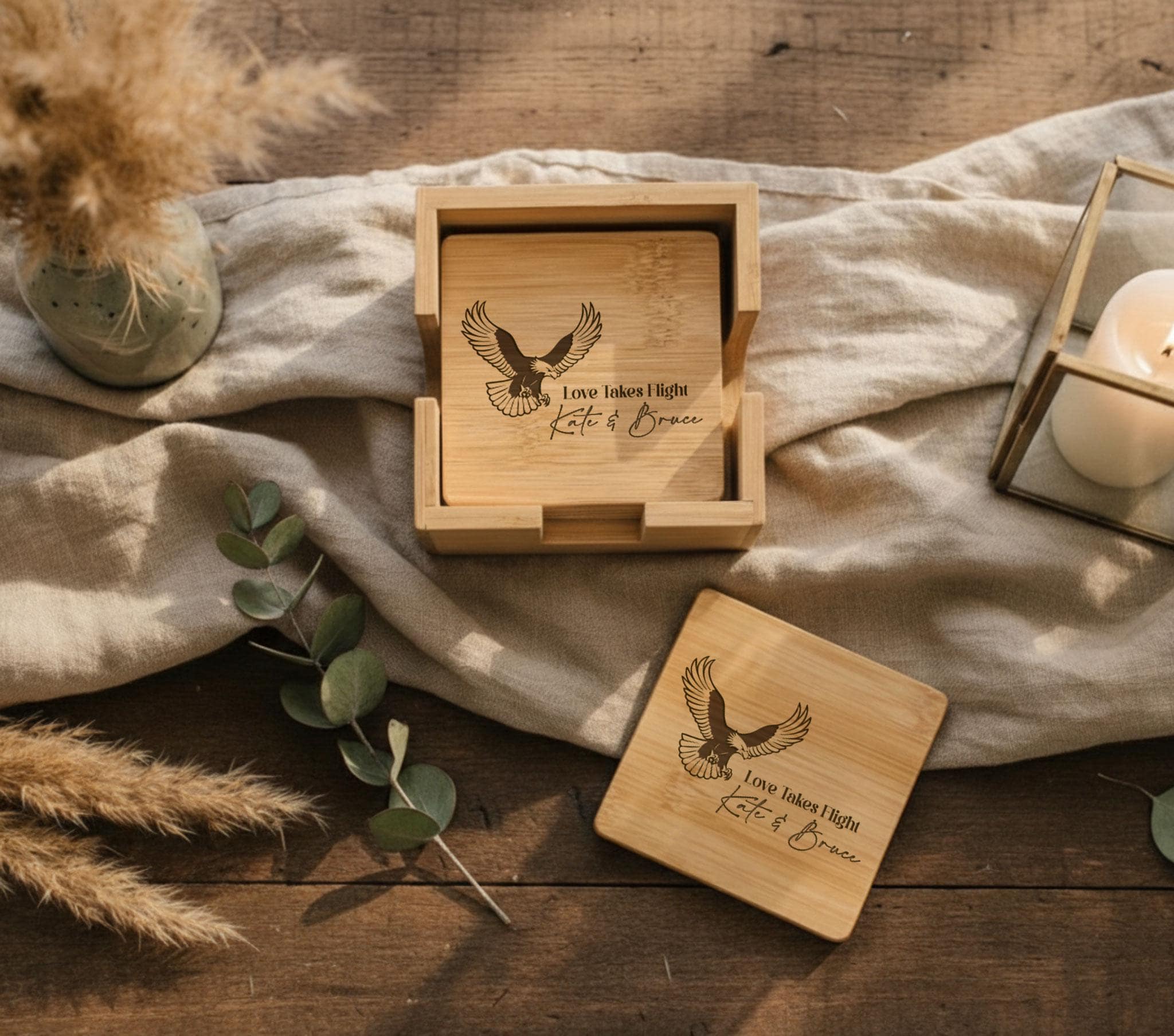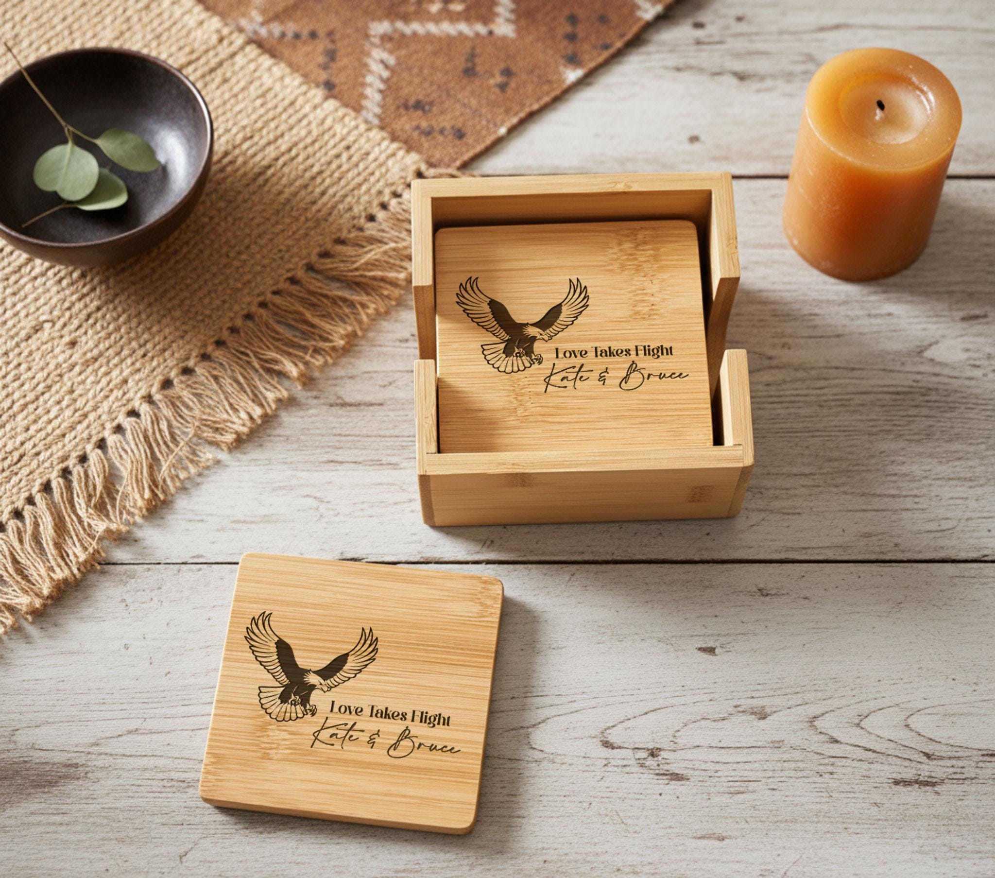 Pair the personalized board with the matching coaster set for a complete, sophisticated presentation.