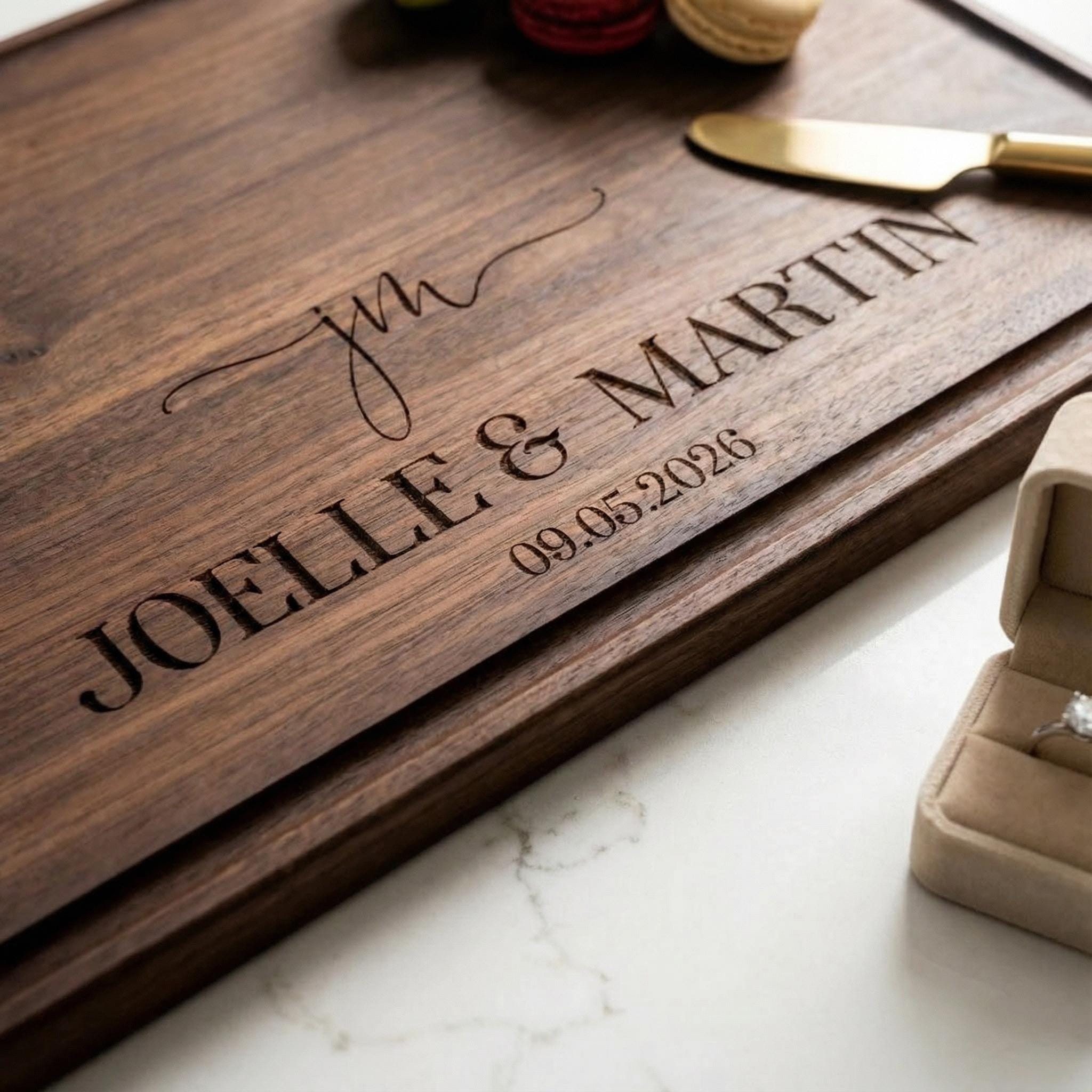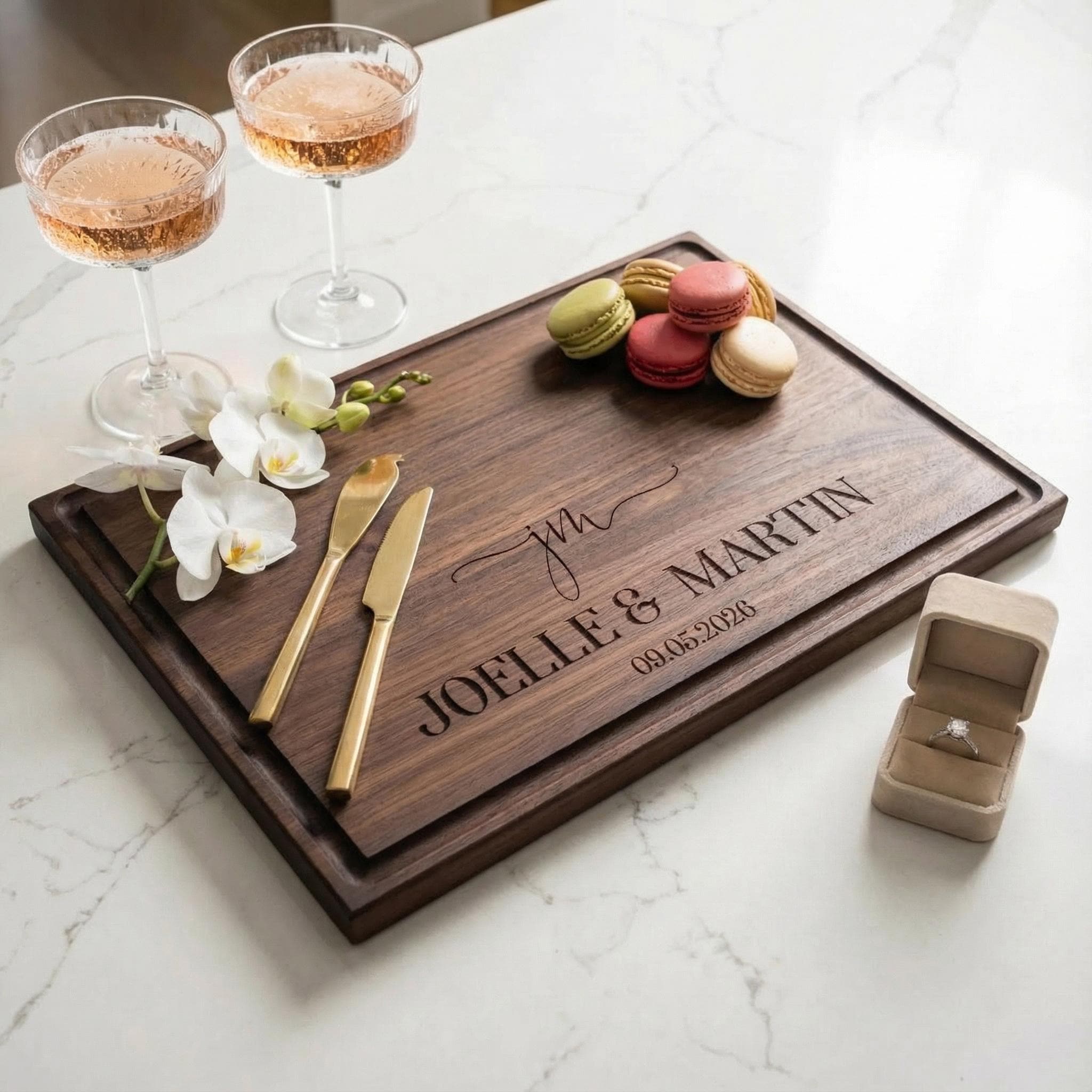 Celebrate a new chapter with a personalized engraving that transforms this customized board into a family heirloom.