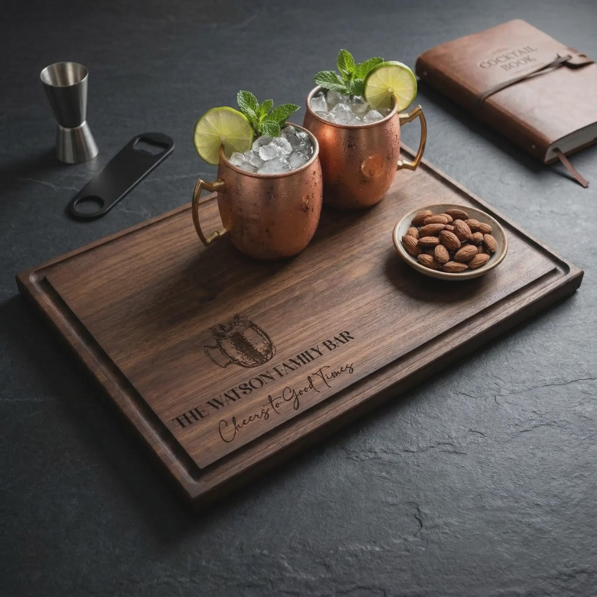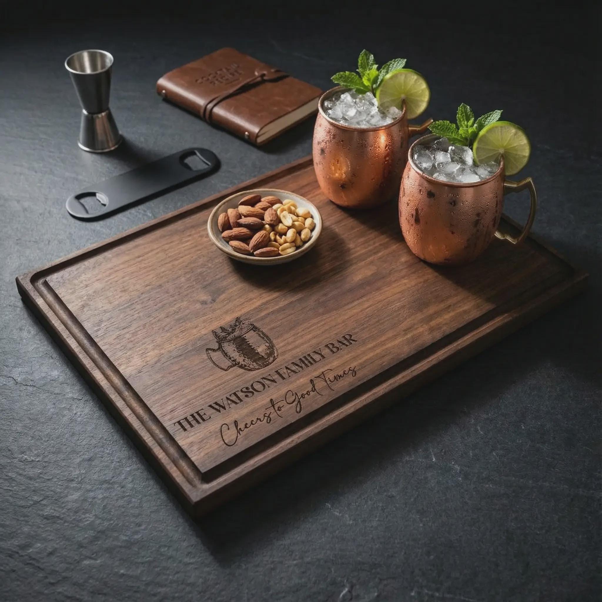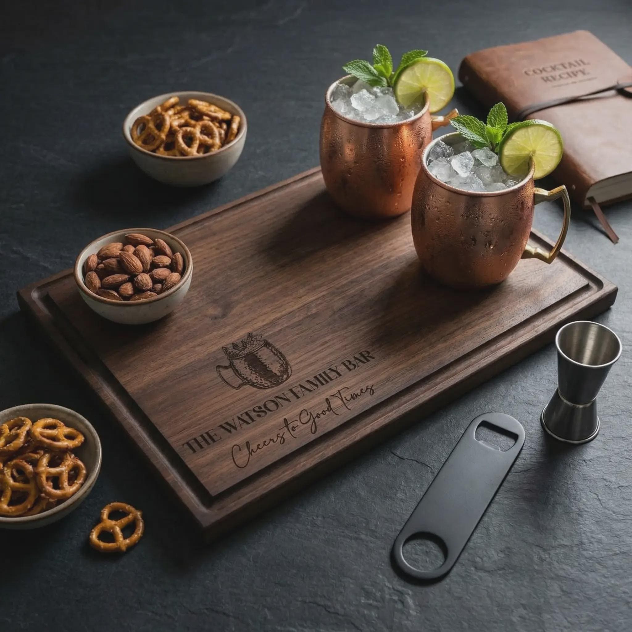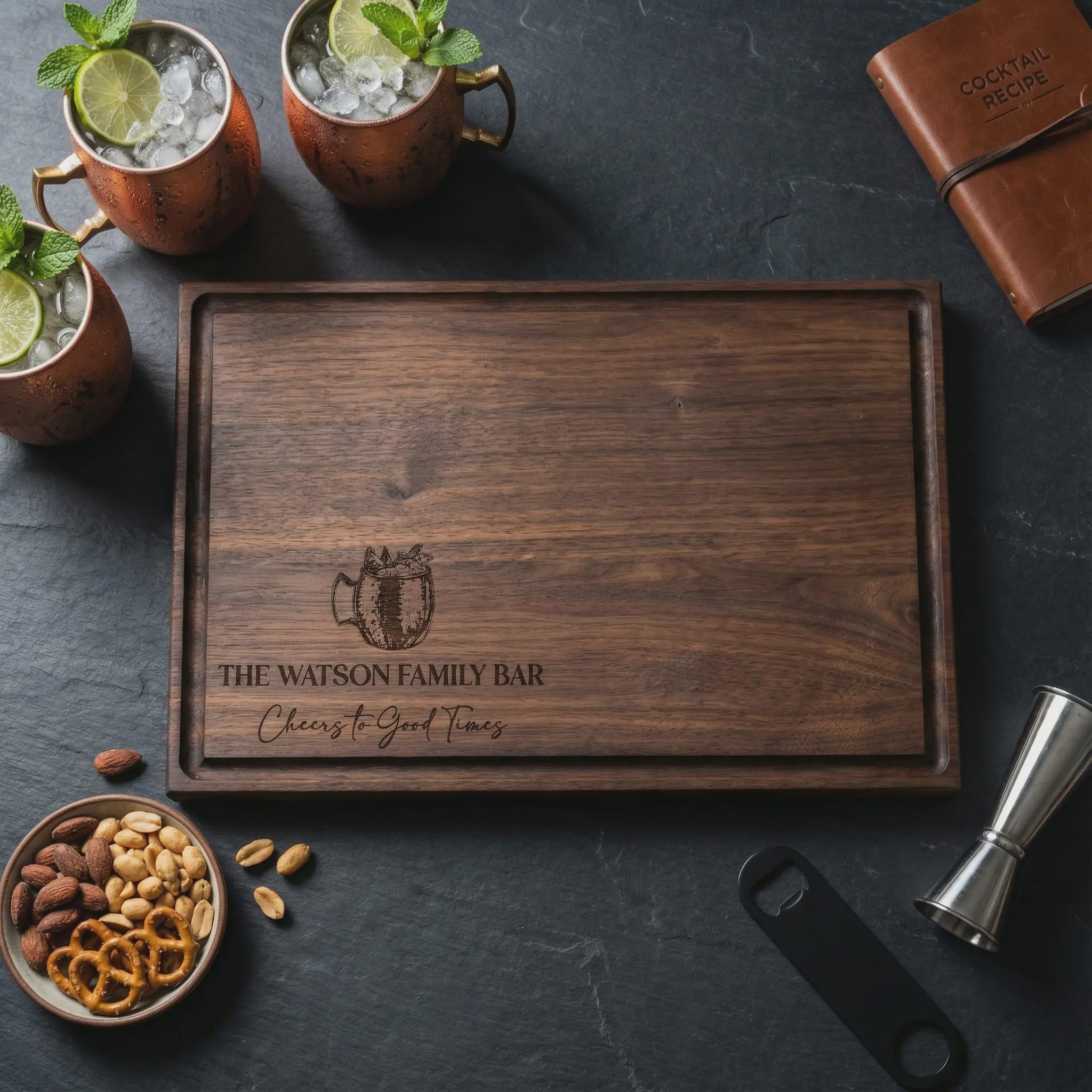 Moscow Mule Gift | Personalized Cutting Board & Custom "Family Bar" Cocktail Garnish Tray