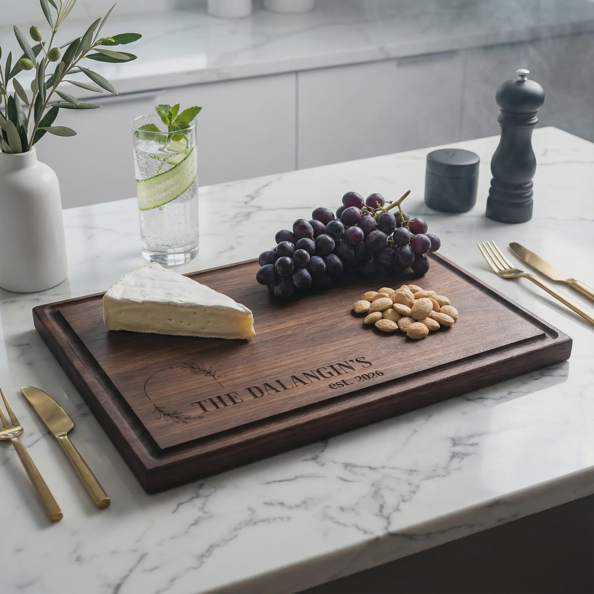 More than just a cutting tool—this engraved board doubles as a work of art for your kitchen, symbolizing the joy of a new home and family.
