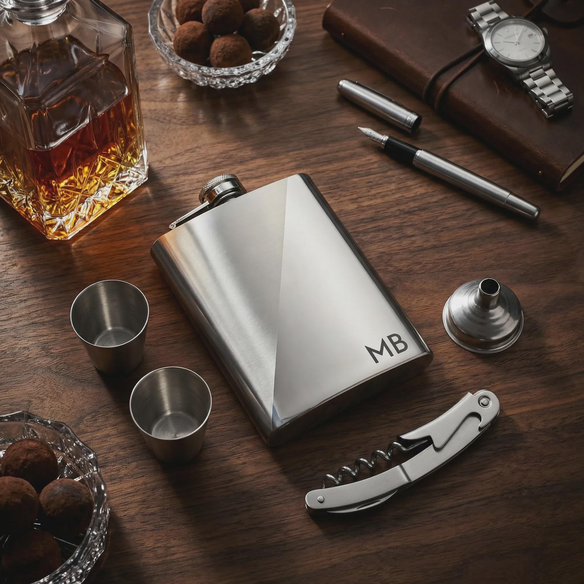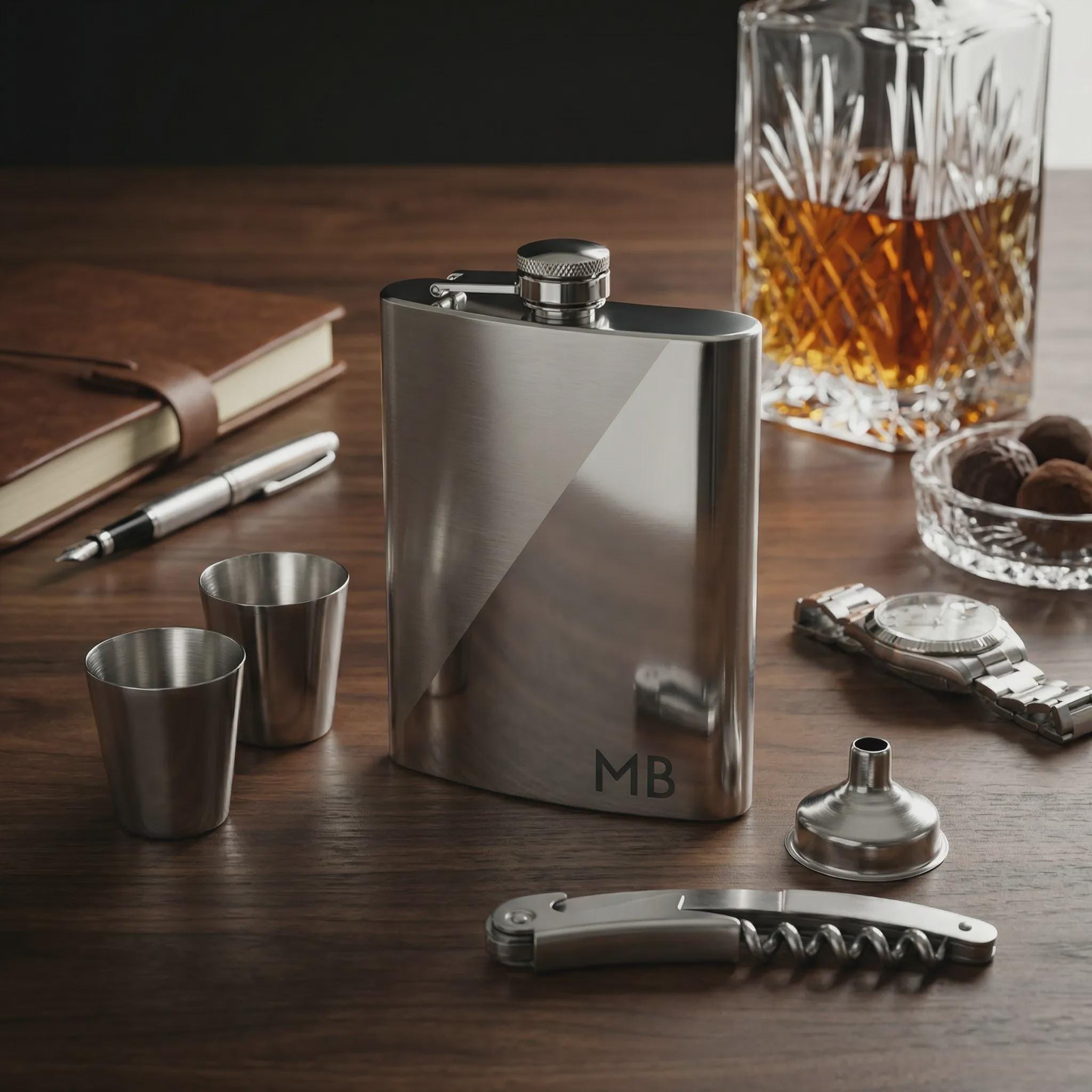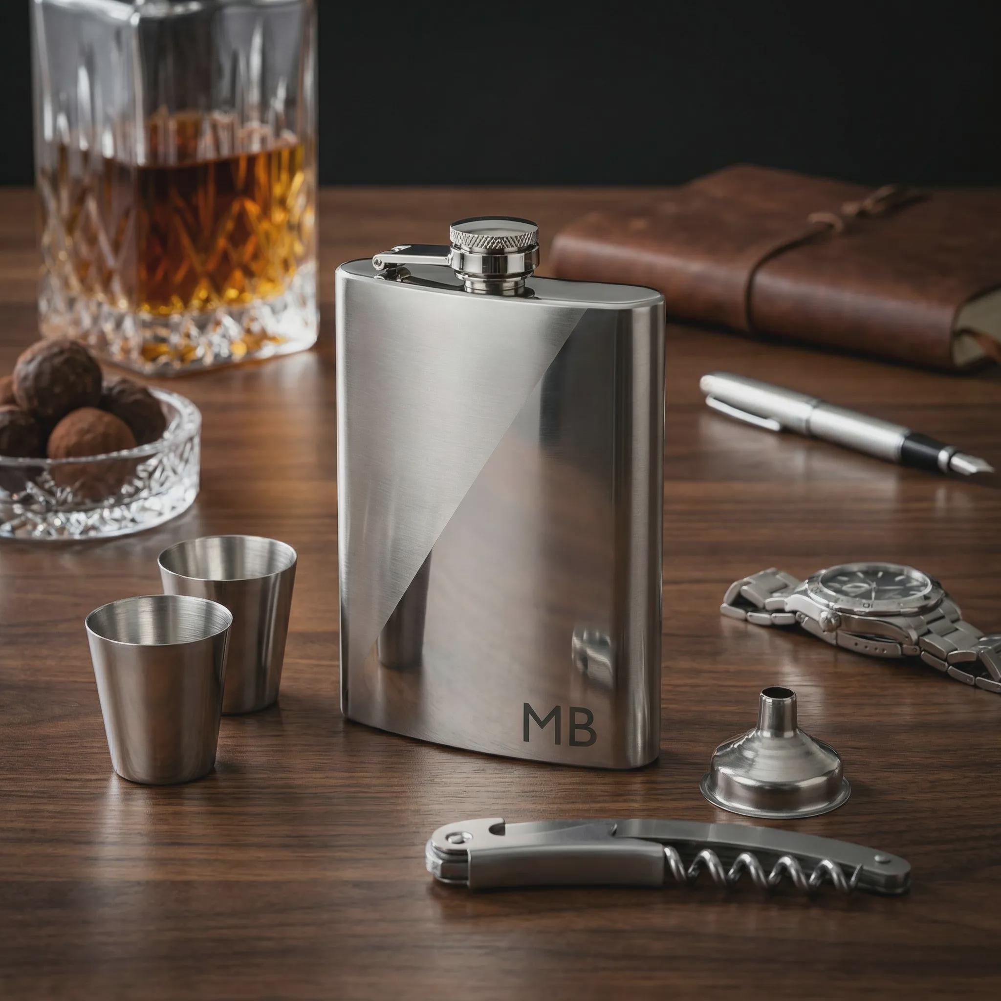 1x 8Oz. Hip Flask: Features a secure screw-top lid and a unique two-tone aesthetic.
