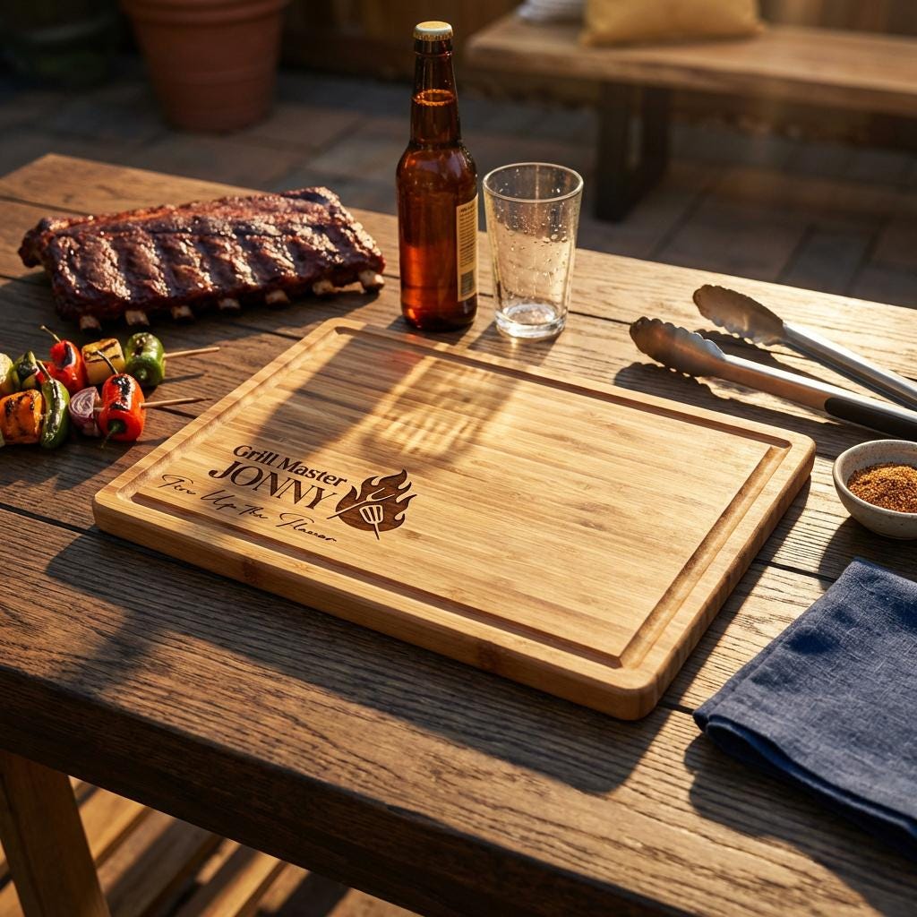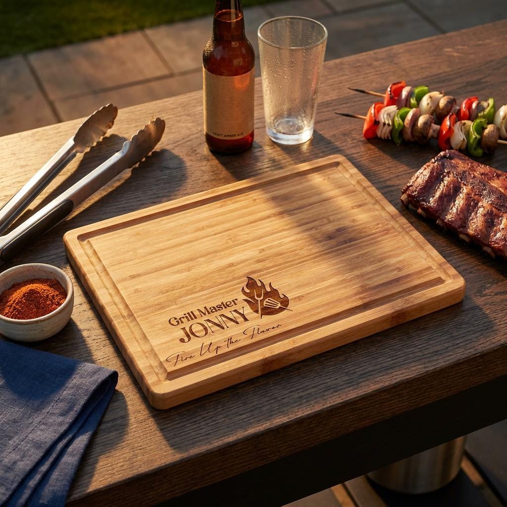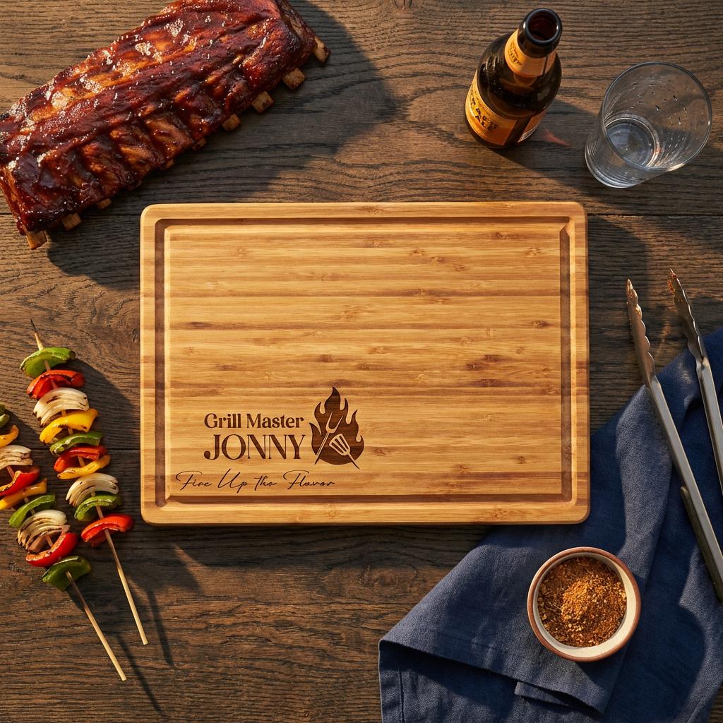 Personalized Grill Master Cutting Board, Custom Engraved Bamboo Butcher Block for Men