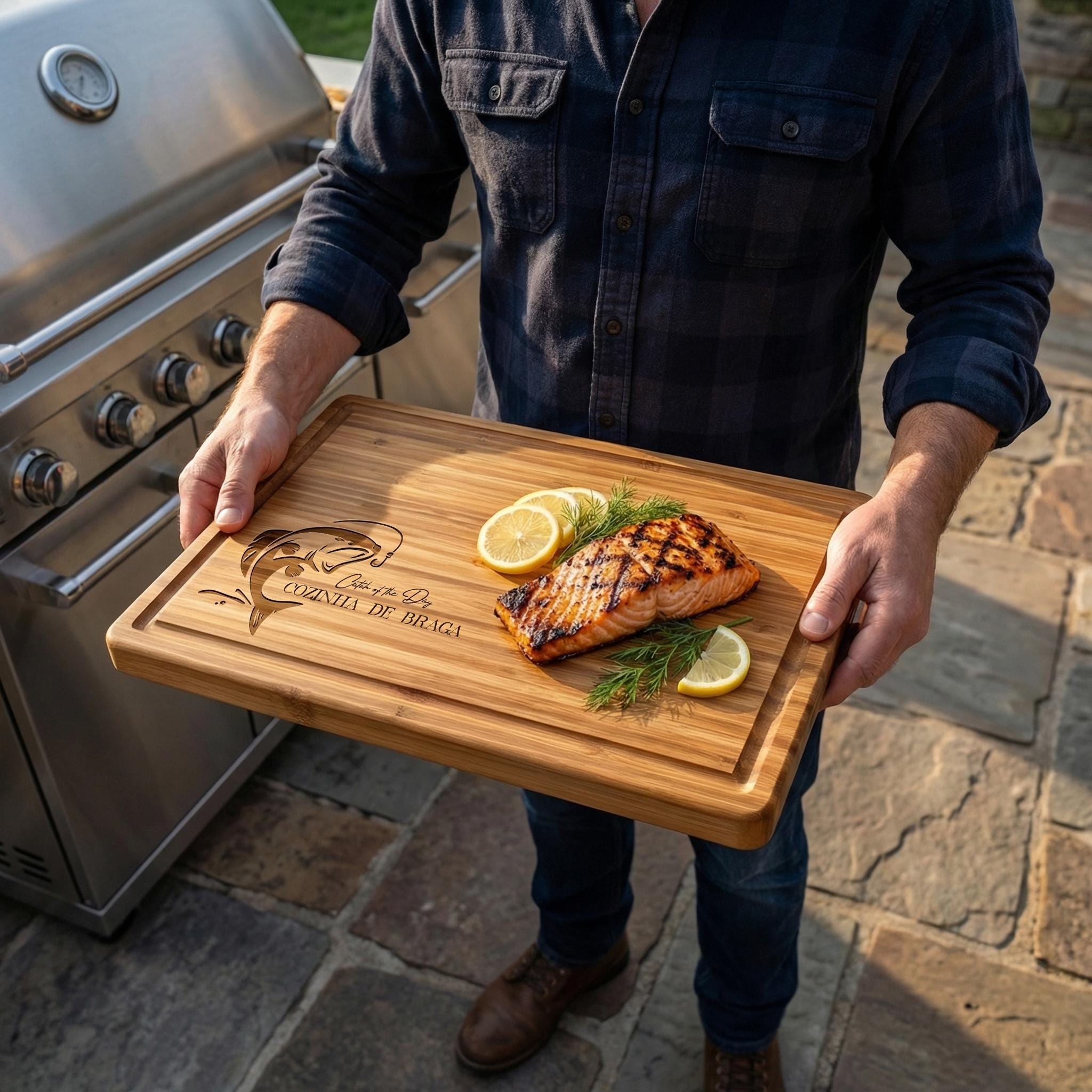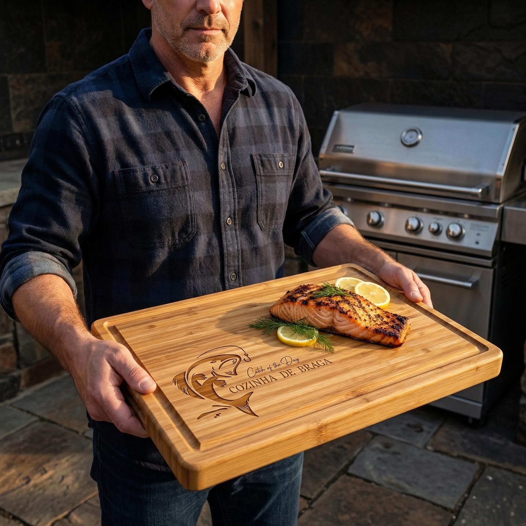 Personalized Fishing Butcher Block, 1 Inch Thick Custom Engraved Bamboo Cutting Board, Father's Day Gift