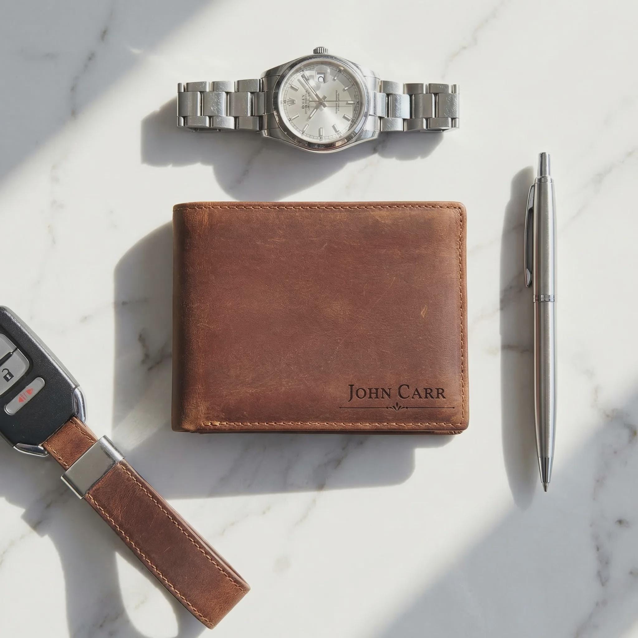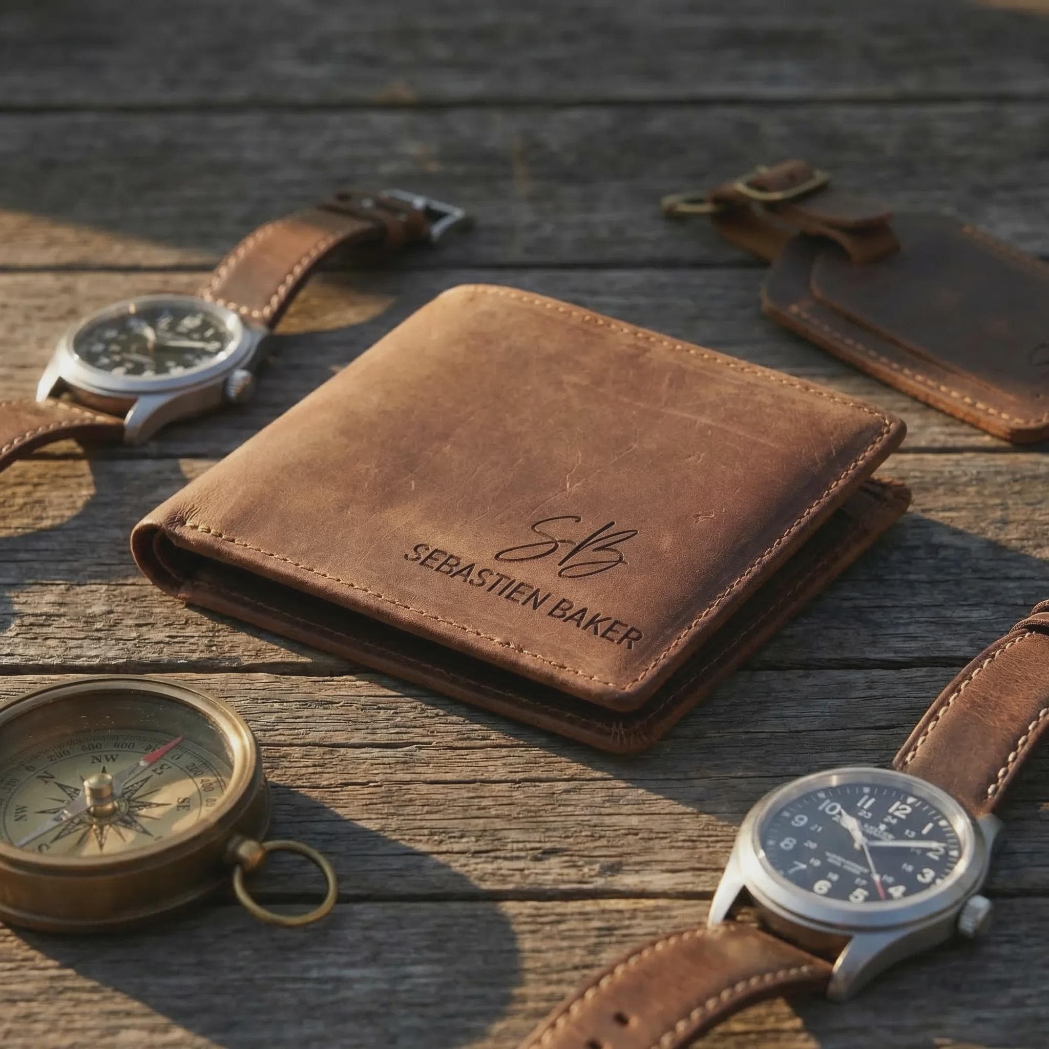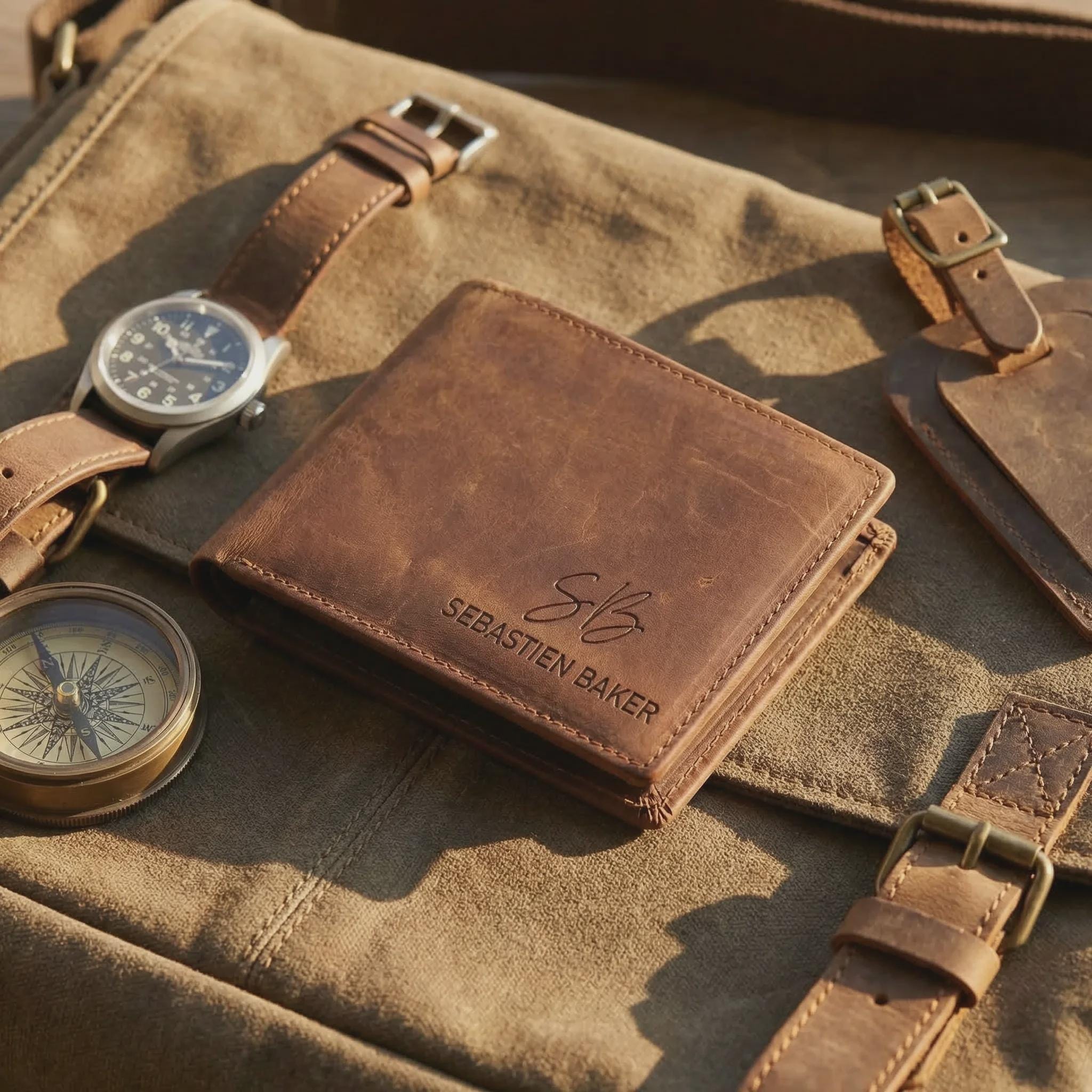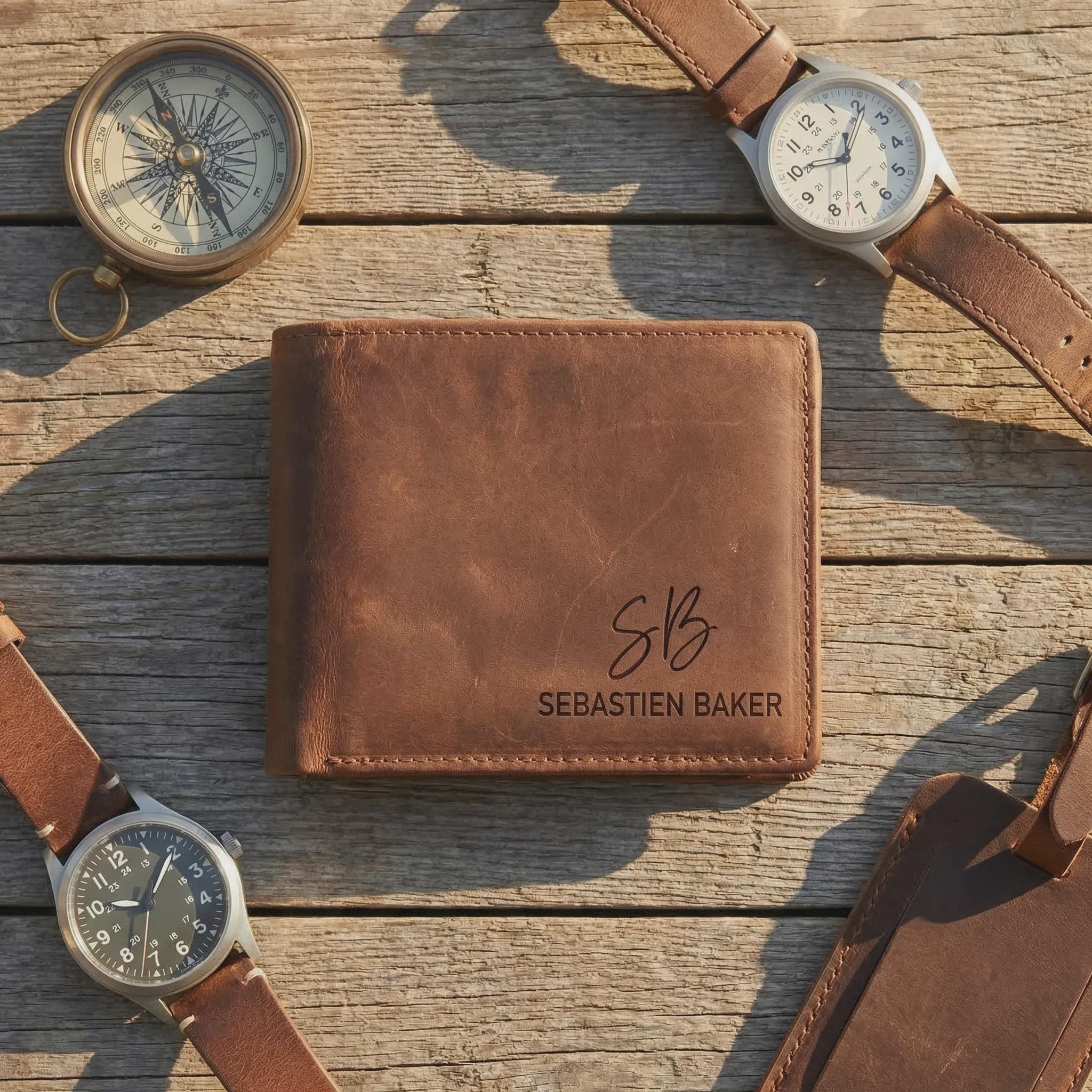 Elevate his daily carry with this personalized Crazy Horse leather bifold wallet. Sourced for its rugged durability and vintage aesthetic, this full-grain cowhide is treated with a specialized wax that creates a unique "distressed" finish. Precision laser engraved with your choice of 16 designs, it serves as a professional-grade accessory that only gets better with age.