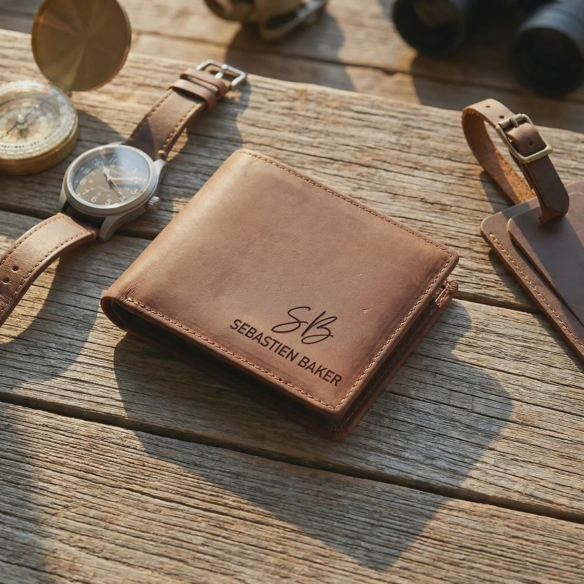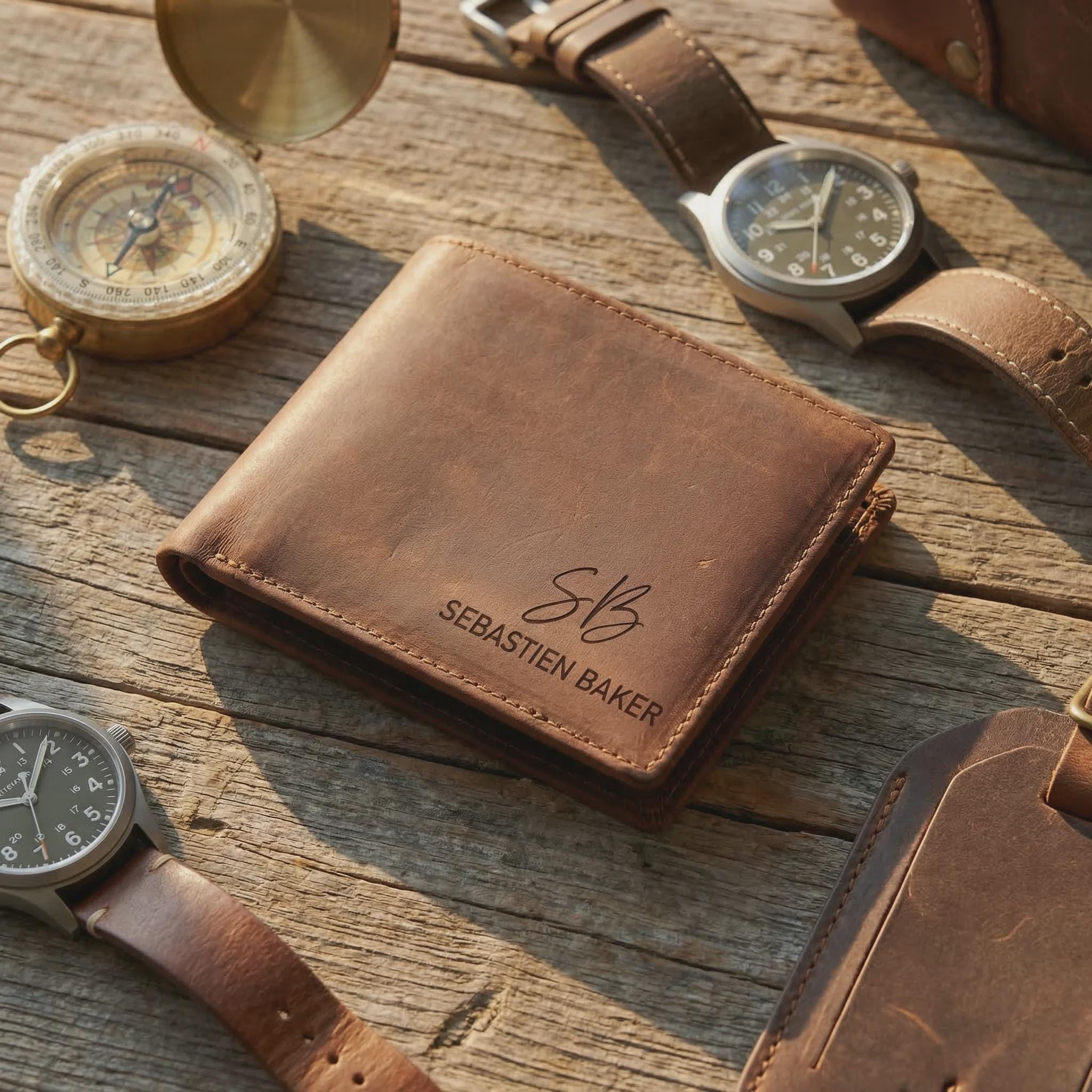 Personalized Genuine Leather Wallet for Men, Custom Engraved Bifold, Father's Day Gift