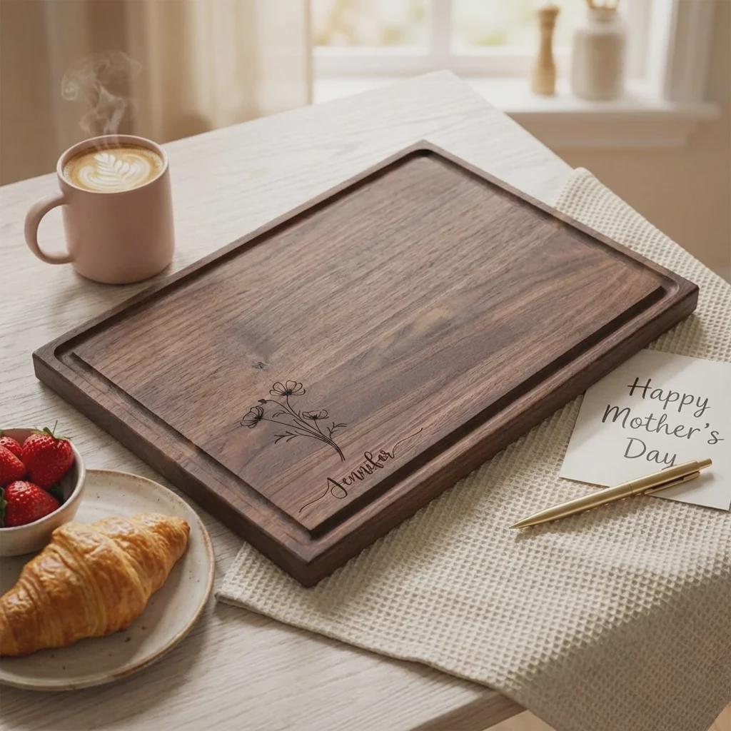 Personalized Walnut Cutting Board for Mom, Custom Engraved Floral Charcuterie Tray, Mother's Day Gift