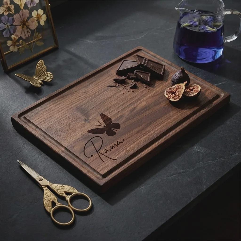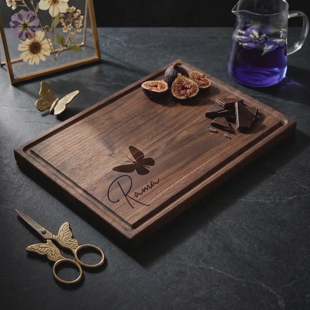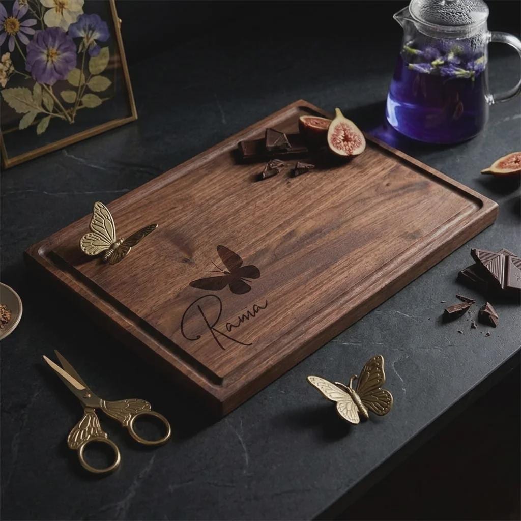 Personalized Butterfly Walnut Cutting Board, Custom Engraved Wood Charcuterie Tray for Her