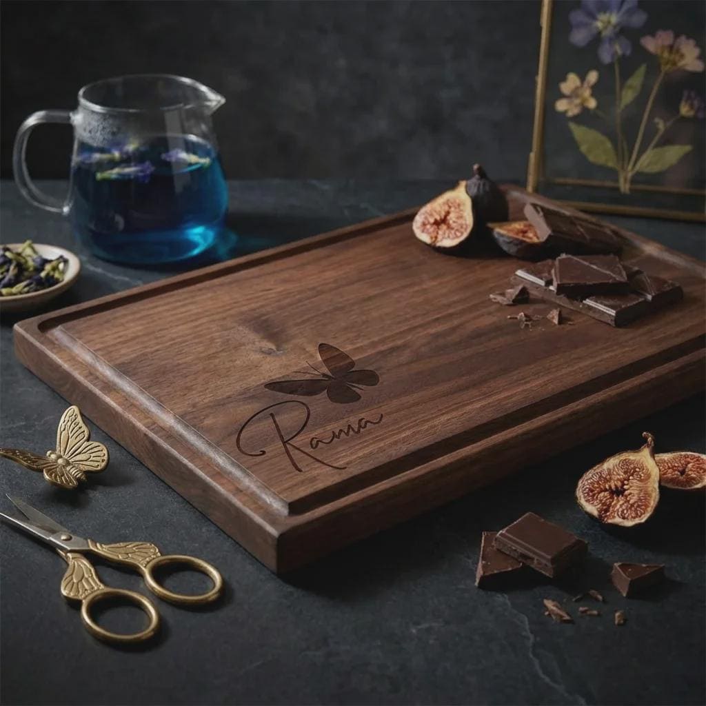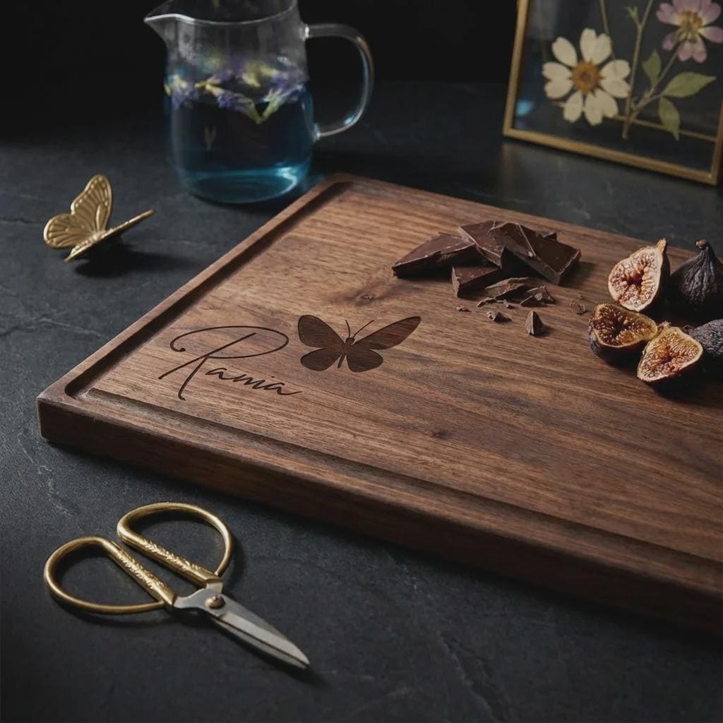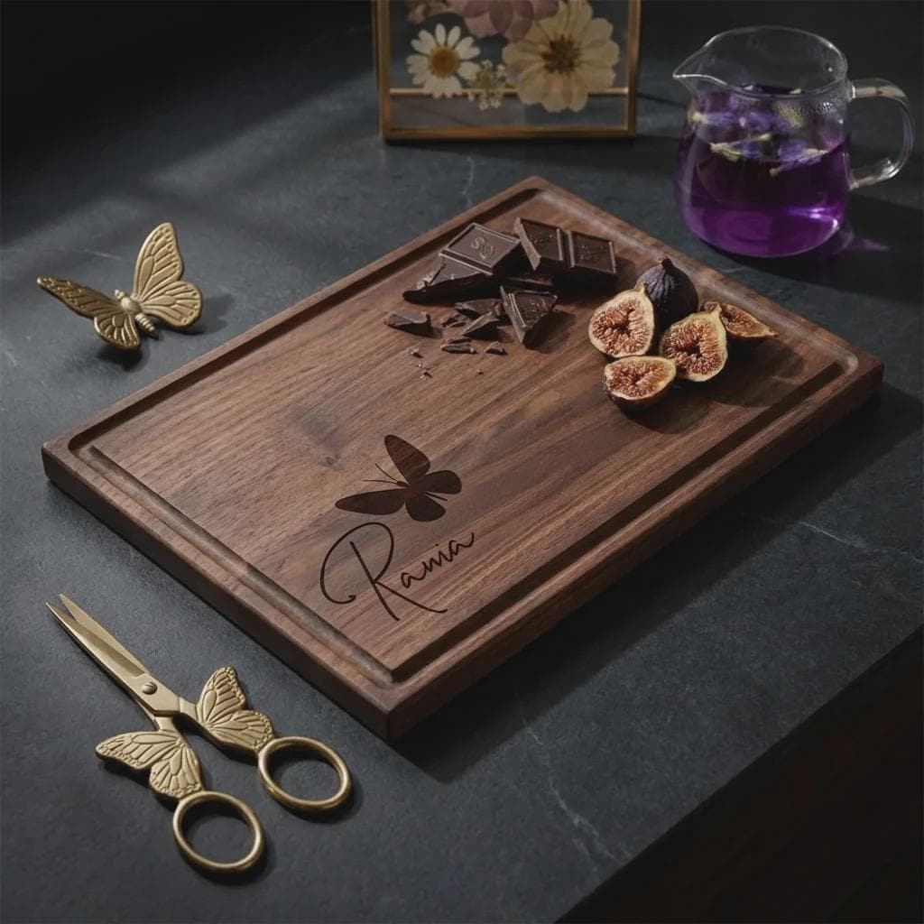Personalized Butterfly Walnut Cutting Board, Custom Engraved Wood Charcuterie Tray for Her