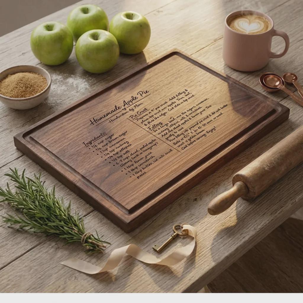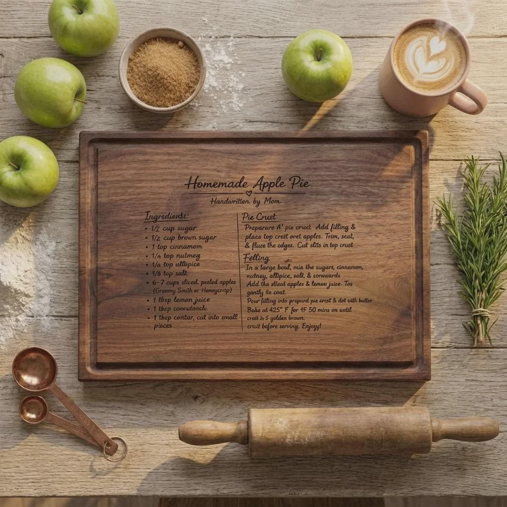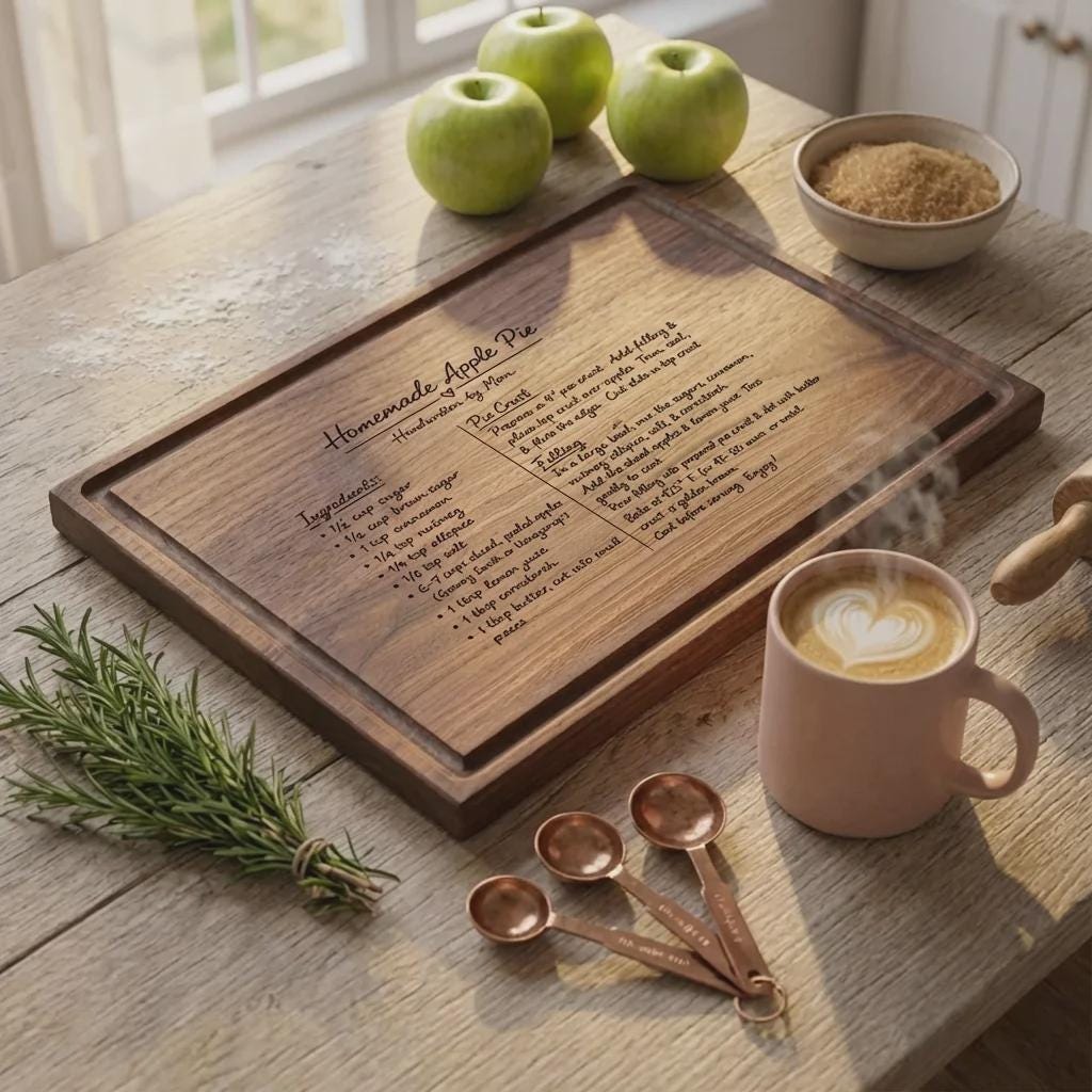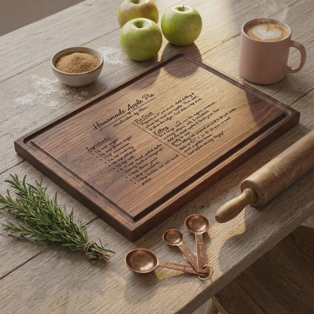 Preserve a family legacy with this personalized handwritten recipe cutting board. Handcrafted from solid wood, we laser engrave your actual recipe photo for Mom.