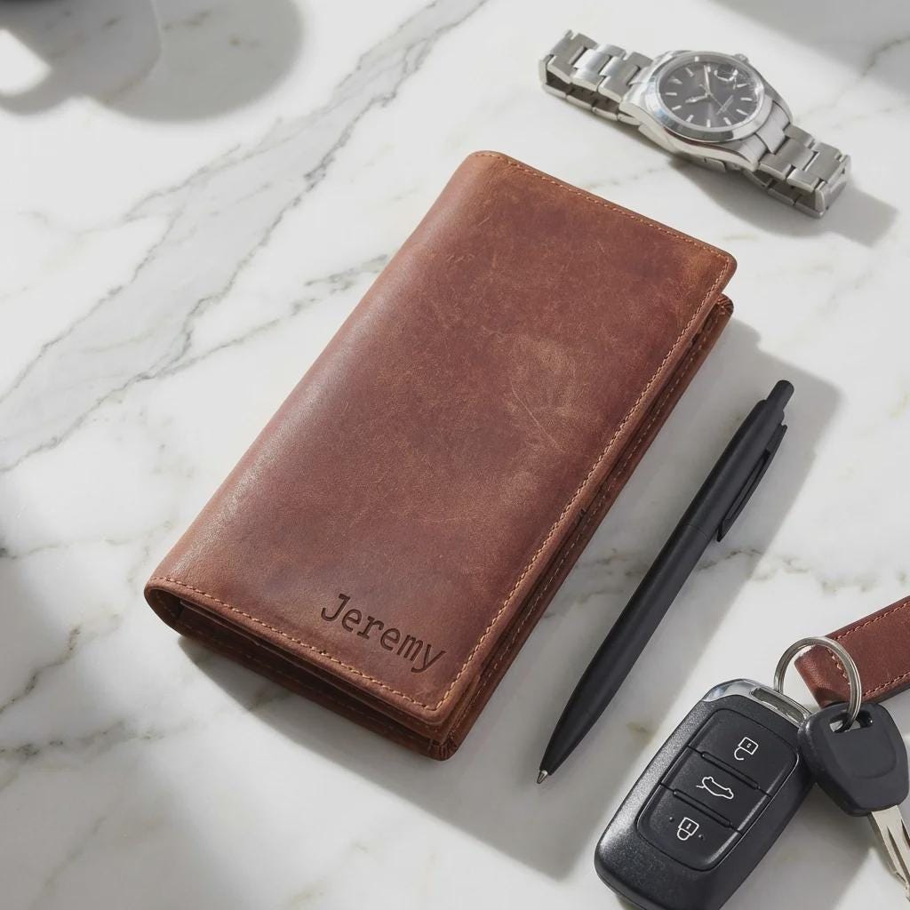 Personalized Crazy Horse Leather Long Wallet, Custom Engraved Monogrammed Gift for Him