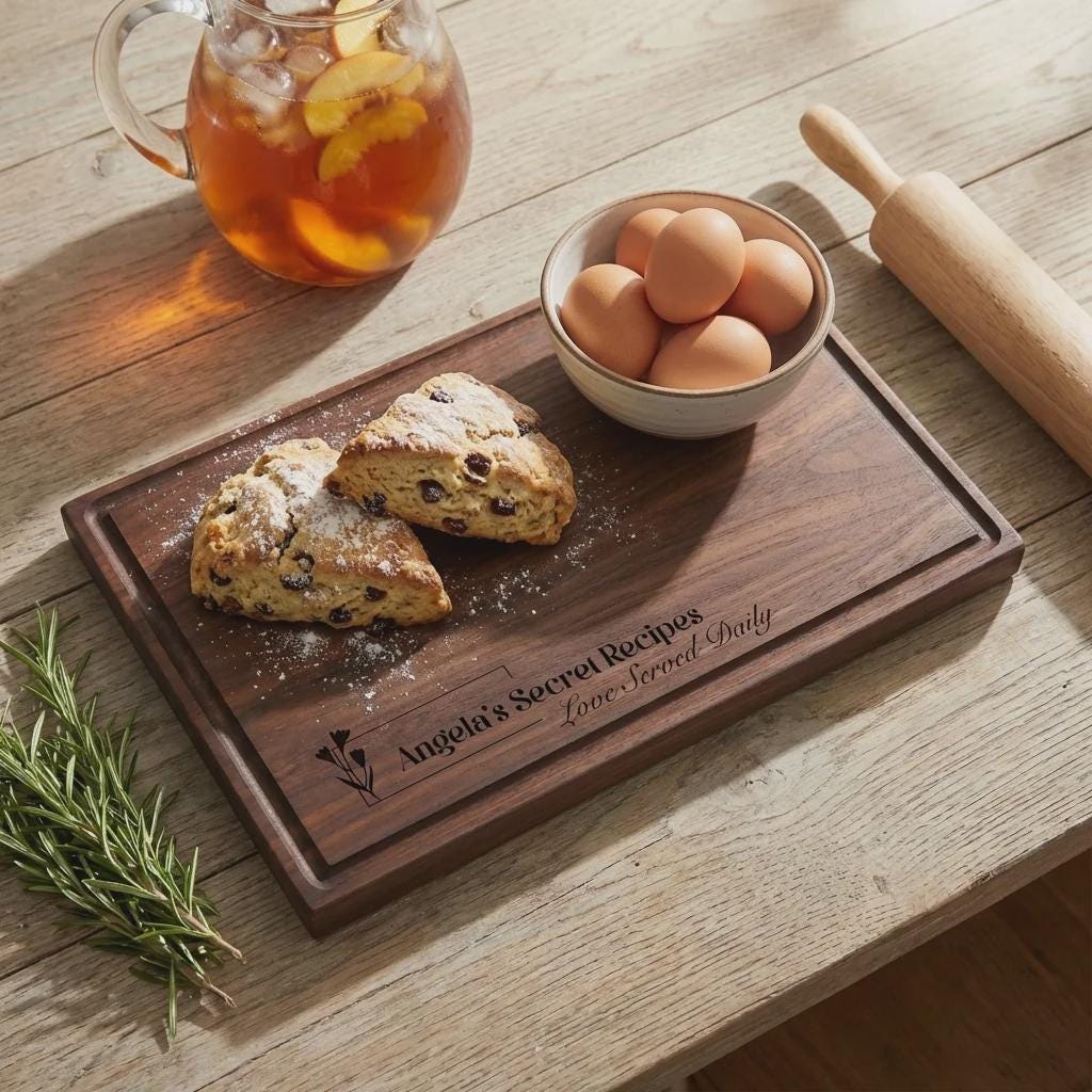 Elevate her kitchen with this personalized "Secret Recipes" walnut cutting board. Hand-crafted from premium solid North American walnut, each board is precision laser engraved with a delicate wildflower motif, a custom name, and the "Love Served Daily" sentiment. Featuring a sleek profile and a functional juice groove, it serves as a professional-grade food prep surface and a sophisticated centerpiece for Mother's Day brunch or charcuterie display.
