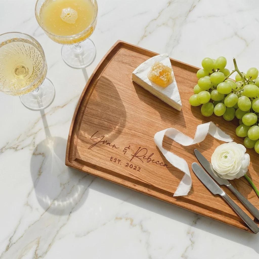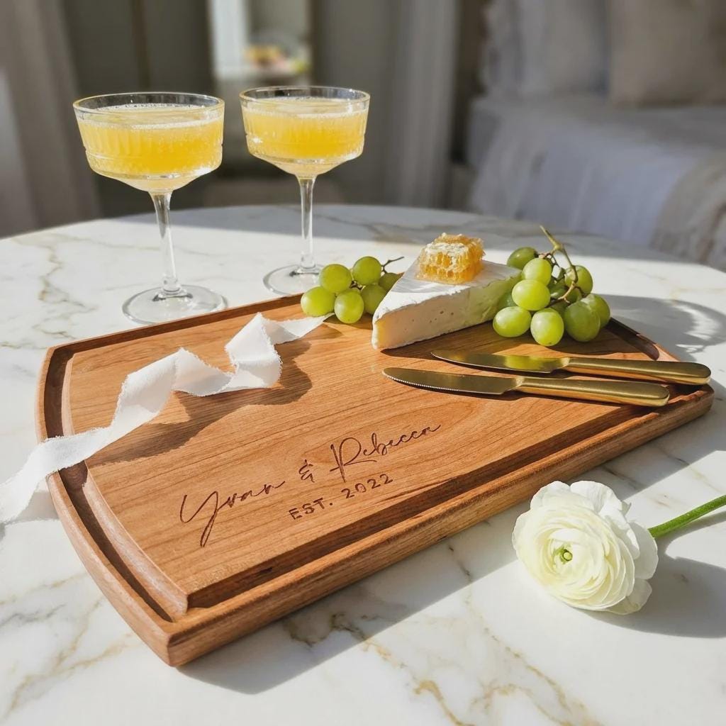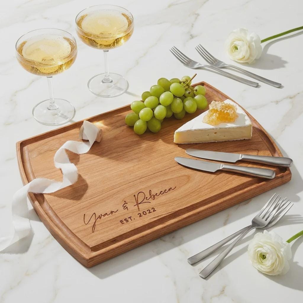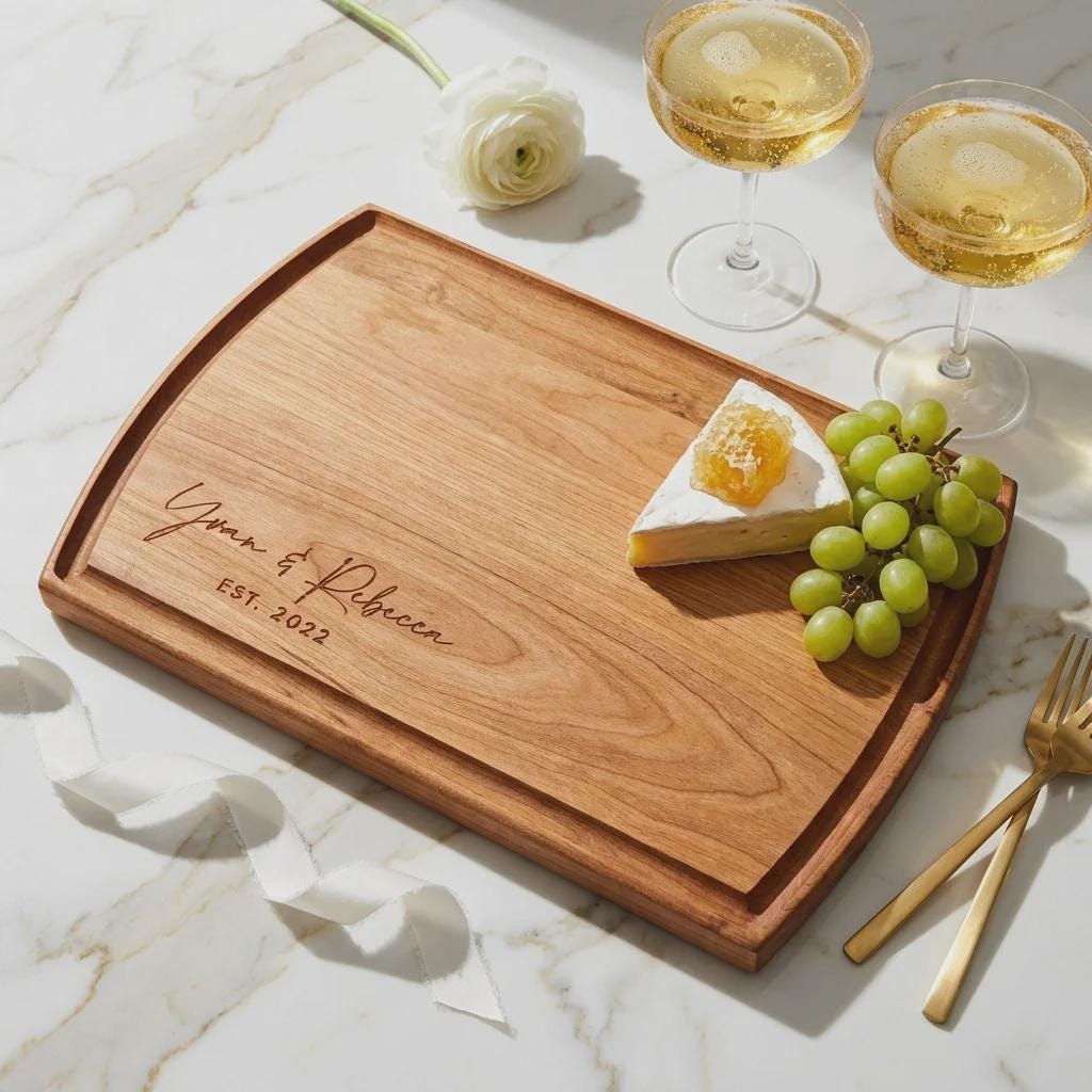 Celebrate love and milestones with our Custom Couples Cutting Board—an ideal personalized gift for weddings, housewarmings, Christmas, anniversaries, realtor gifts, and Valentine's Day. Handcrafted from premium Walnut, Cherry, or Acacia wood, this board turns everyday meal prep into a cherished ritual.