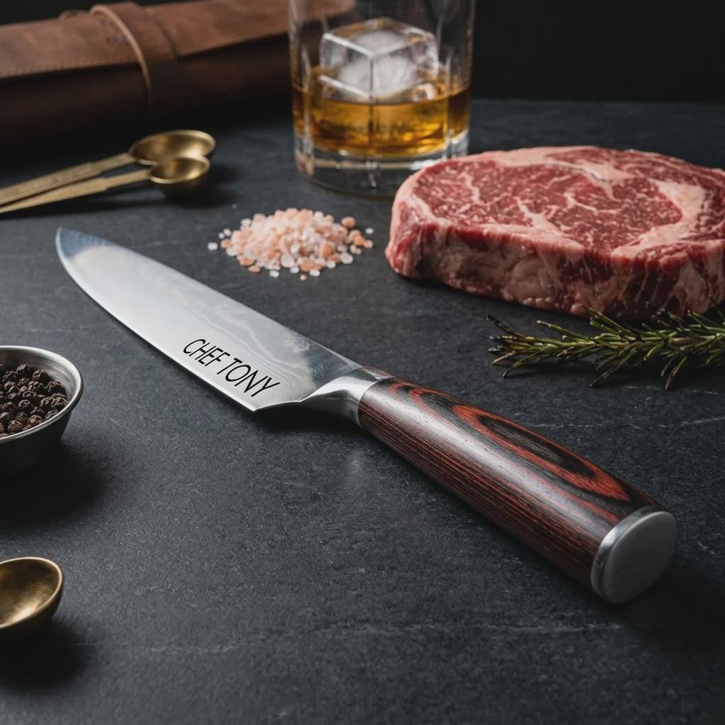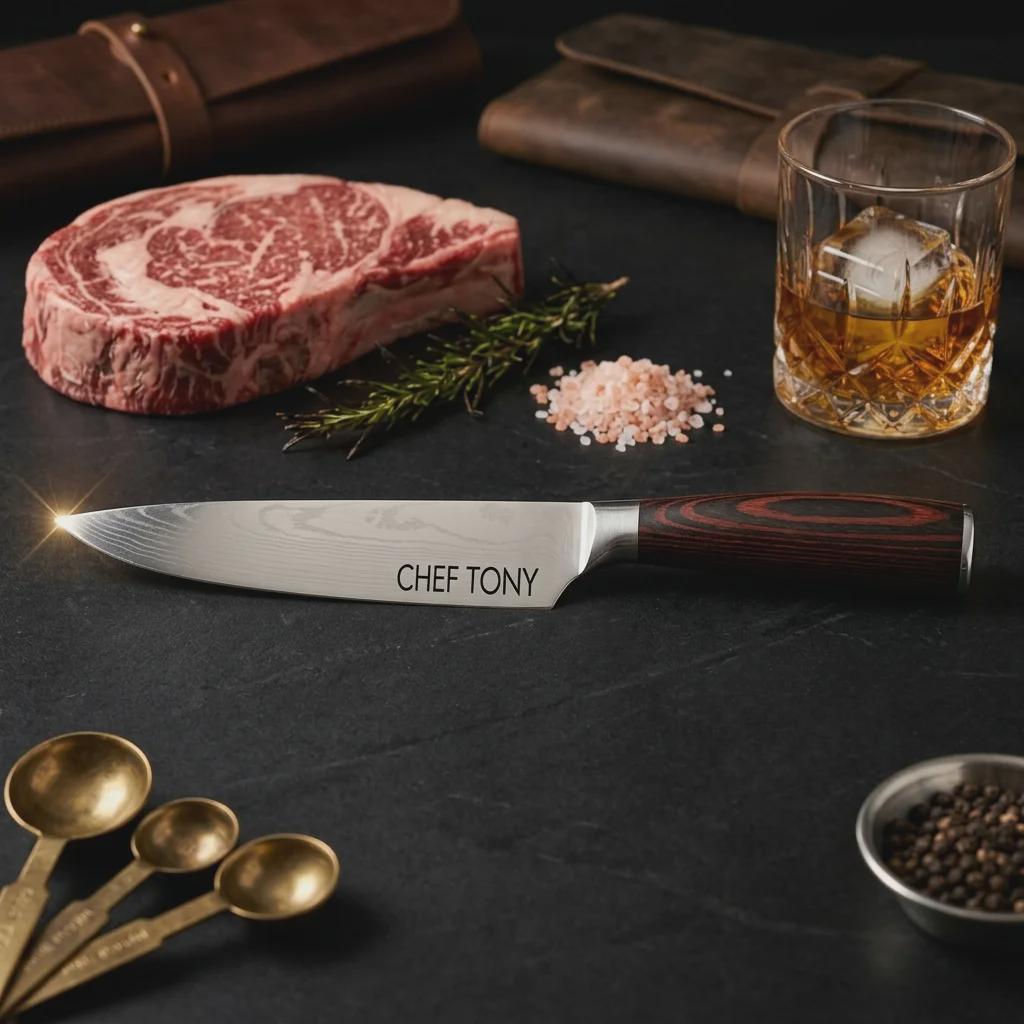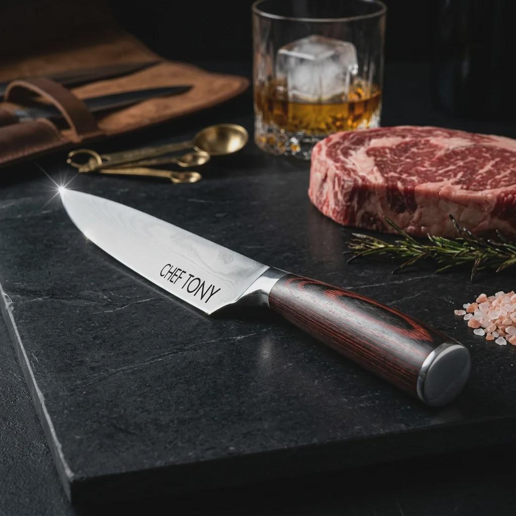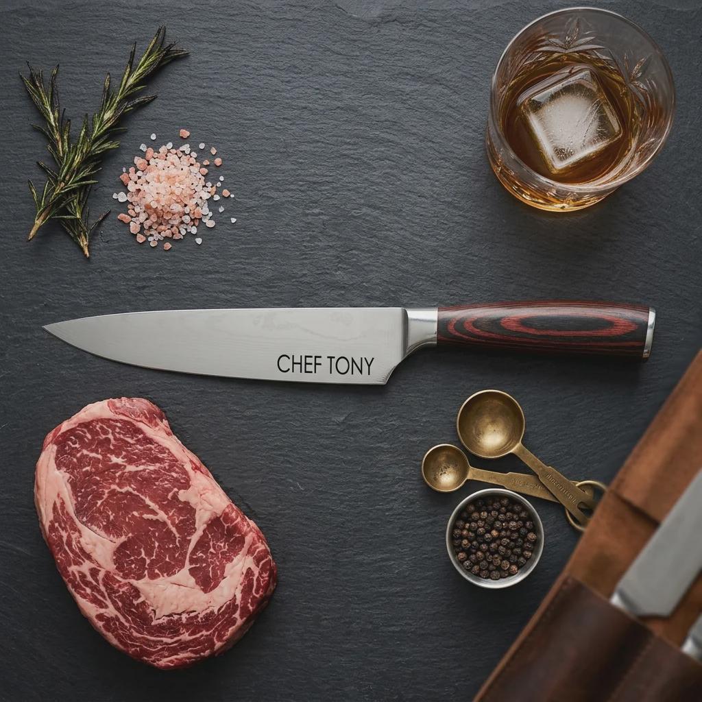 Personalized 8 Inch Chef Knife, Custom Engraved Stainless Steel Kitchen Knife, Father's Day Gift