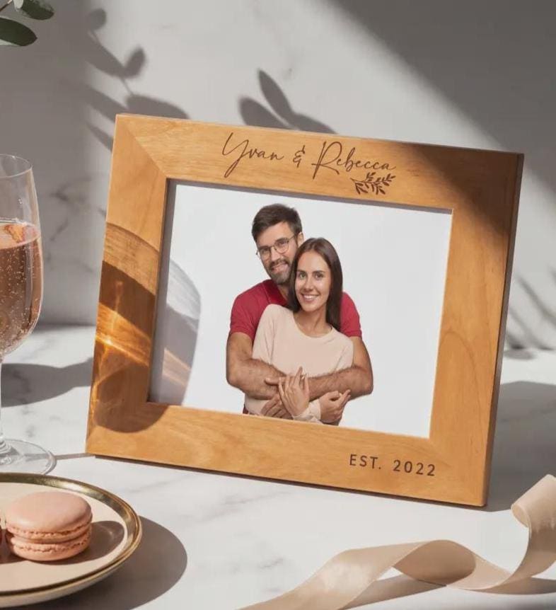 Personalized Wood Picture Frame, Custom Engraved Couple Photo Frame, Wedding Gift