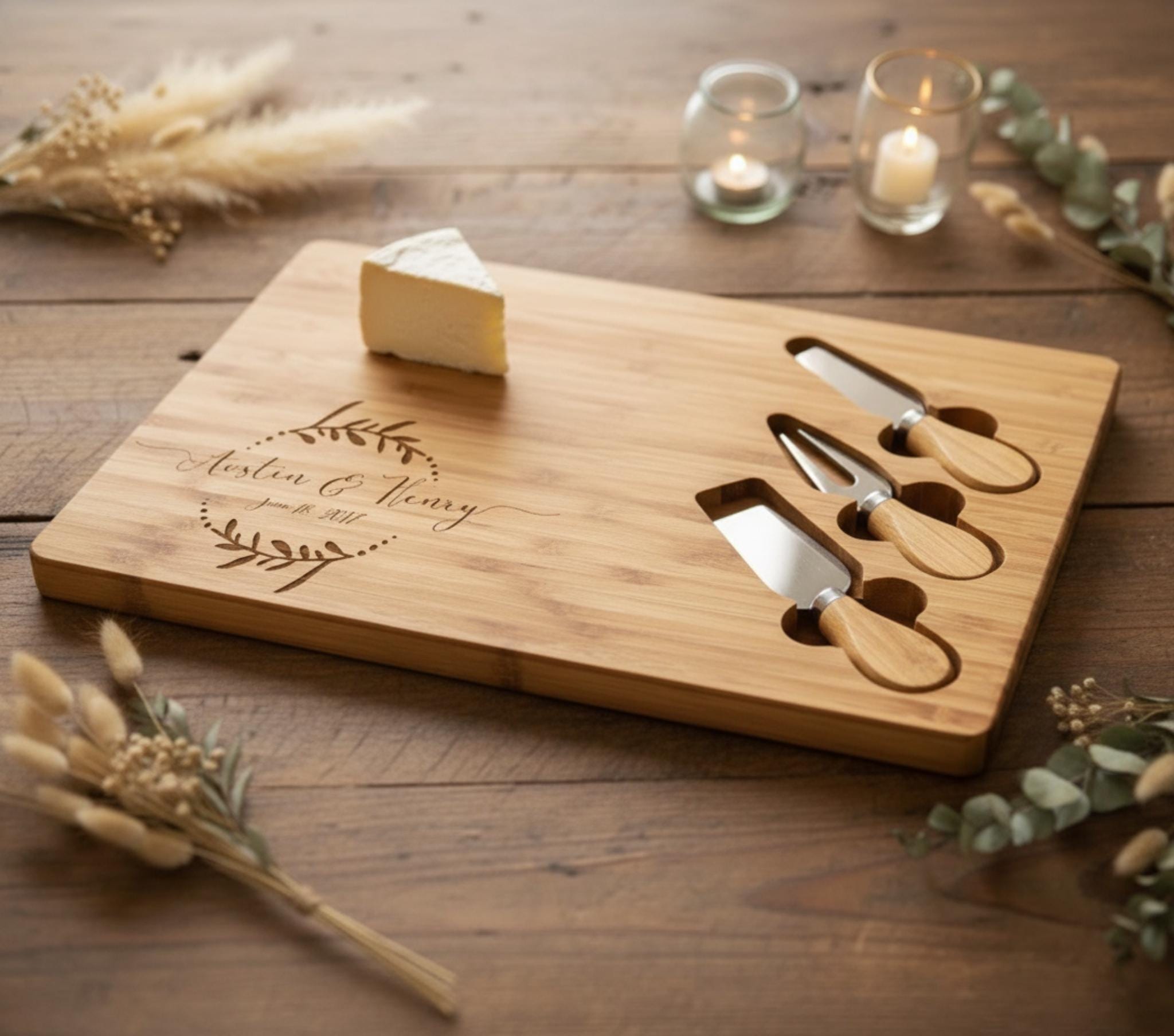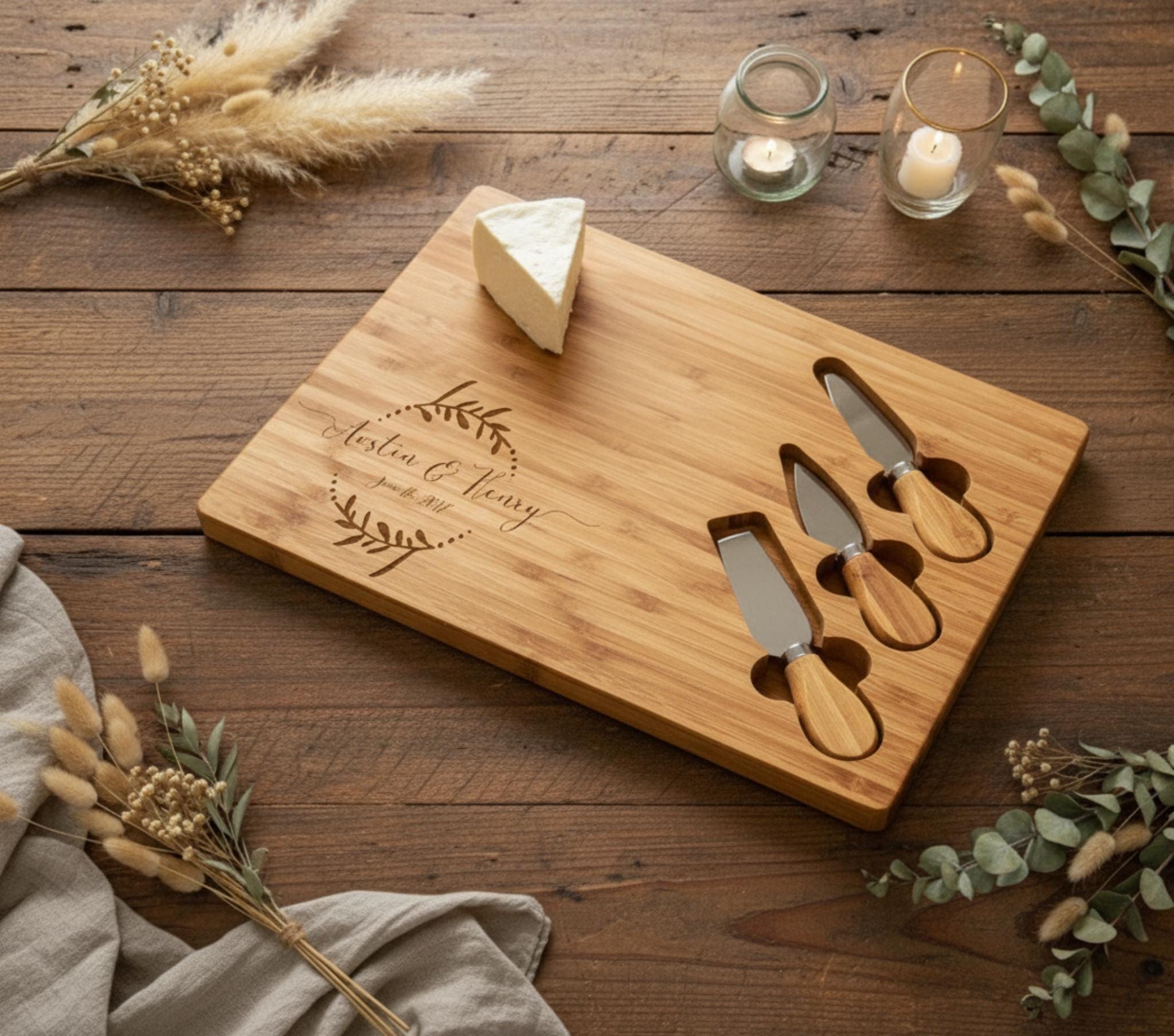 Personalized cheese board set, Custom cheese board set, Engraved cutting board, Wedding gifts, Gifts for the couple, Christmas gifts