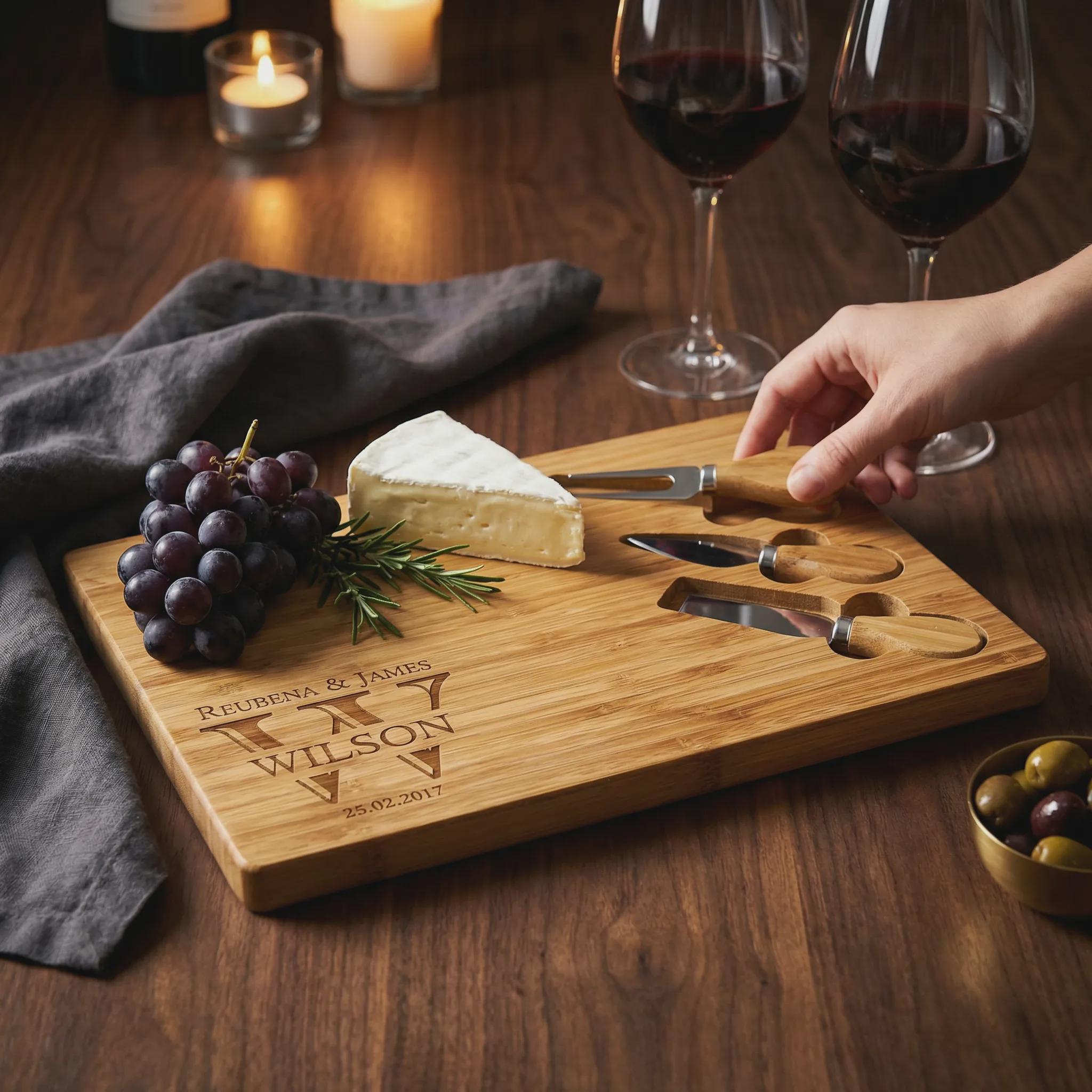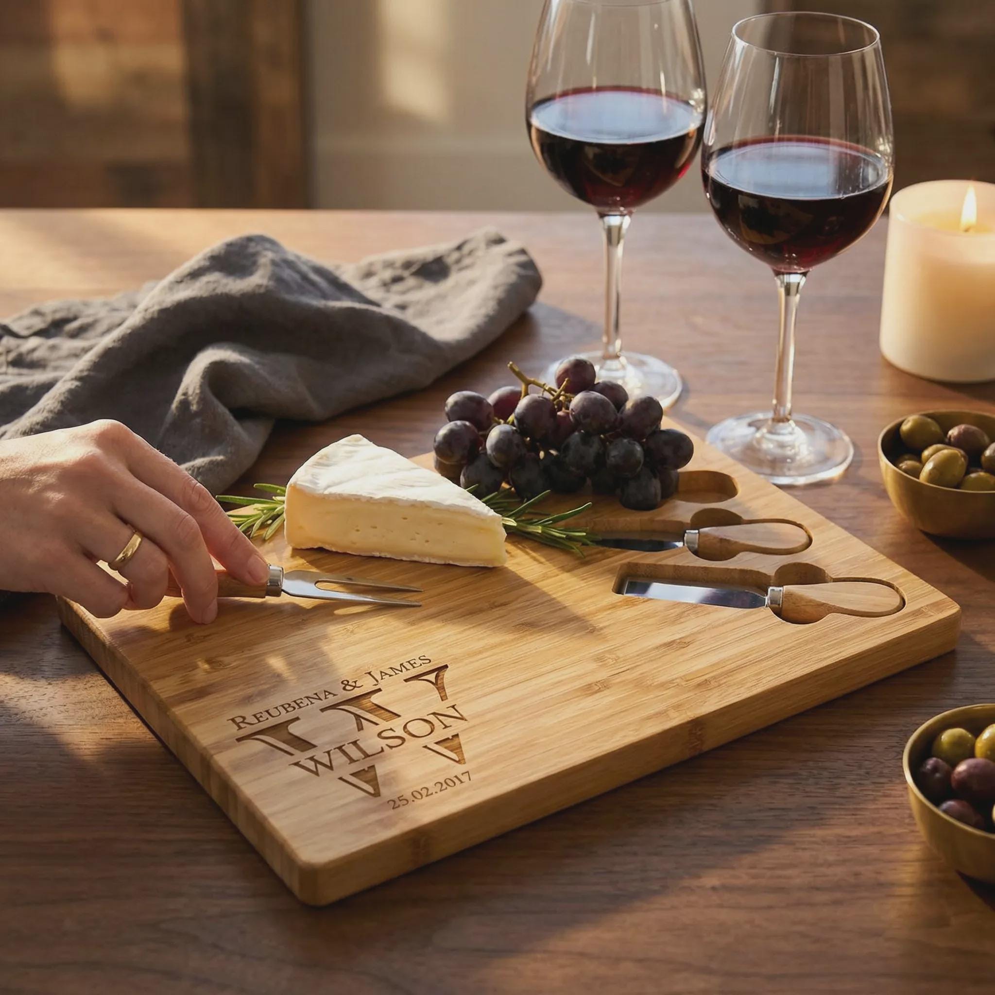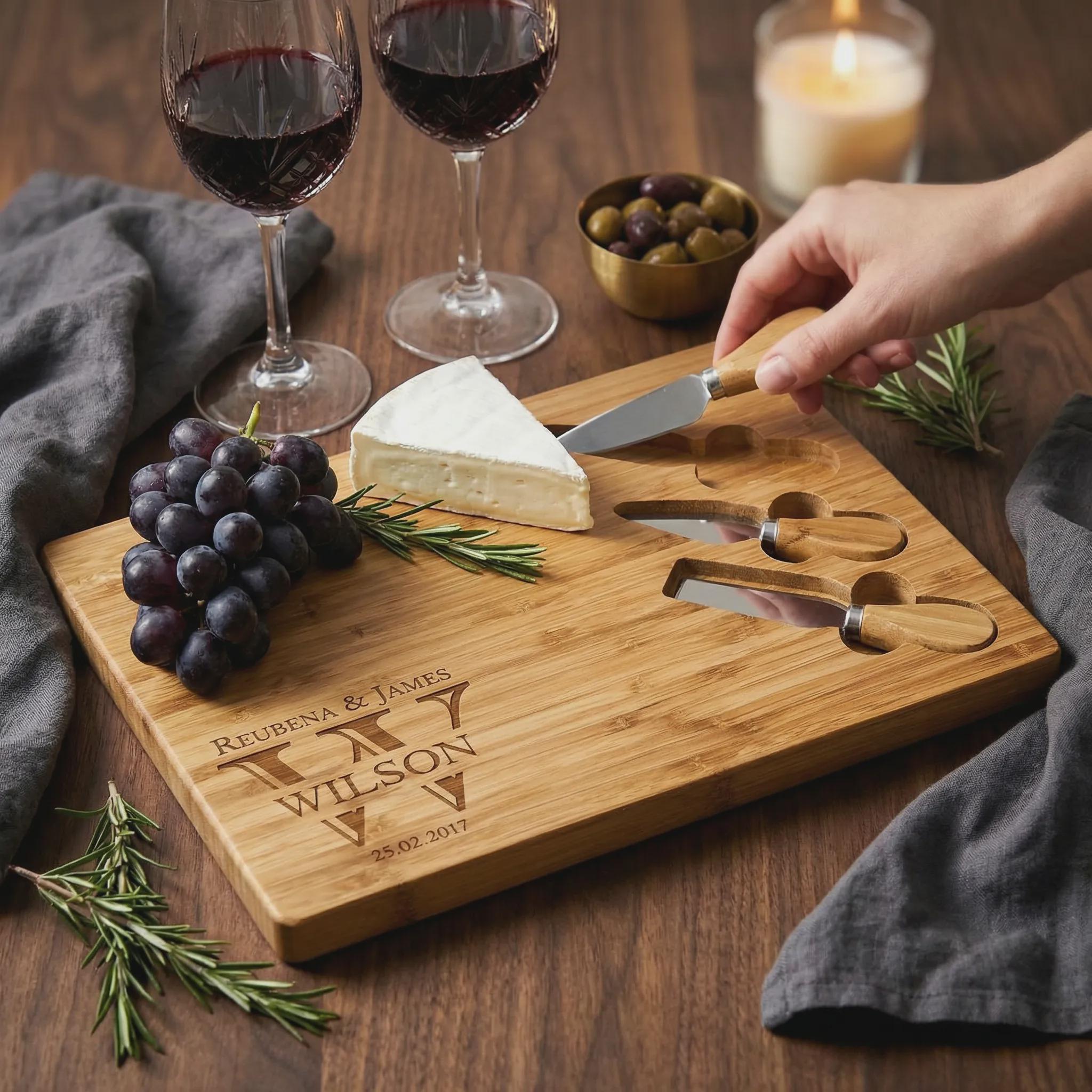 Overall, this personalized bamboo cheese board set can be a thoughtful and practical gift for cheese lovers or anyone who enjoys hosting gatherings and entertaining guests.