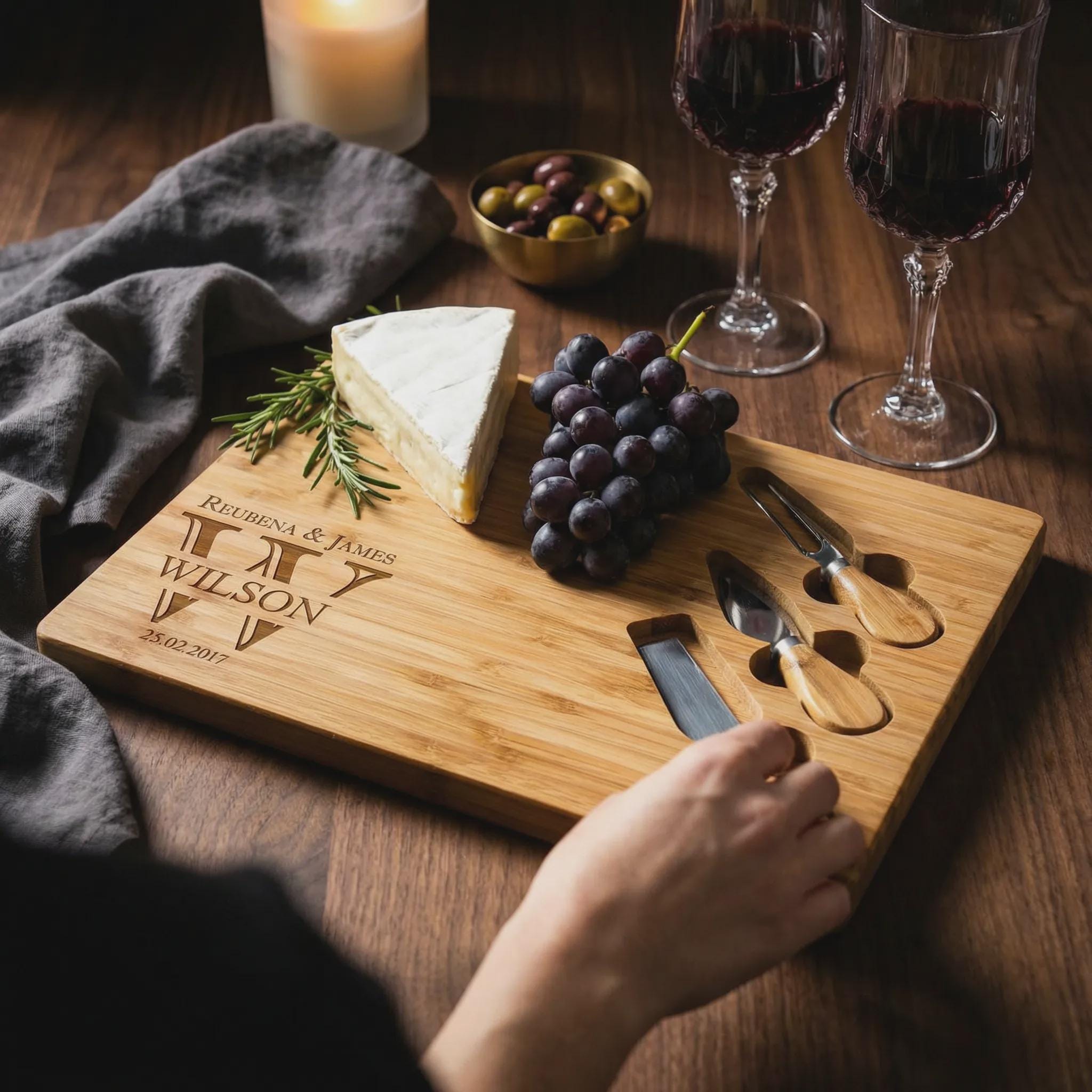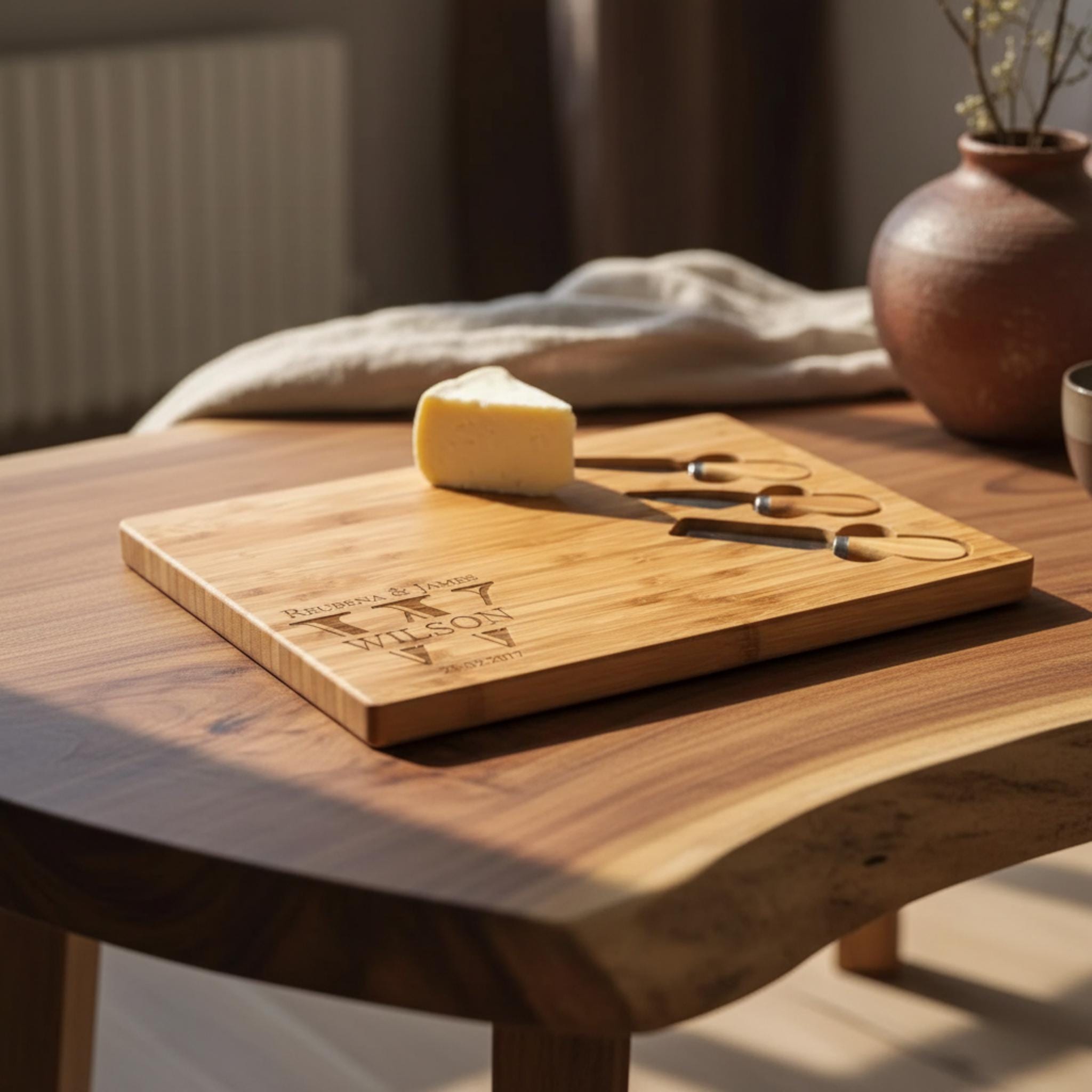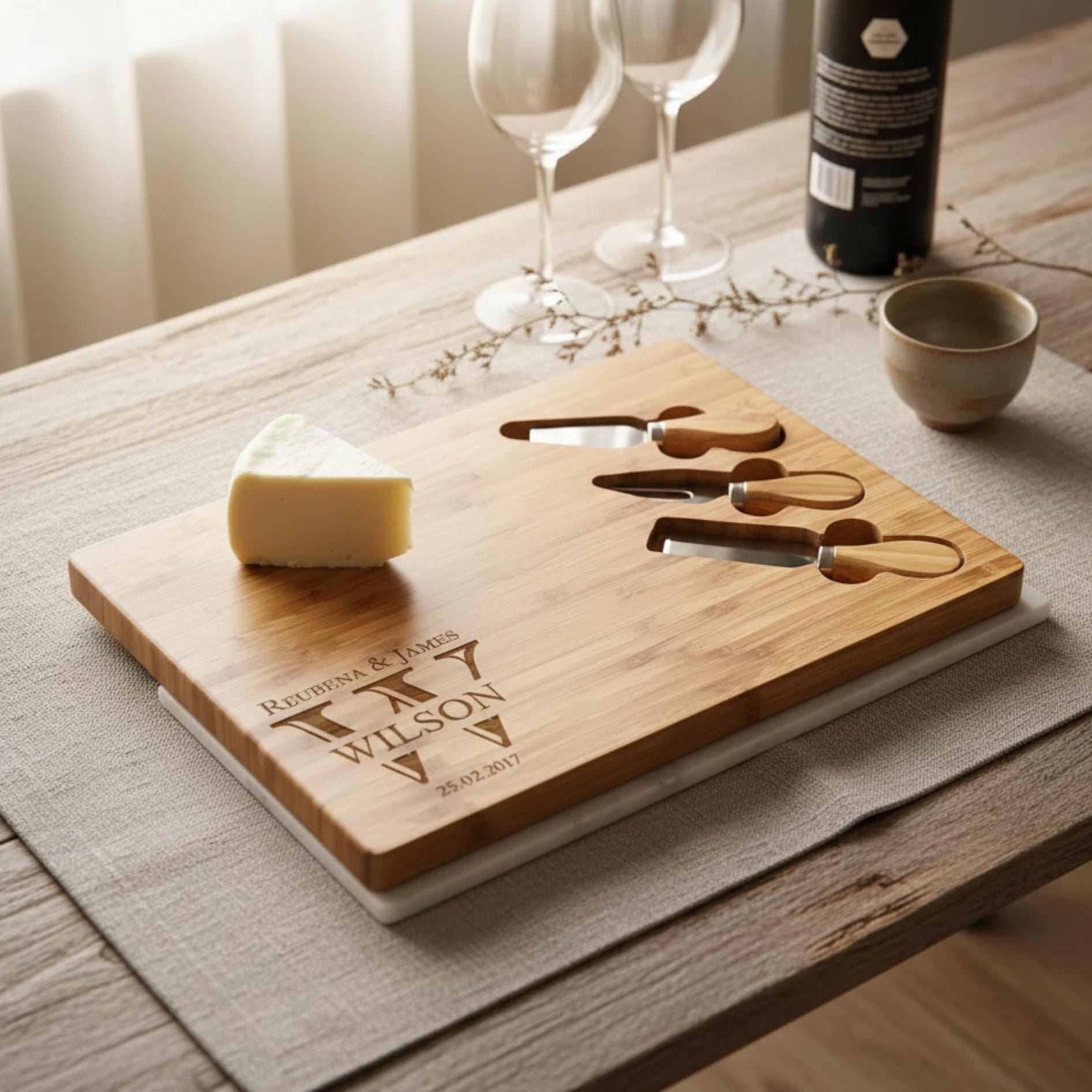 Overall, this personalized bamboo cheese board set can be a thoughtful and practical gift for cheese lovers or anyone who enjoys hosting gatherings and entertaining guests.