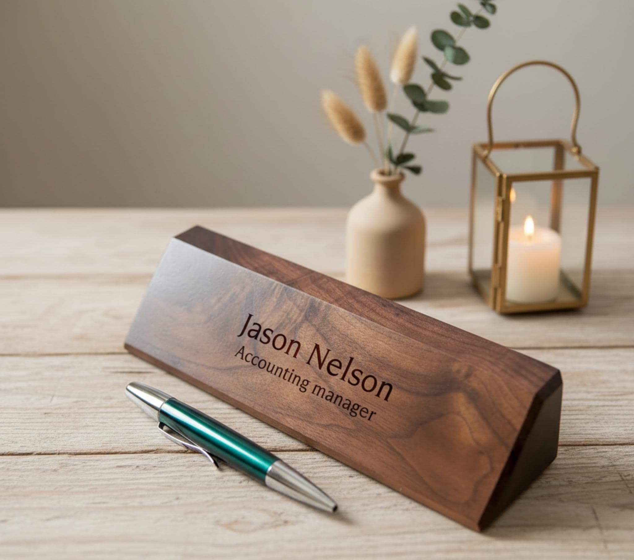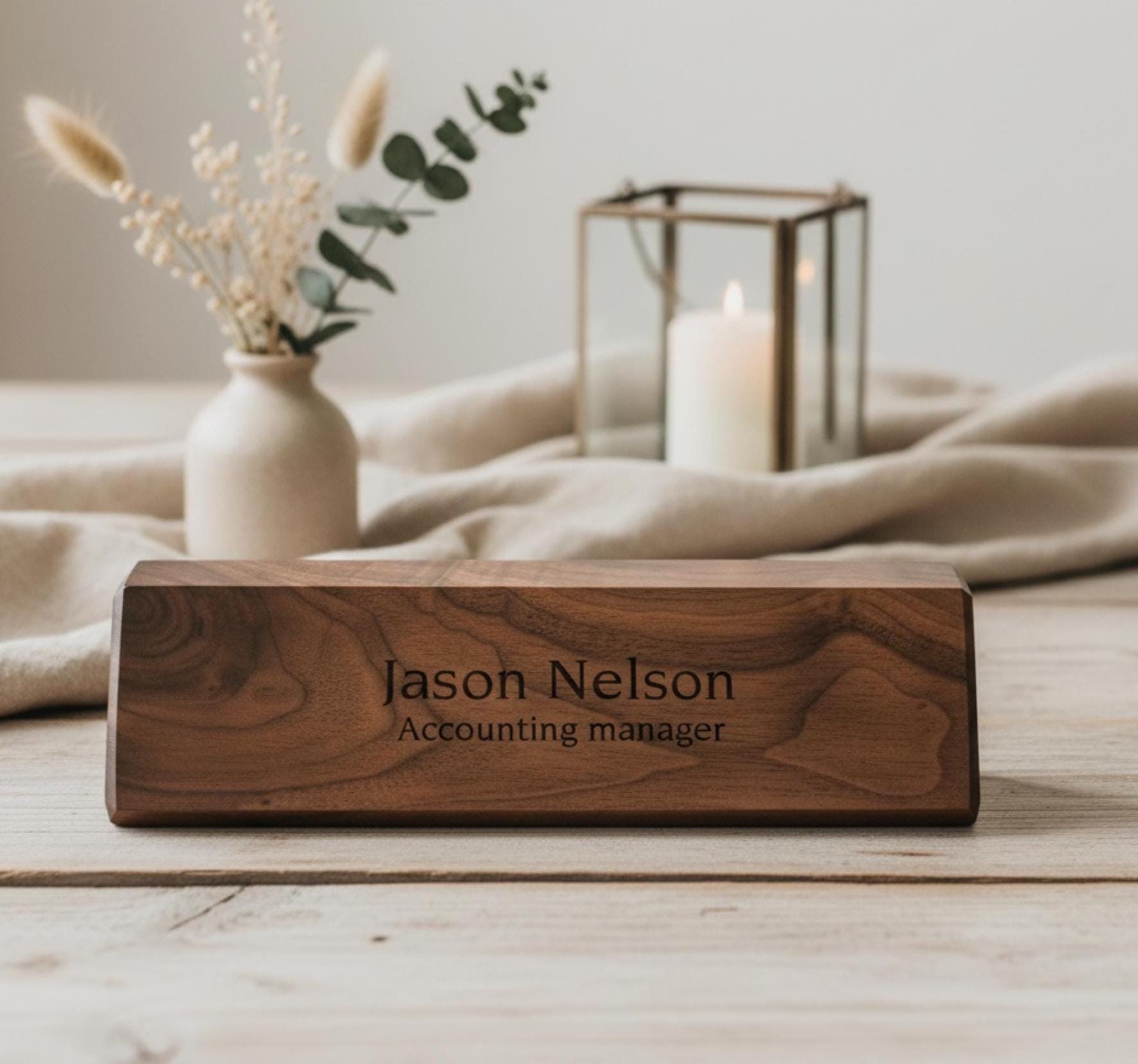 Bring elegance and individuality to your workspace. With our Walnut Desk Name Plates, you’re not just adding a name to your desk; you’re making a statement.