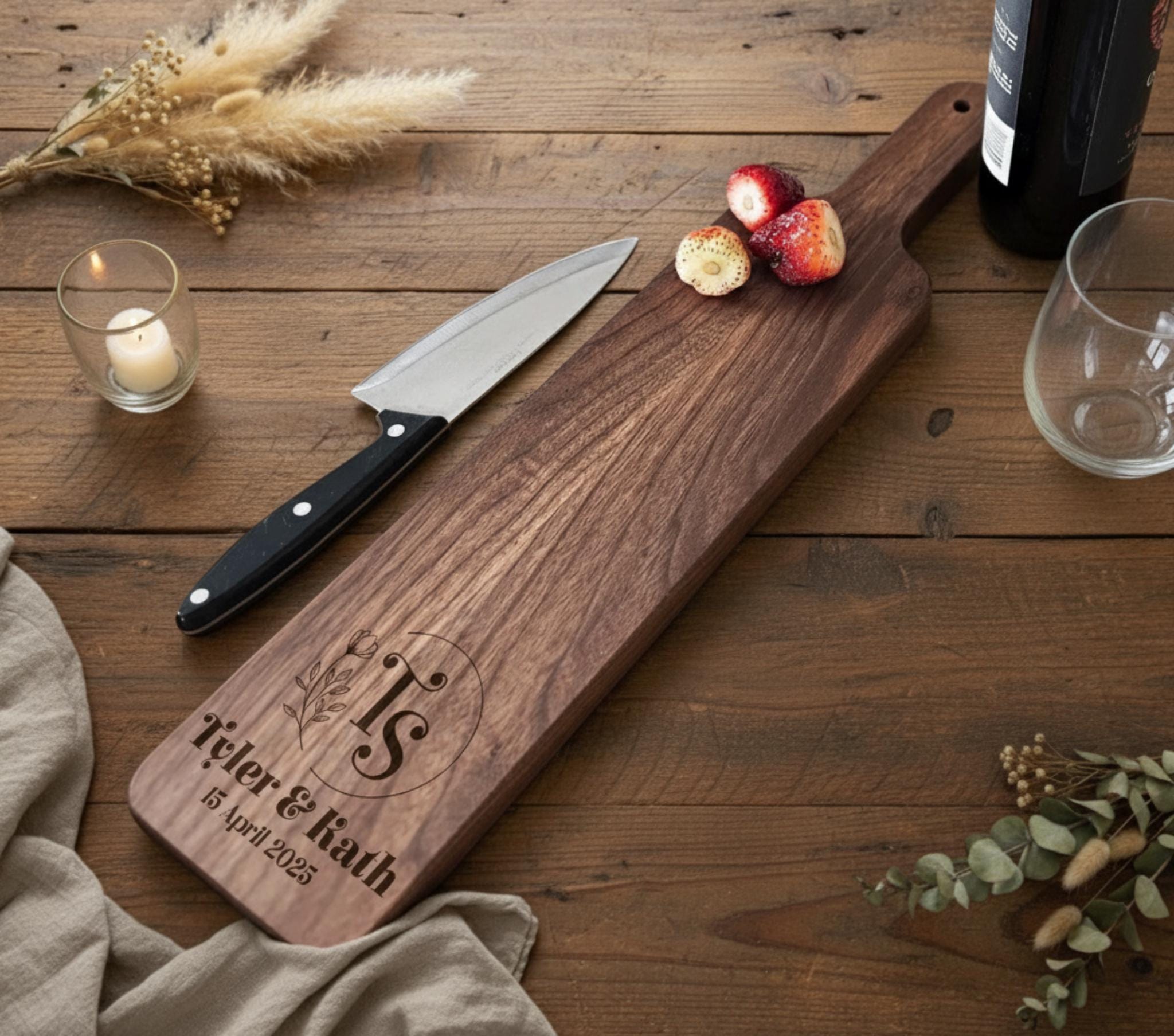 Finished with a high-quality, food-safe coating that protects your board while enhancing its natural beauty, making it ideal for daily use and special gatherings.
