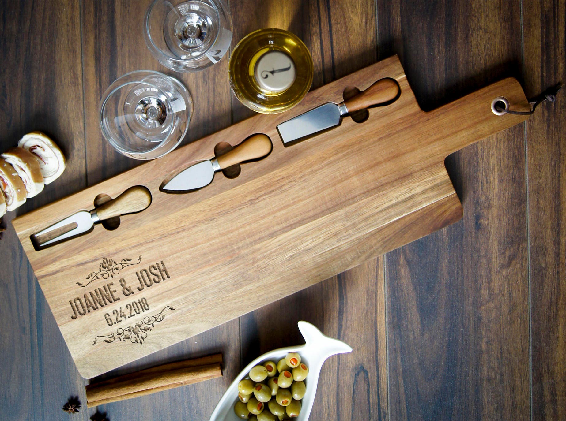 Personalized cheese board set, Custom cheese board set, Engraved cutting board, Wedding gifts, Gifts for the couple, Christmas gifts