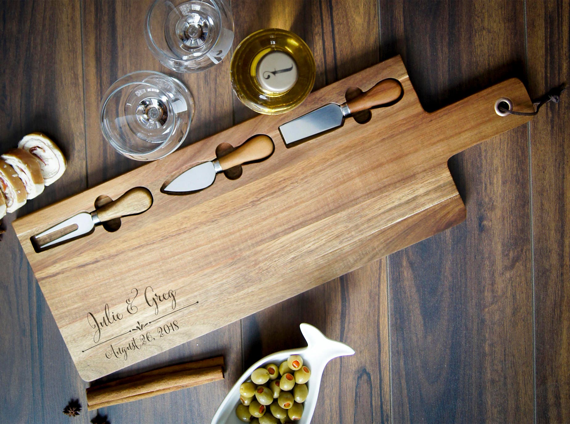 Personalized cheese board set, Custom cheese board set, Engraved cutting board, Wedding gifts, Gifts for the couple, Christmas gifts