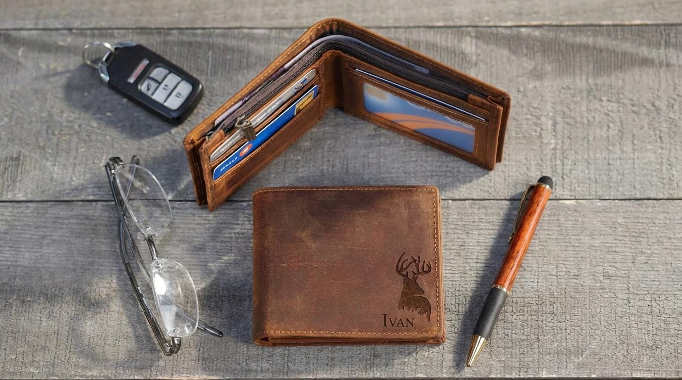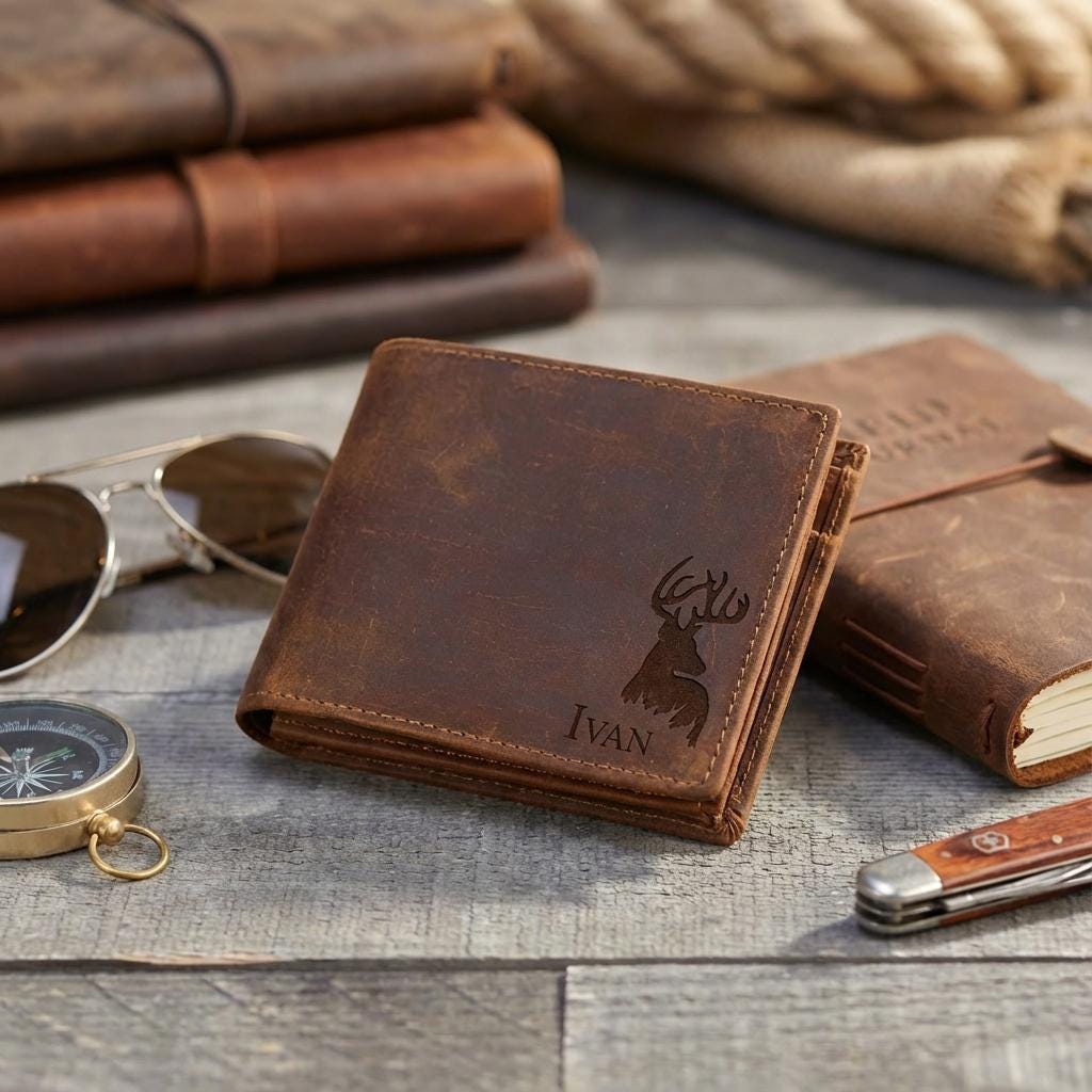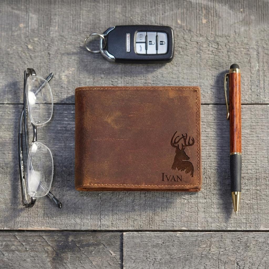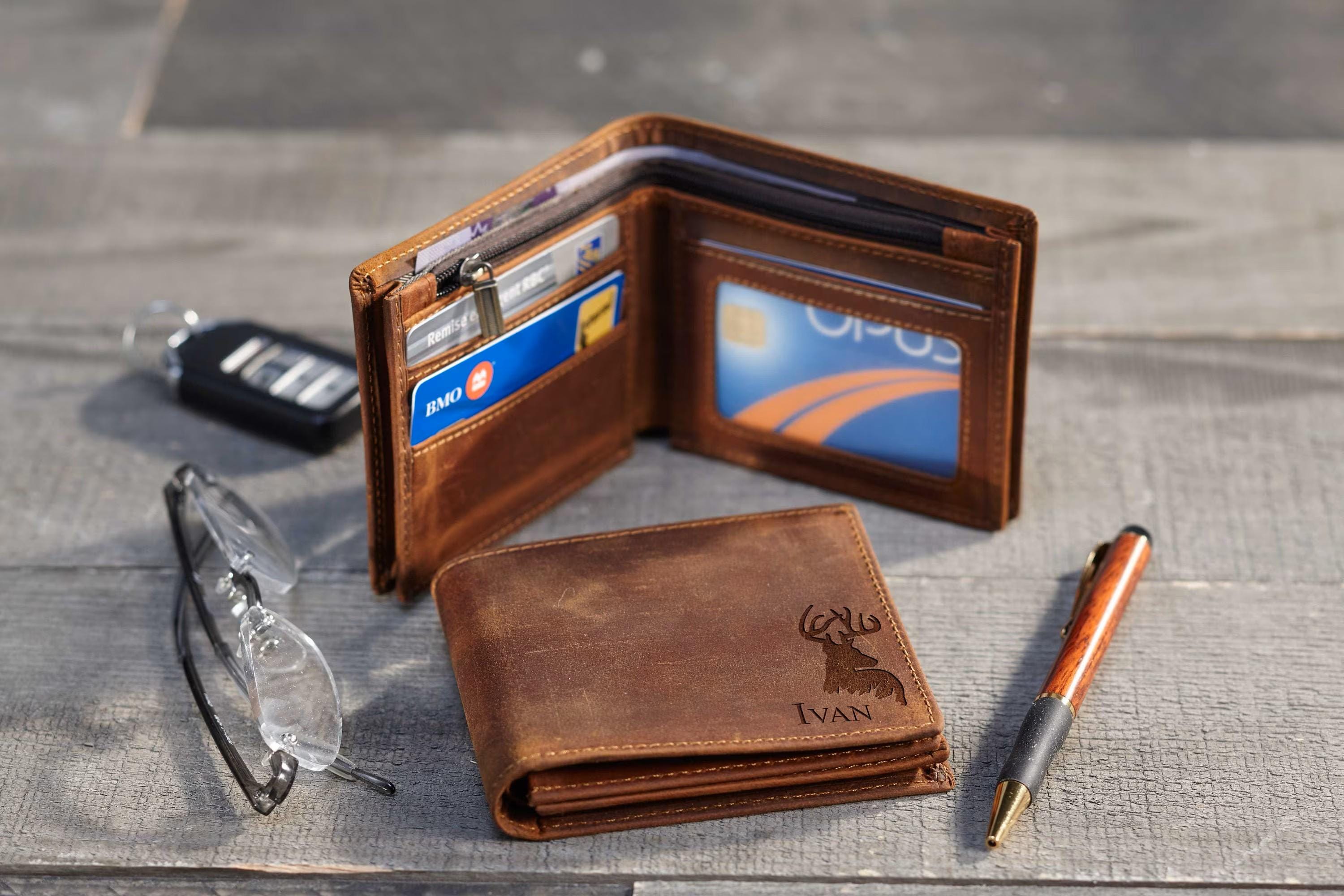 Personalized Leather Wallet - Custom Engraved Elk Wallet: Graduation Gift, Father's Day Gift, Graduation Gift, Birthday Gift, Valentine Gift