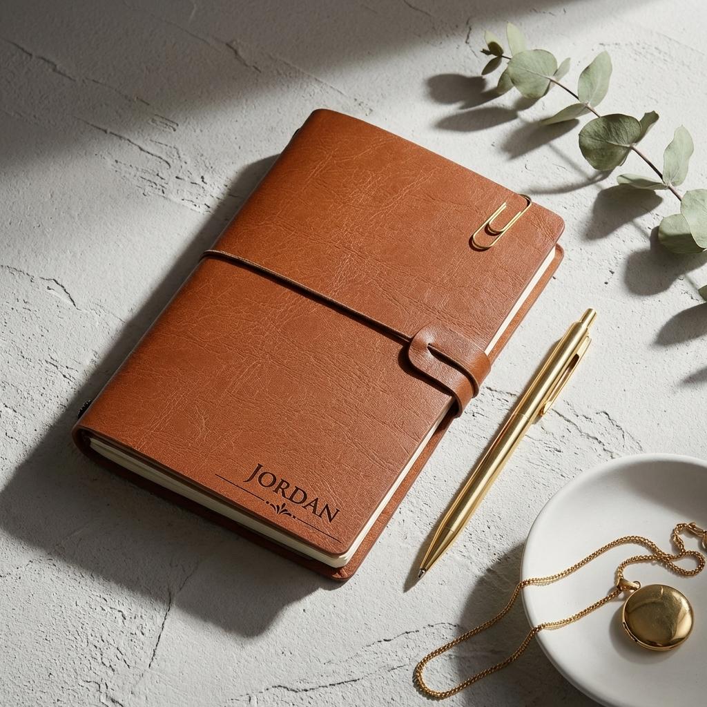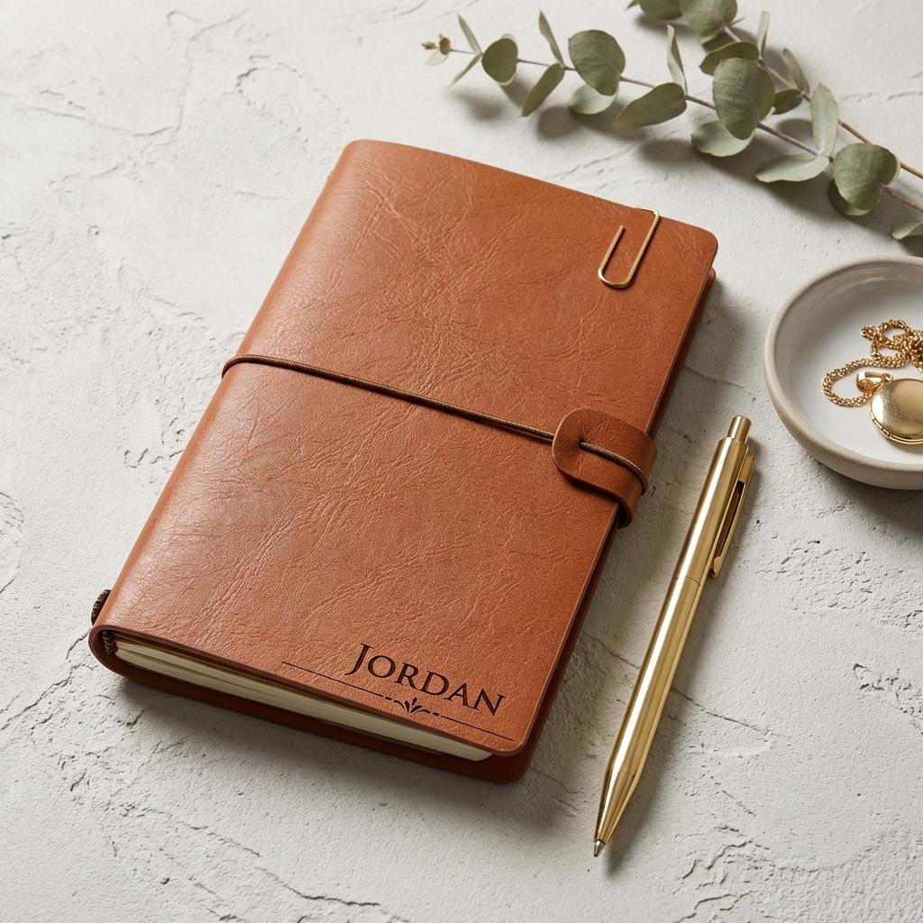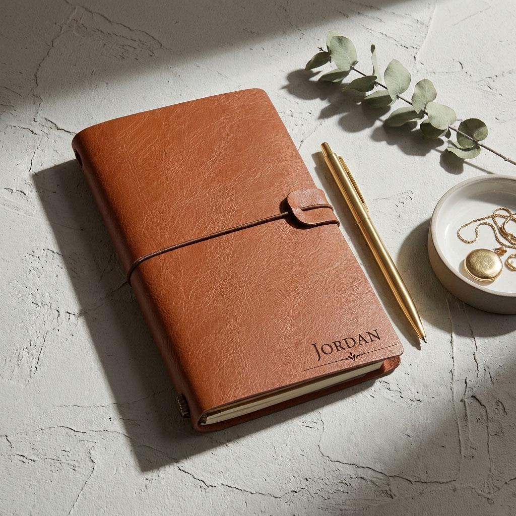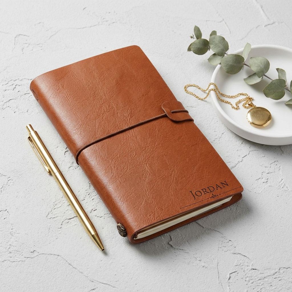 A memory keeper, a beautiful vintage looking leatherette journal with elastic loop closure.