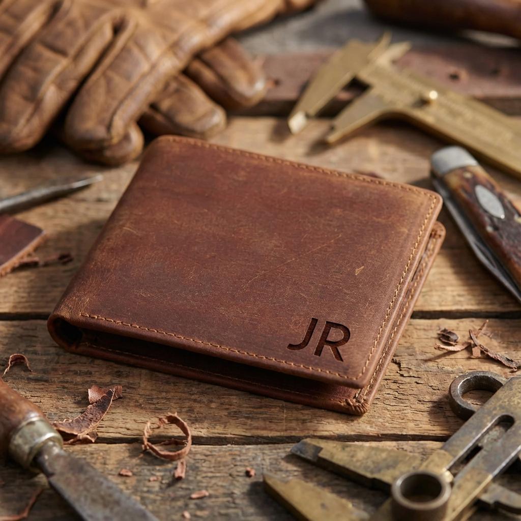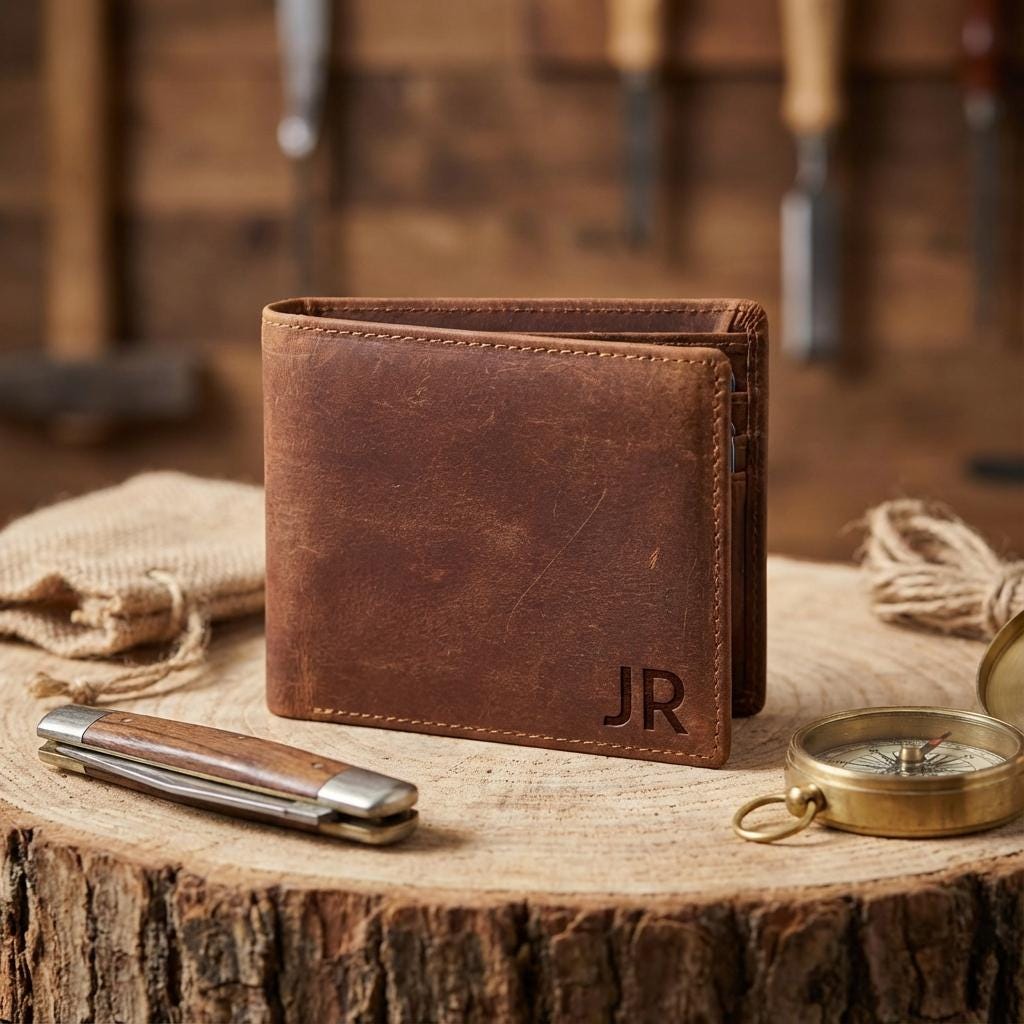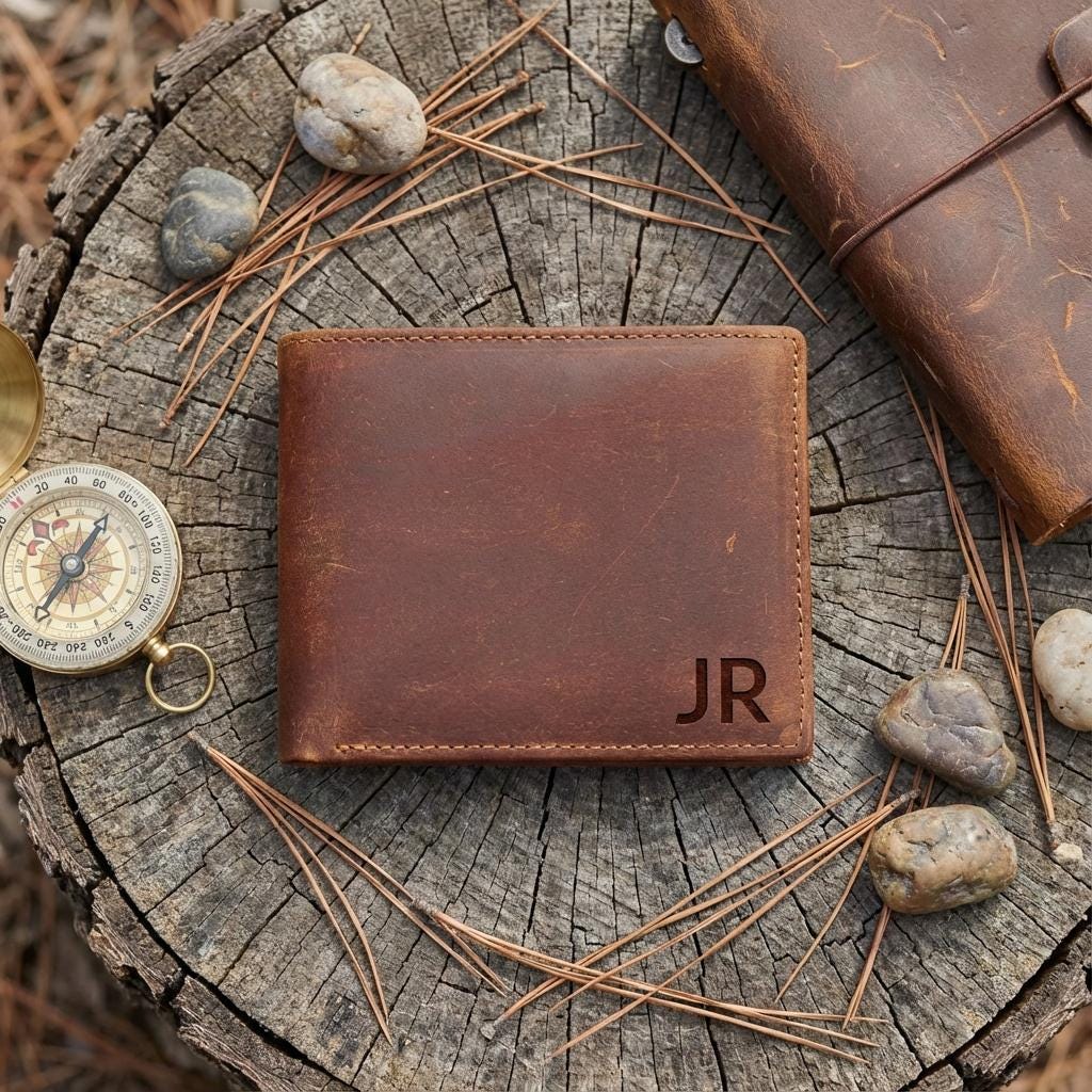 Custom Engraved Genuine Cowhide Leather Wallet for Men – Personalized Bifold Gift for Father's Day, Graduation, & More