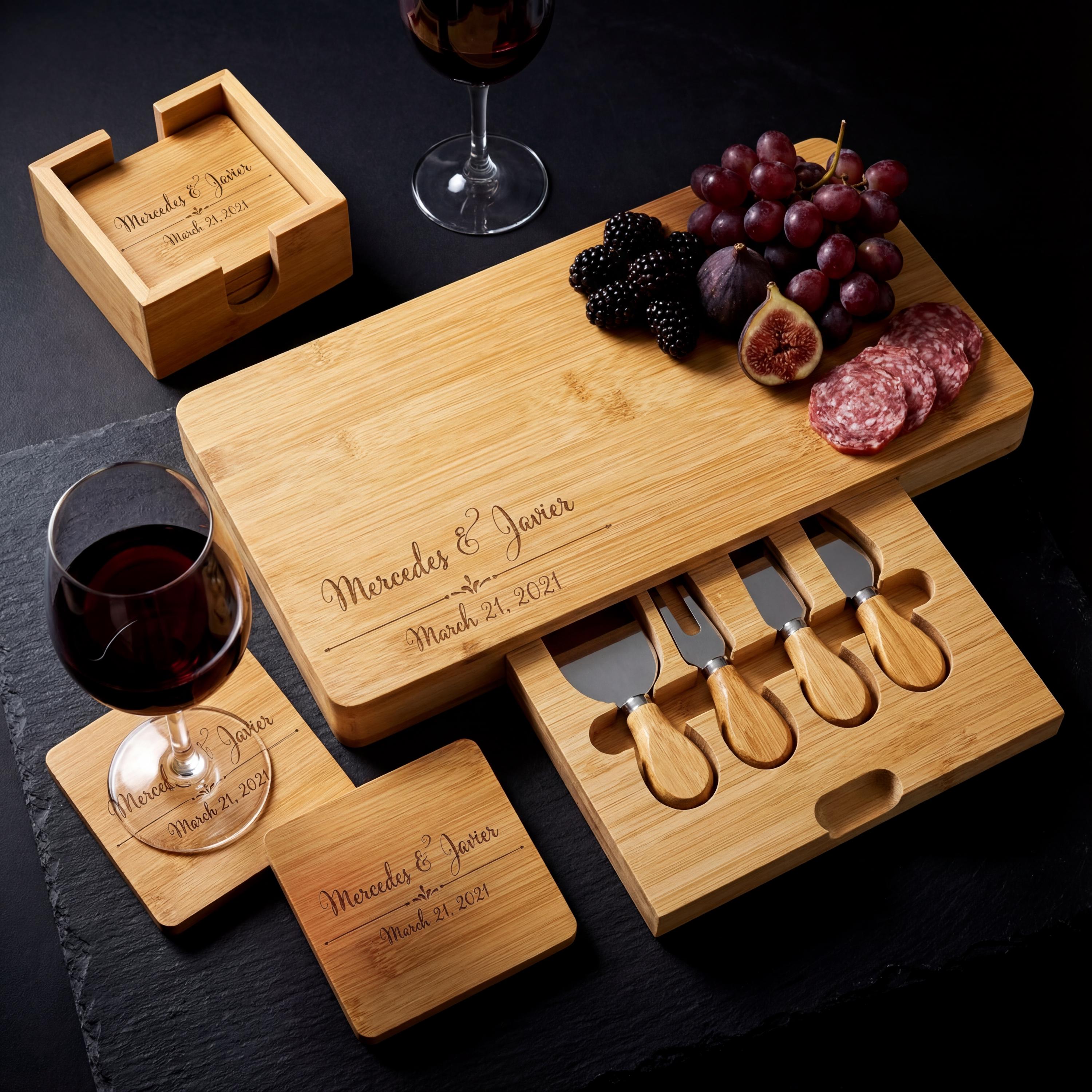 Personalized Cheese Board Set - Custom Engraved Charcuterie Board, Ideal Housewarming Gift For Couples, Anniversary, Wedding, and Christmas