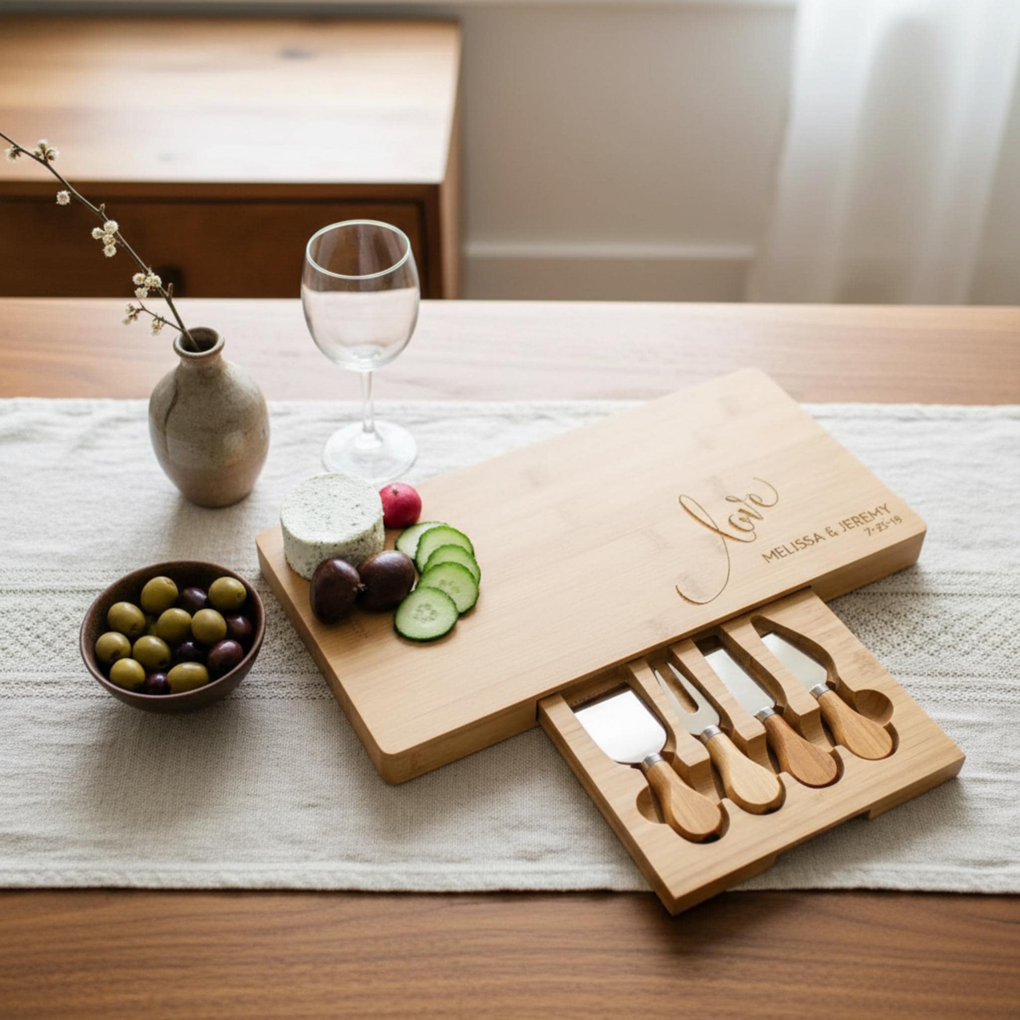 Personalized Bamboo Cheese Board Set, Custom cheese board, Engraved cutting board, Wedding gifts, Gifts for the couple, Christmas gifts