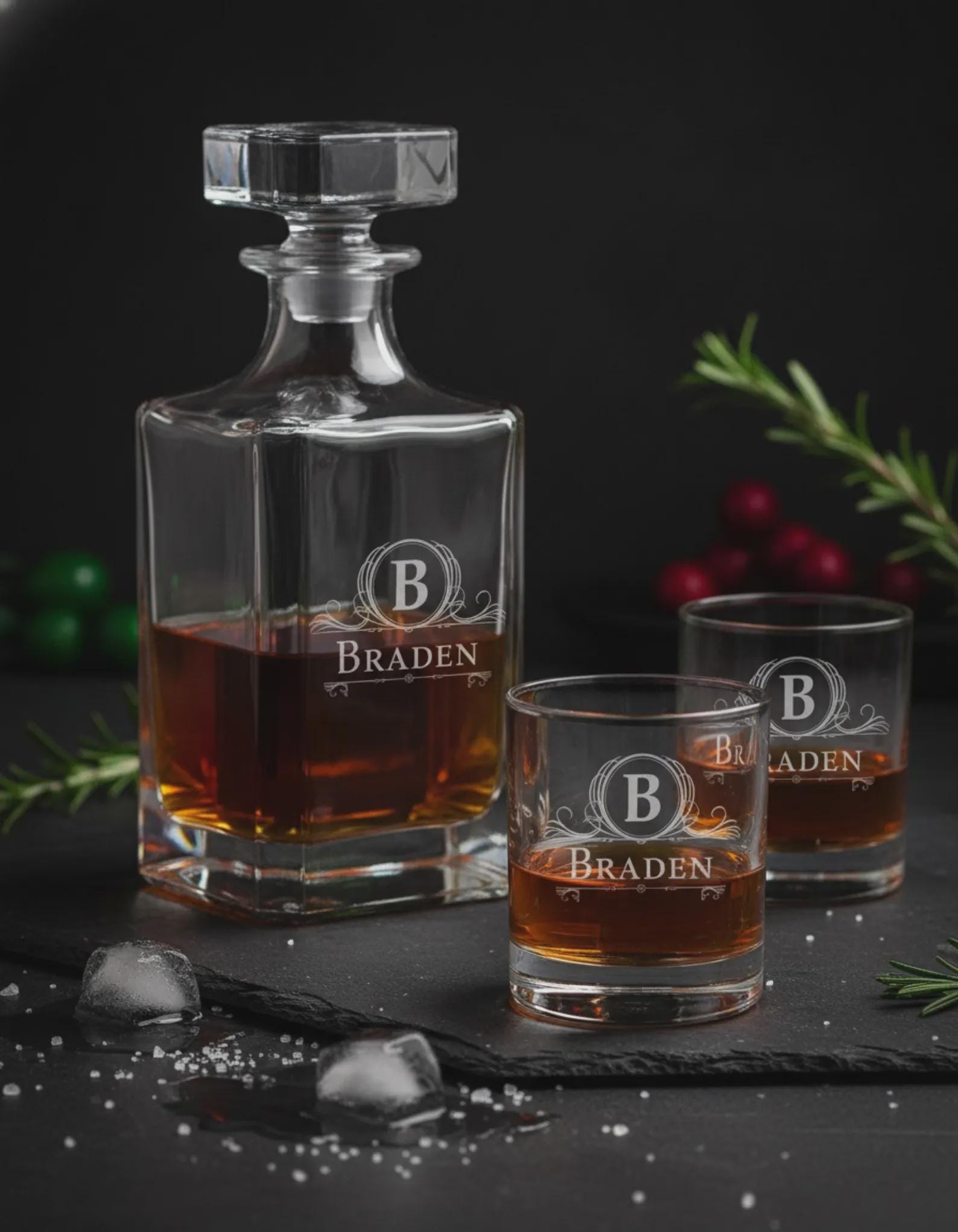 Personalized Whiskey Decanter, Engraved Decanter Set, Monogrammed decanter, Groomsmen Gift, Scotch Decanter, Housewarming Gift