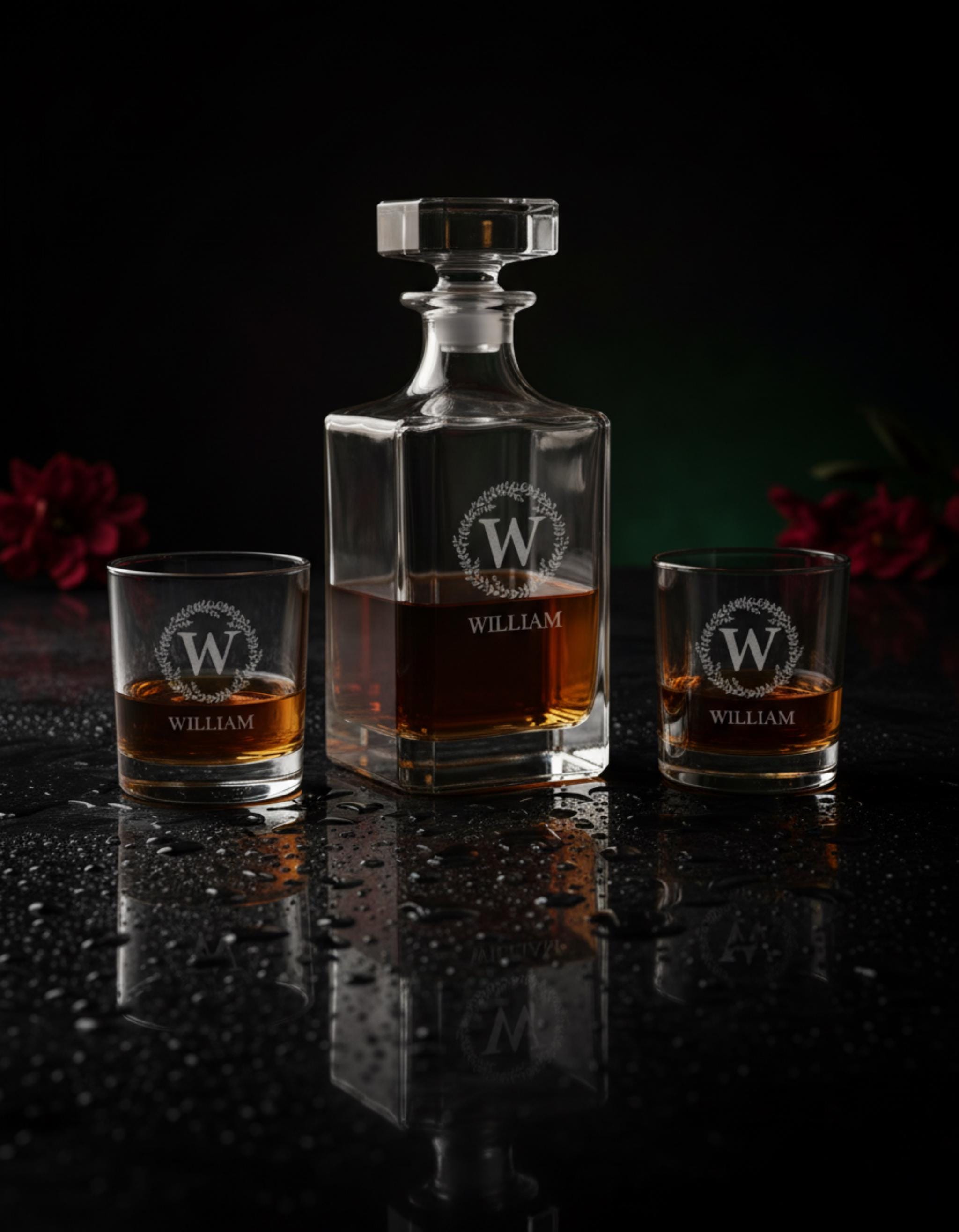 Drinking whiskey involves special and personal rituals, why don't you make it extra special using our personalized whiskey decanter set, each piece has a sleek and elegant design that provides the ultimate drinking experience.