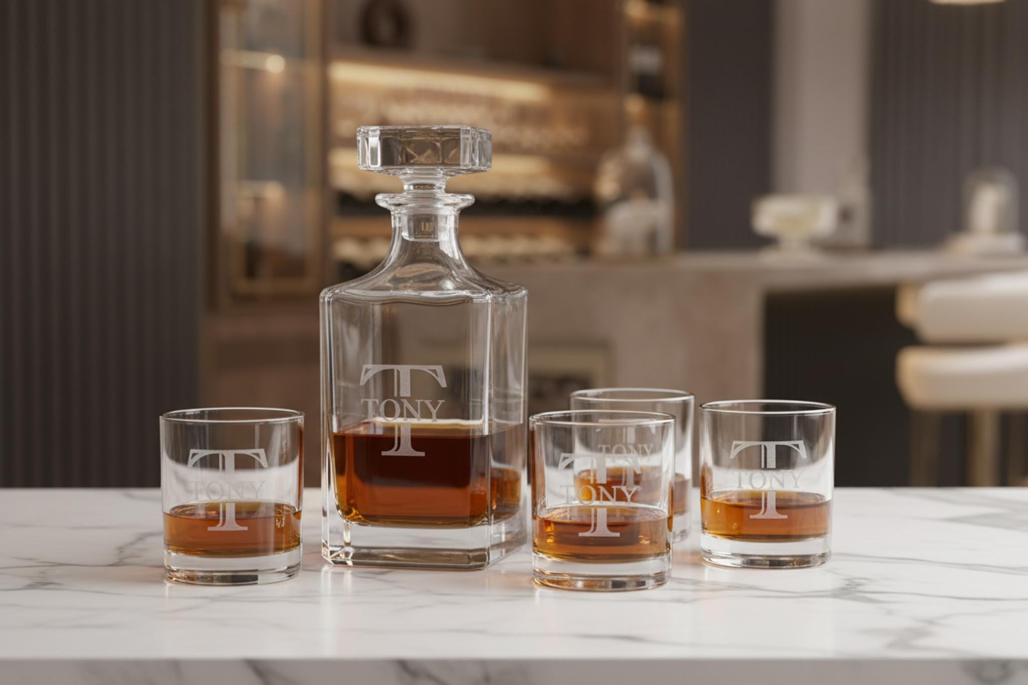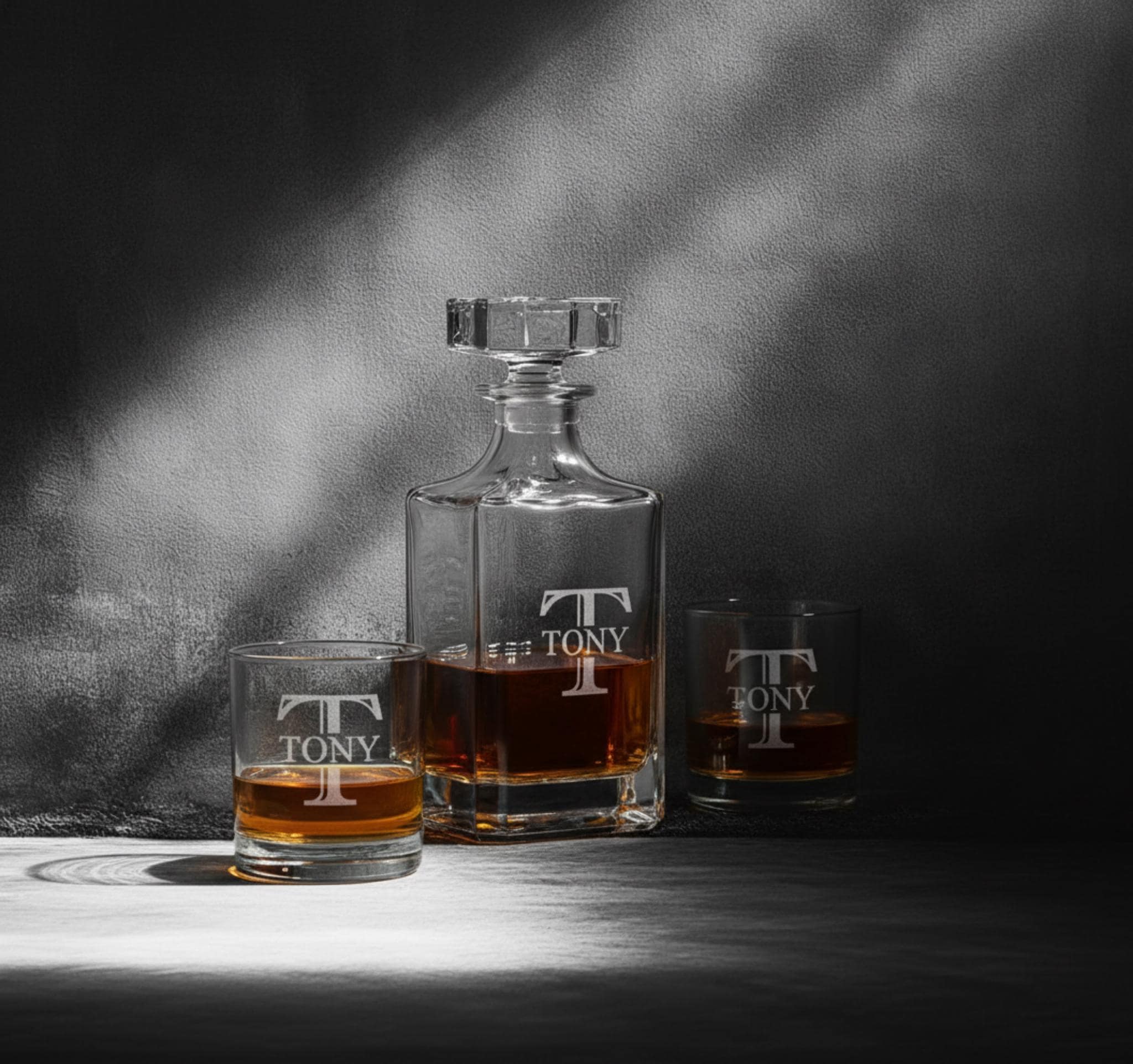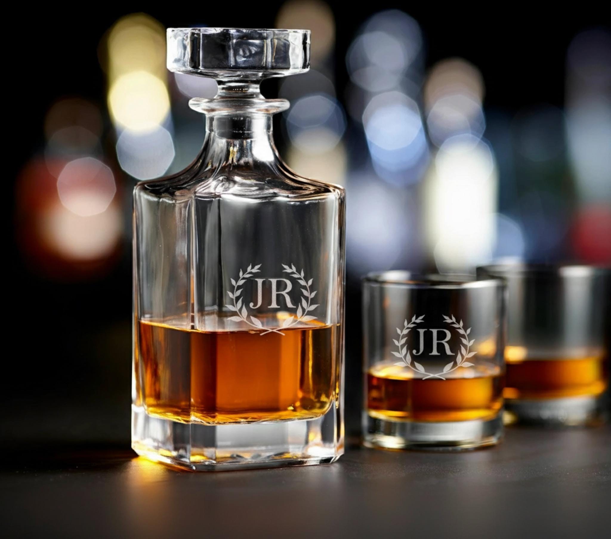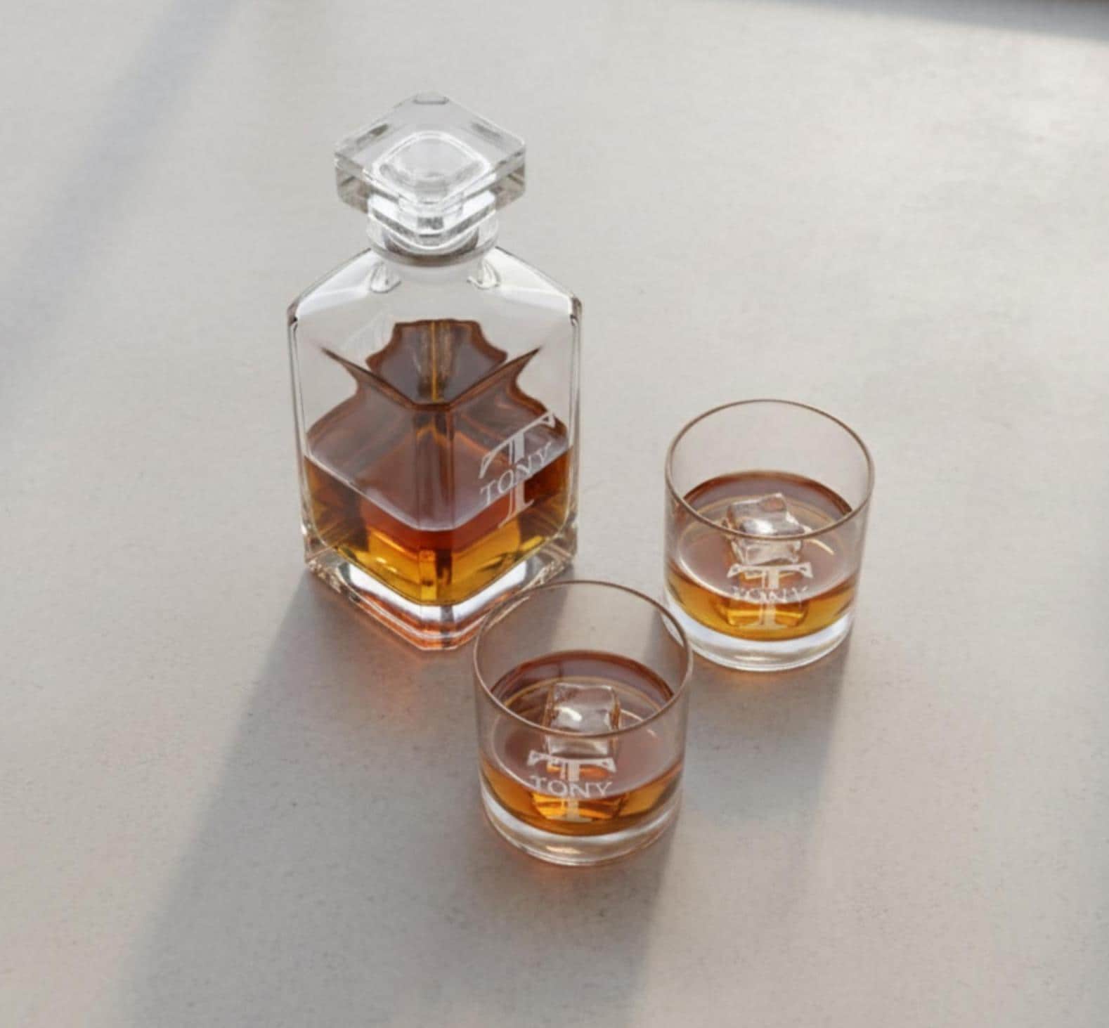 Our engraved whiskey decanter sets are the ideal gift!