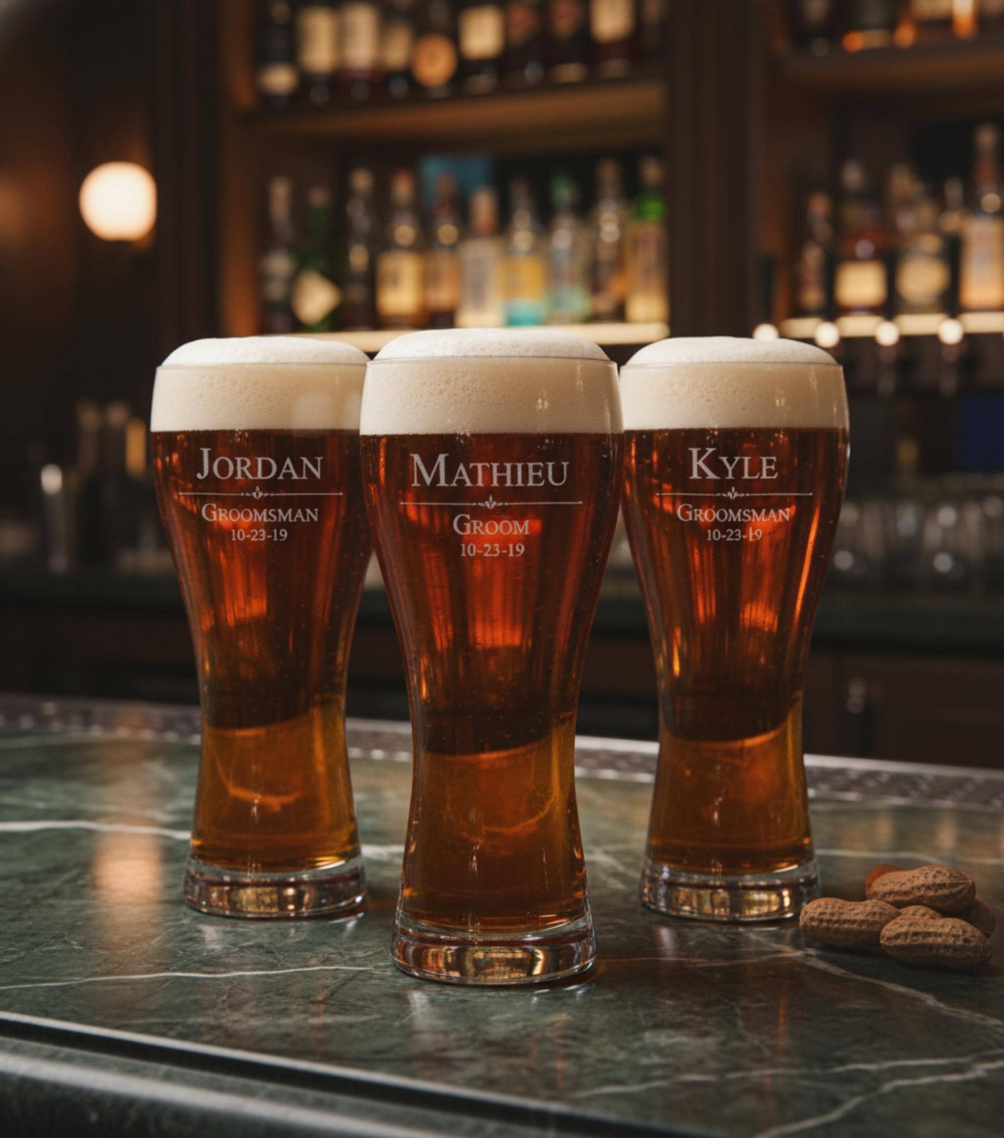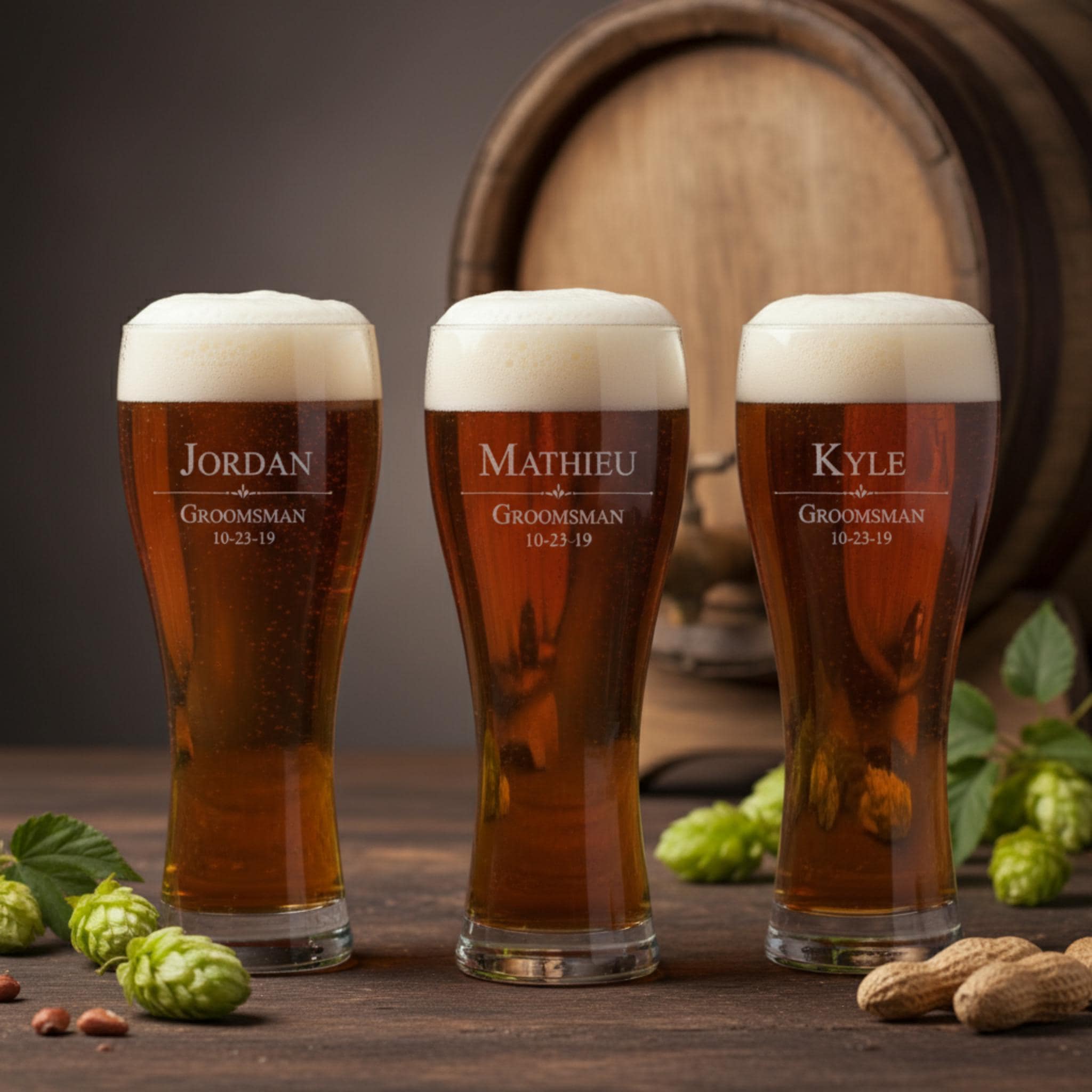Personalized Glass, Custom Engraved Beer Glass, Wedding Gift for Groomsmen, Monogrammed Beer Glass, Groomsmen gifts, Pilsner Beer glass