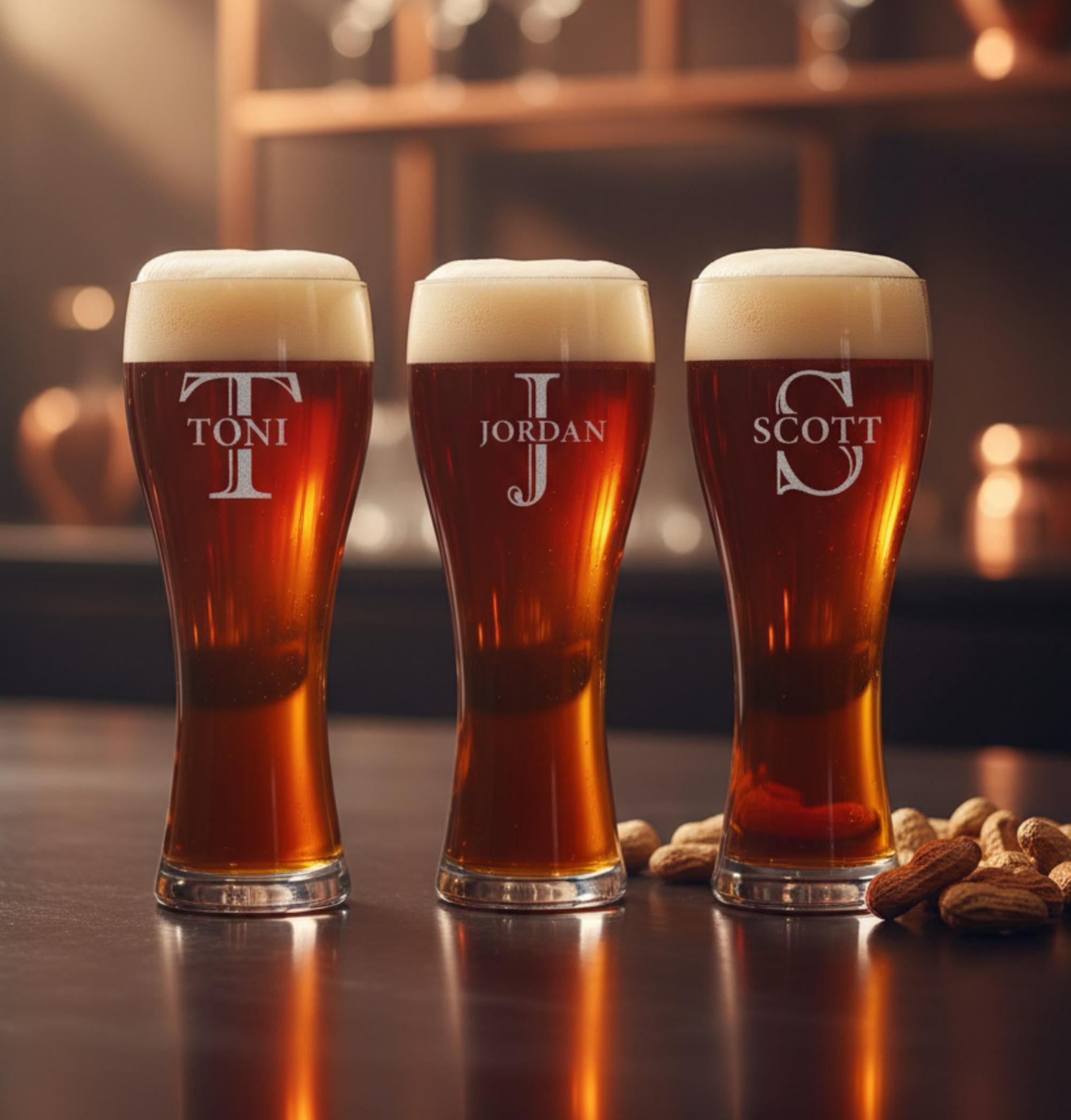 Personalized Glass, Custom Engraved Beer Glass, Wedding Gift for Groomsmen, Monogrammed Beer Glass, Groomsmen gifts, Pilsner Beer glass