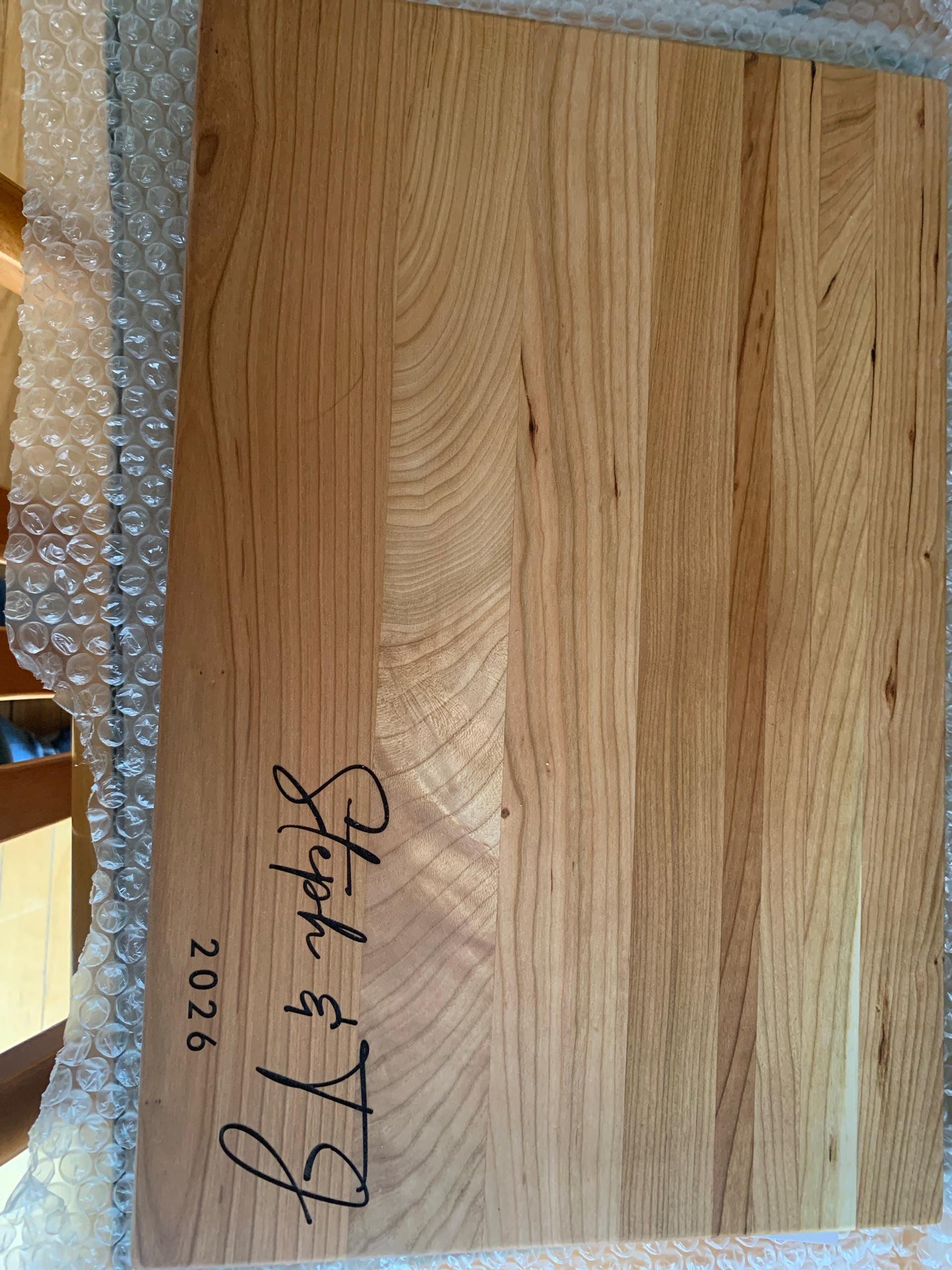 These natural variations in the wood are what make our cutting boards truly one-of-a-kind and special. Your personalized message will be etched onto a board that is unlike any other, making it a thoughtful and unique gift that will be treasured for years to come.