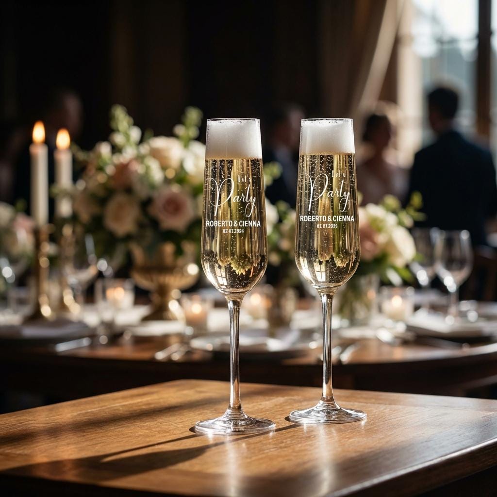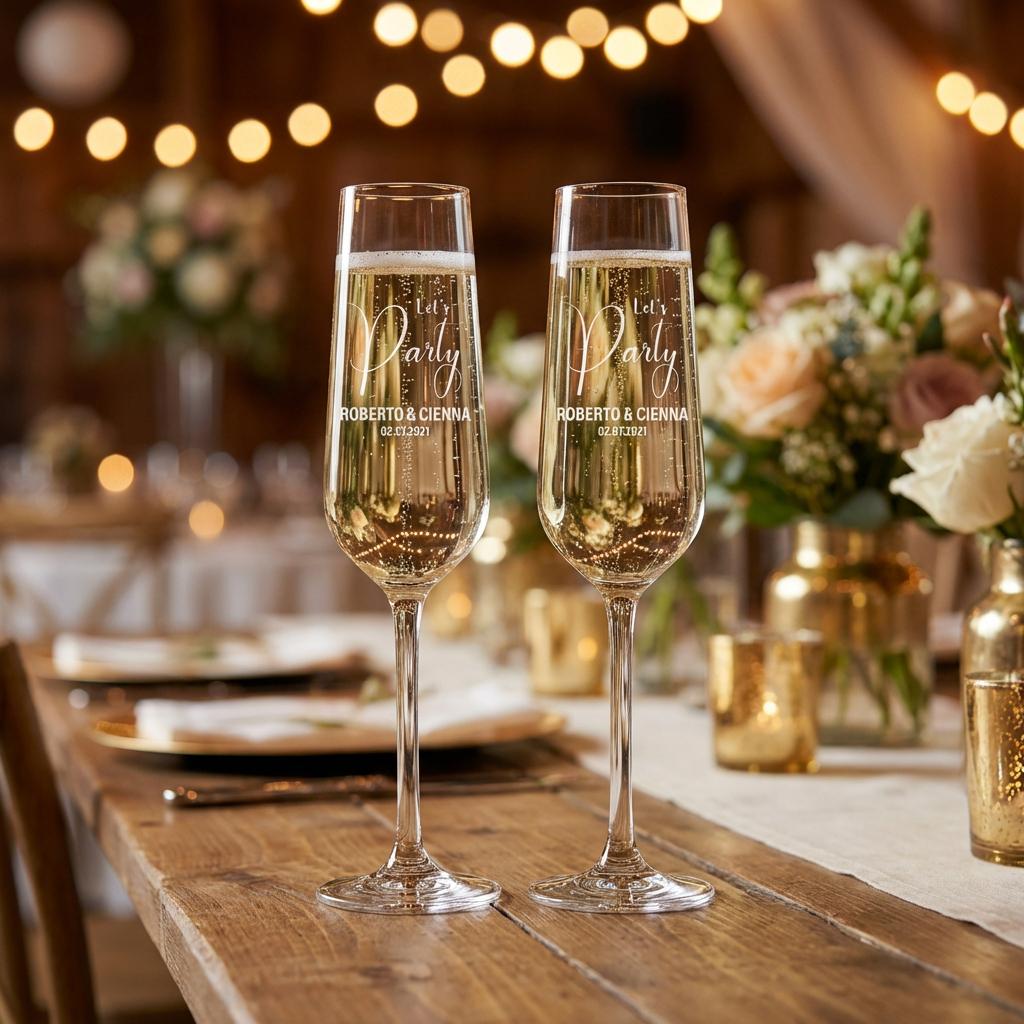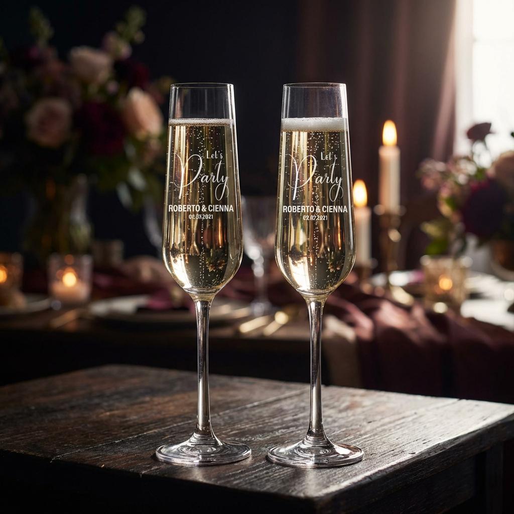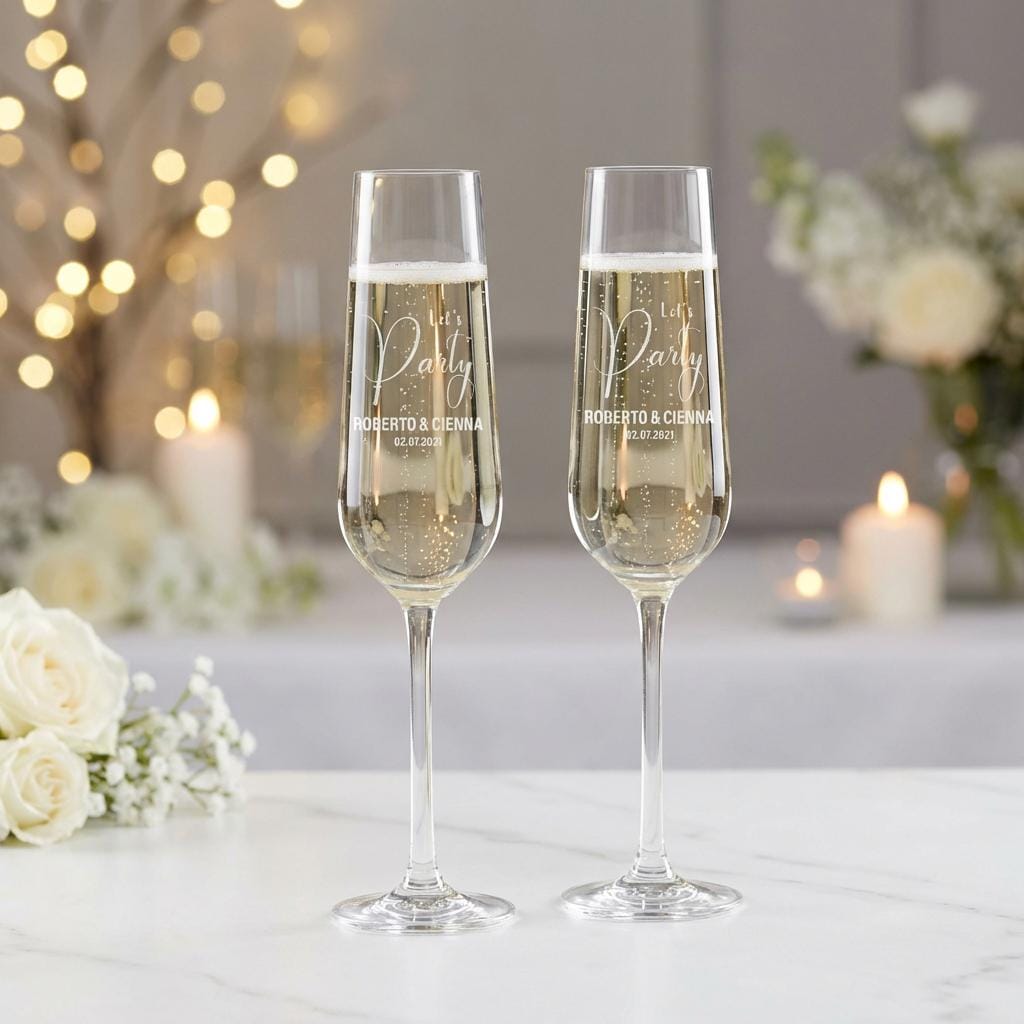 Our engraved Champagne glasses are the ideal gift