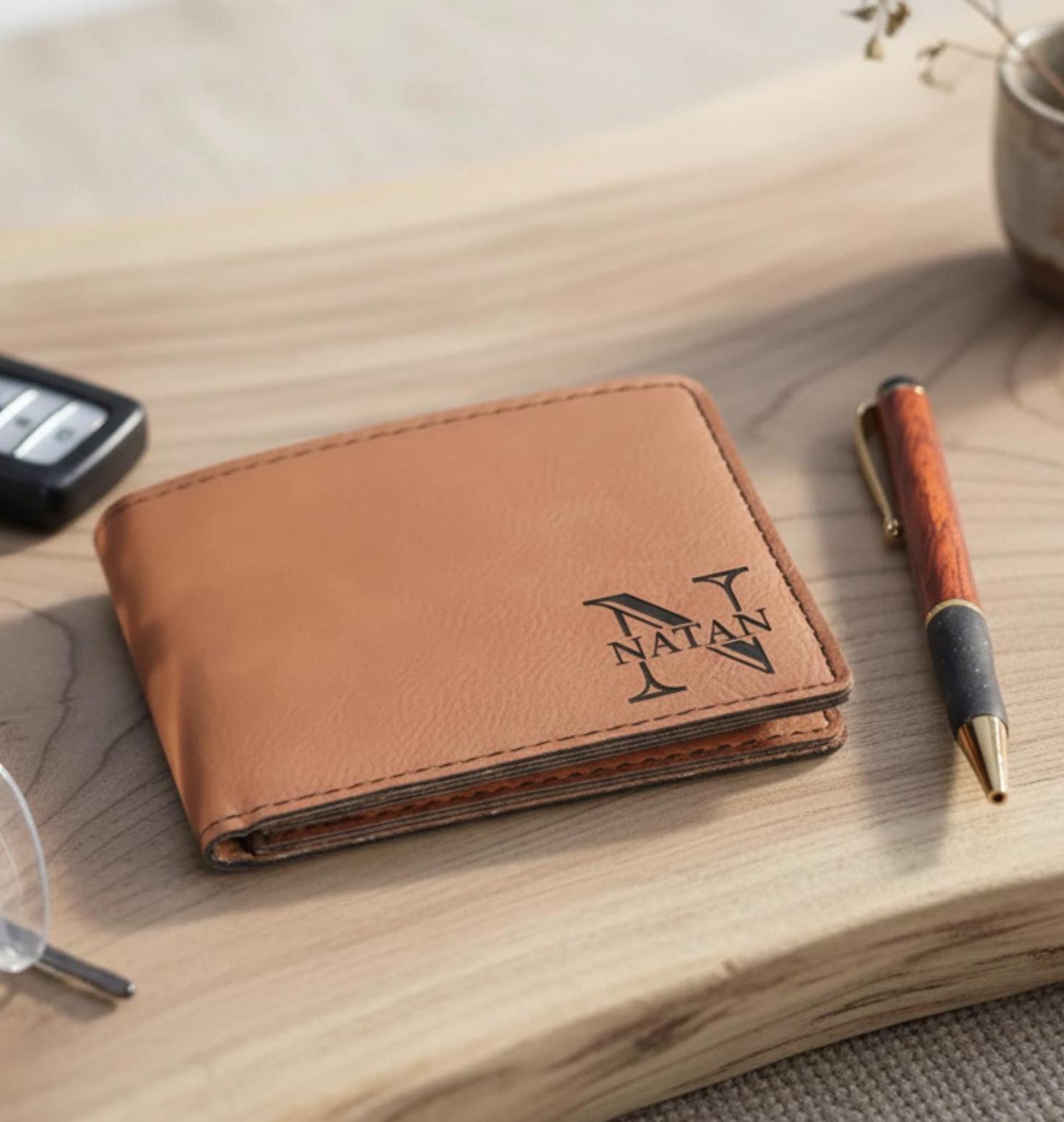 Elevate his everyday essentials with our personalized vegan leather bifold—a sophisticated accessory designed for the modern man.