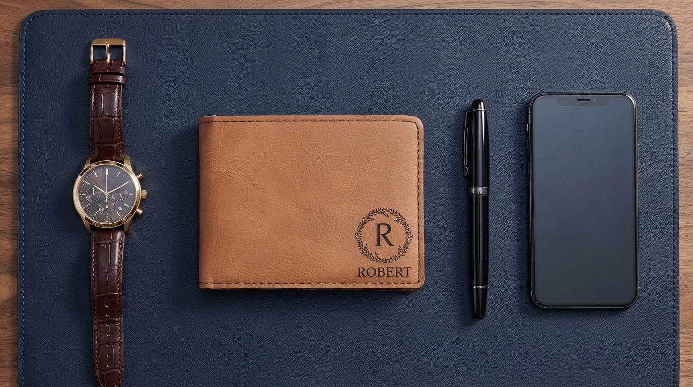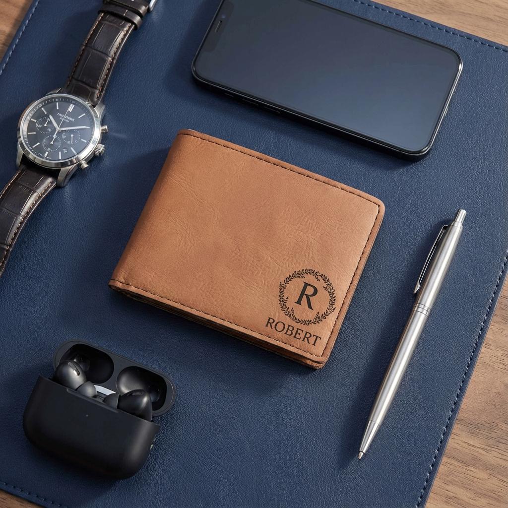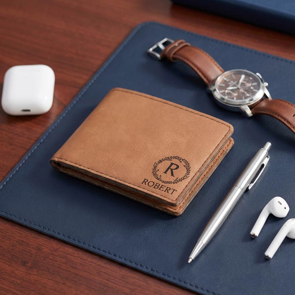 Custom Monogram Gift | Personalized Mens Wallet & Vegan Leather Groomsmen Proposal