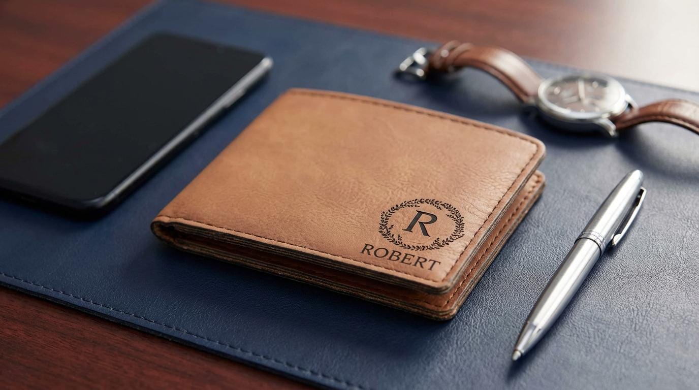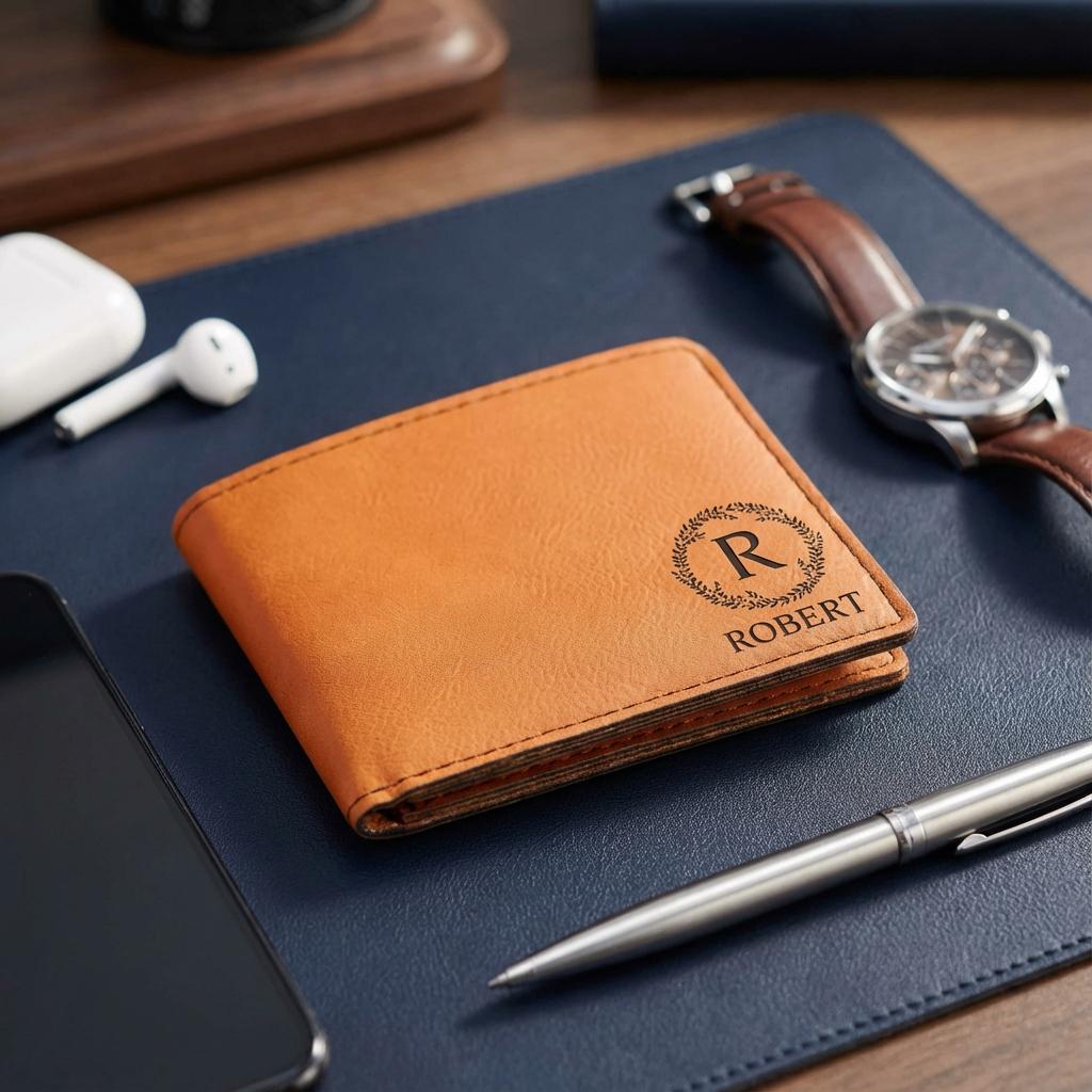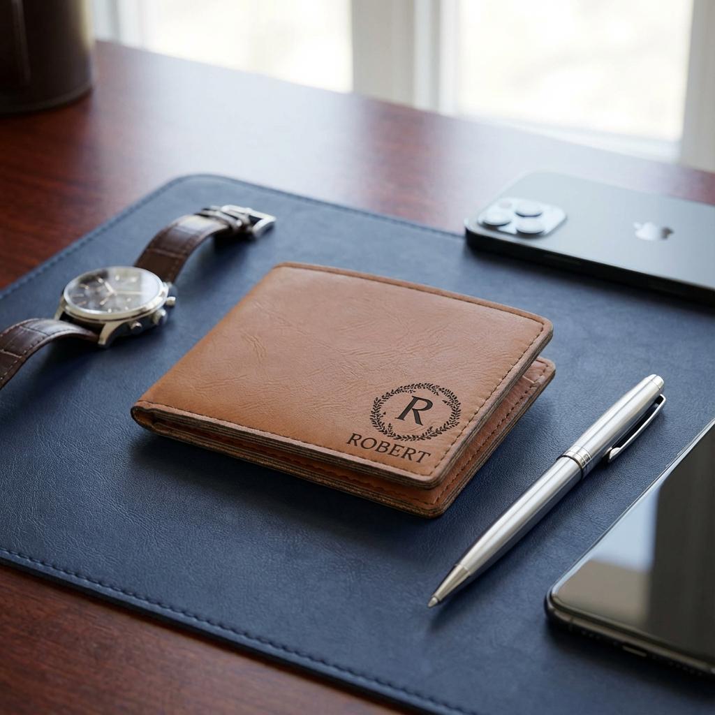 Elevate everyday style and practicality with this leatherette wallet—where form meets function in a personalized package.