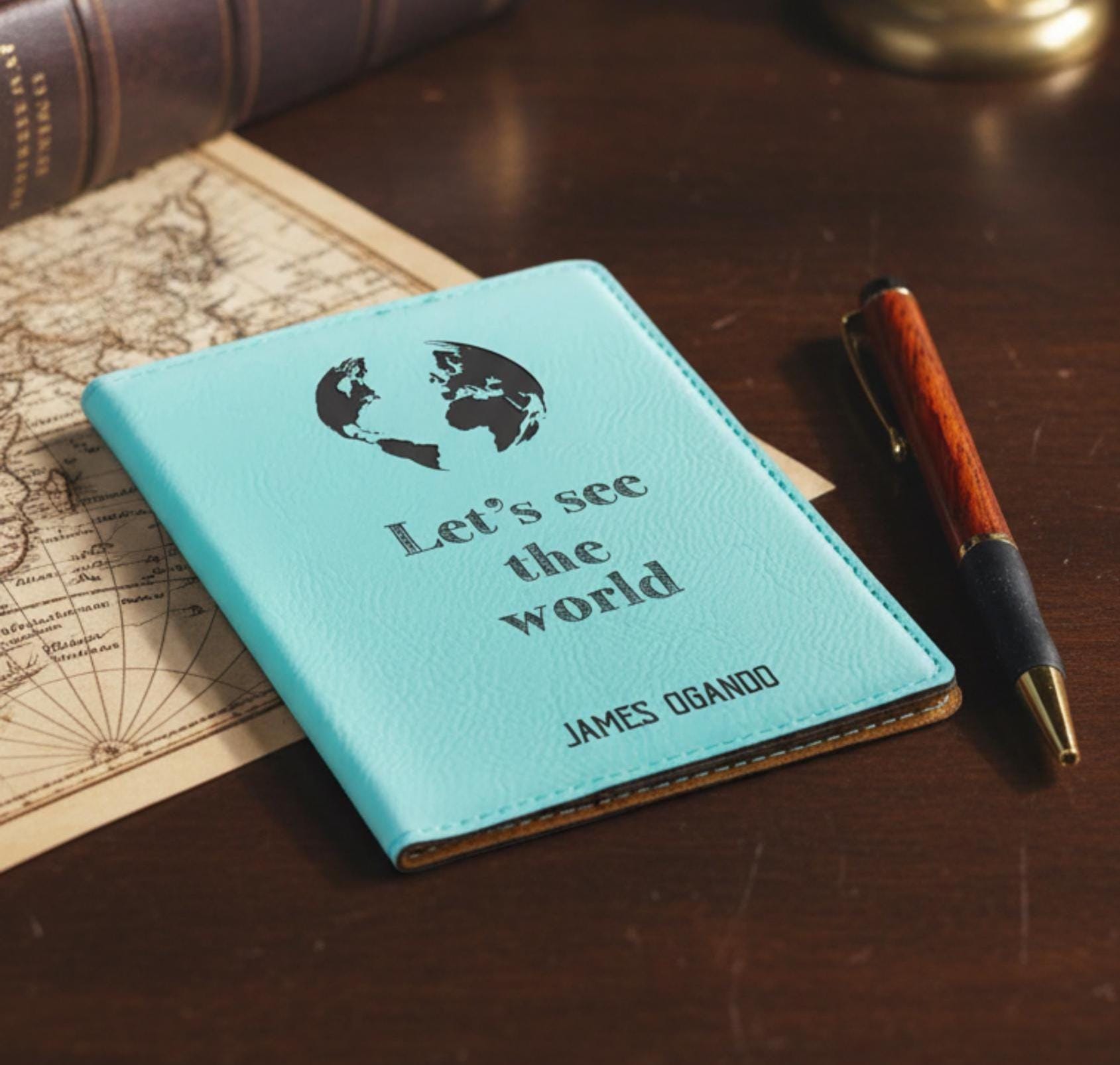 Our personalized vegan leather passport cover blends functionality with style, making it the ideal travel companion for every adventurer. Crafted with care and attention to detail, this Leatherette Passport Cover is both sleek and durable, ensuring your prized travel document stays protected in style.