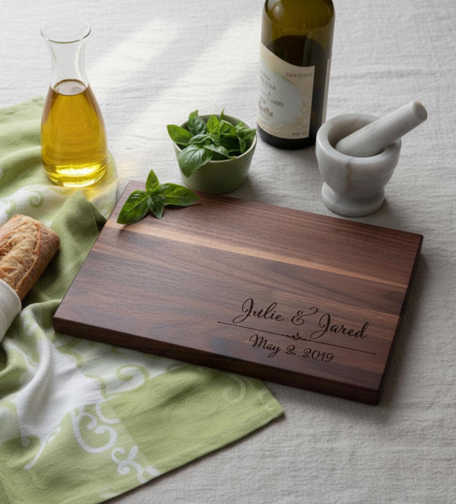 Whether you are celebrating a wedding, a housewarming, or a 5th anniversary (the "Wood" anniversary!), this custom-engraved board is the perfect blend of sentiment and functionality. Unlike generic registry items, this personalized piece serves as a daily reminder of their special bond.