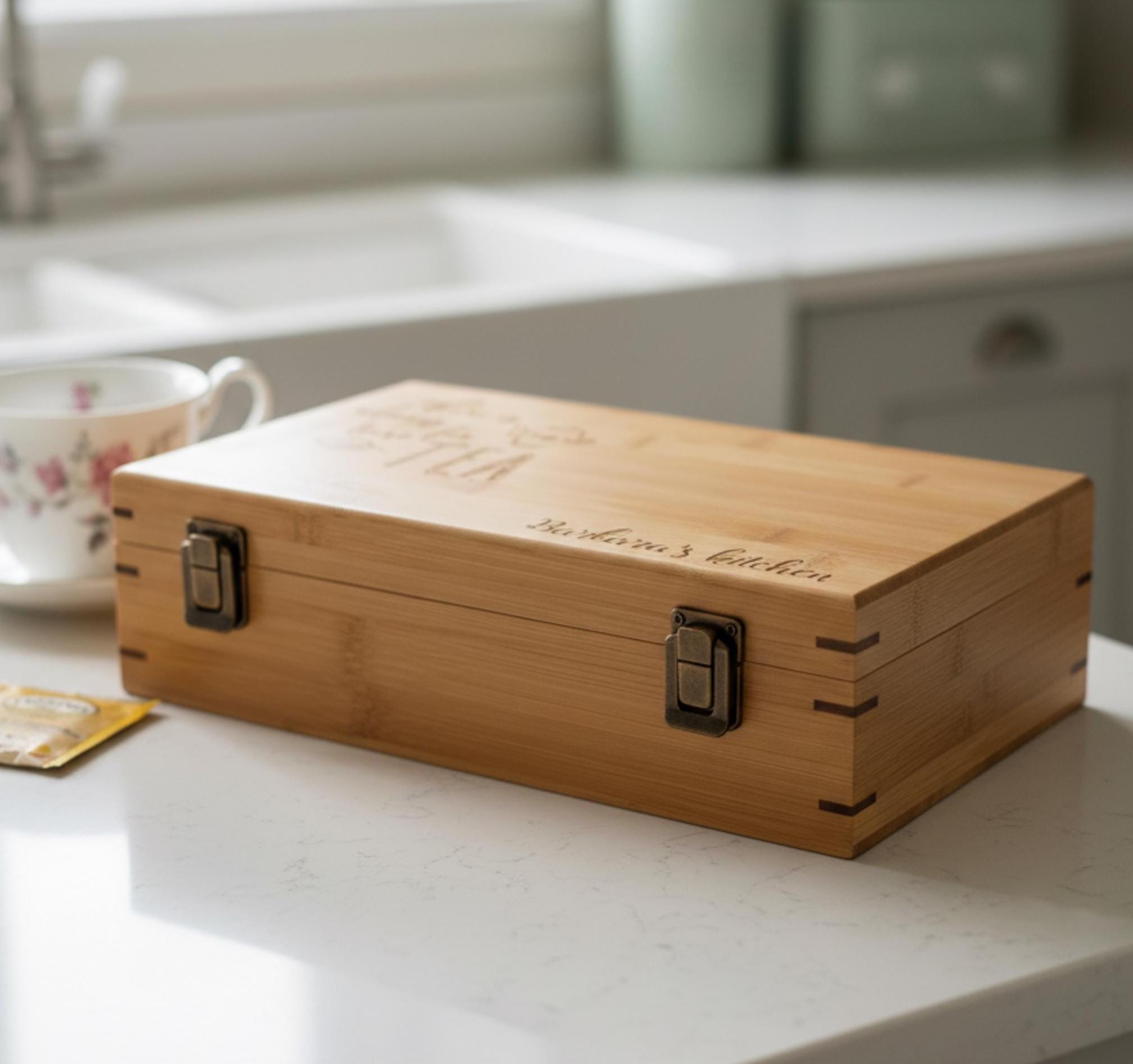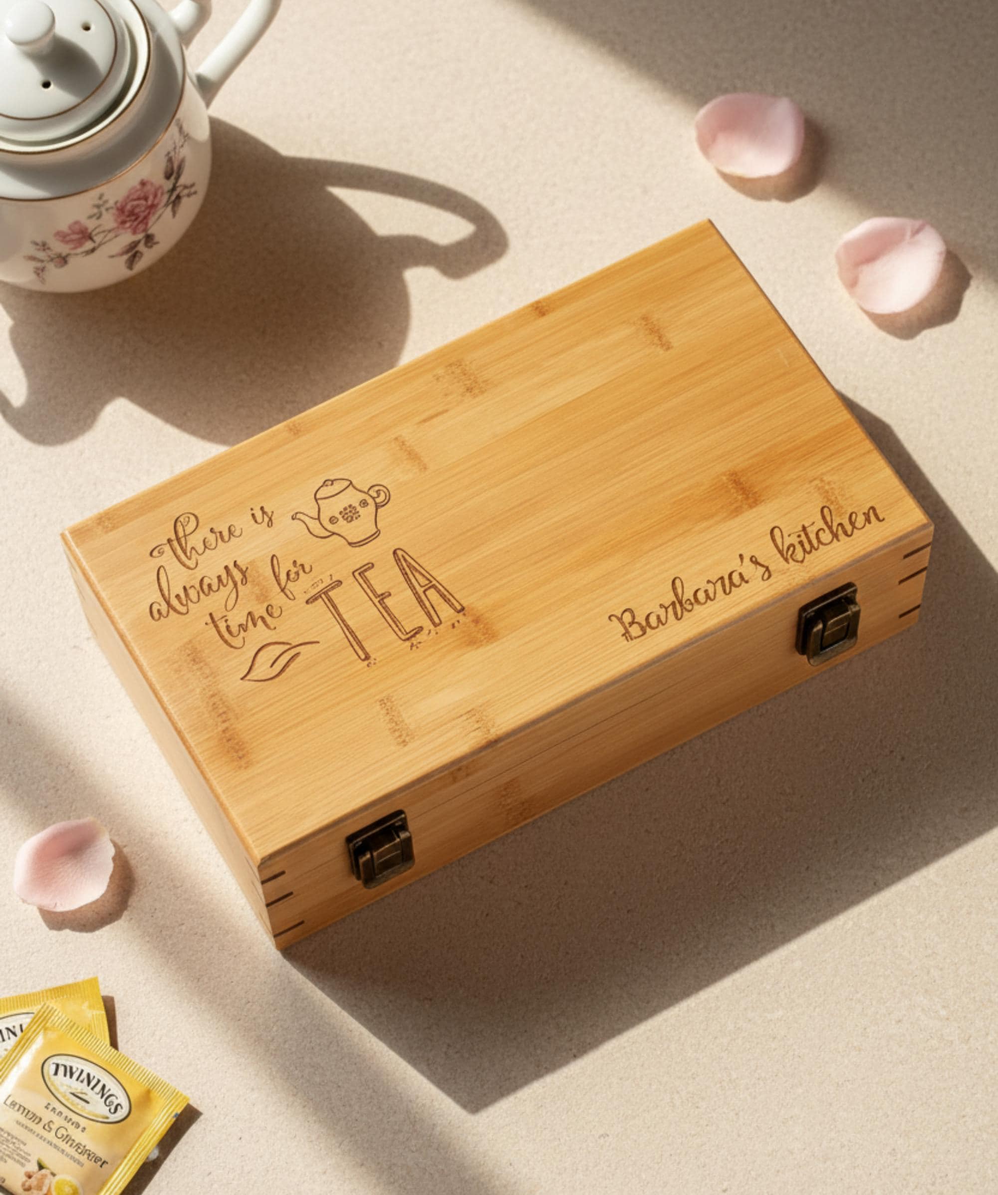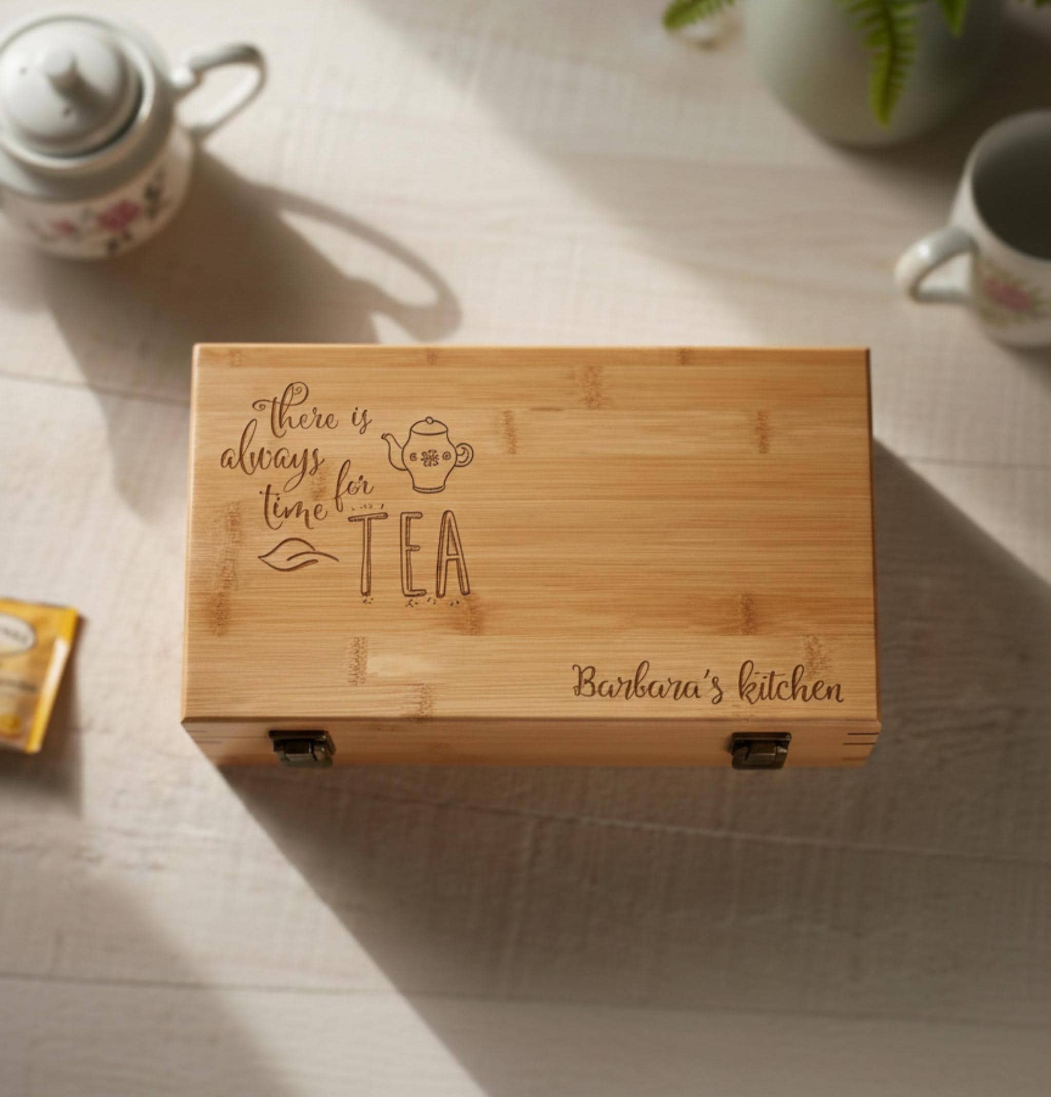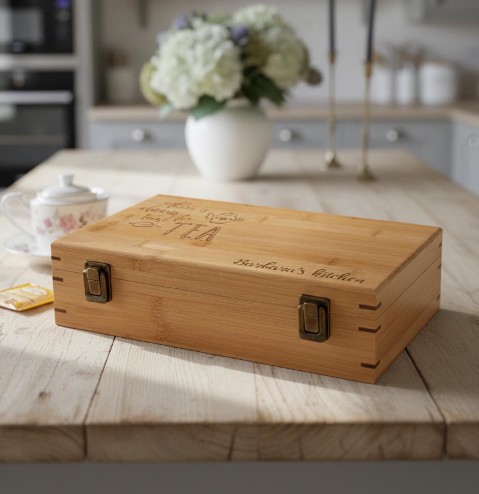 Personalized Tea Box, Custom Engraved Tea Organizer Gift for Mother's Day, Grandma, Tea Lovers, Kitchen Decor