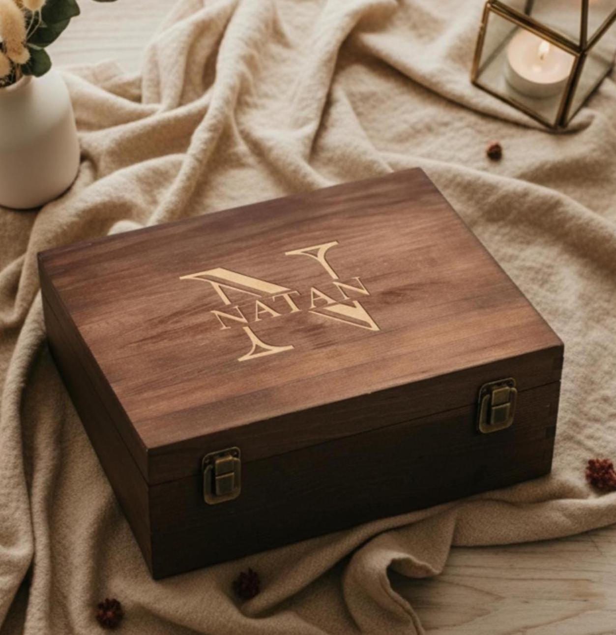 Personalized wooden gift box, Engraved Name Box, Wooden Keepsake box, Groomsman gift box, Rustic Gift Box, Christmas gift box