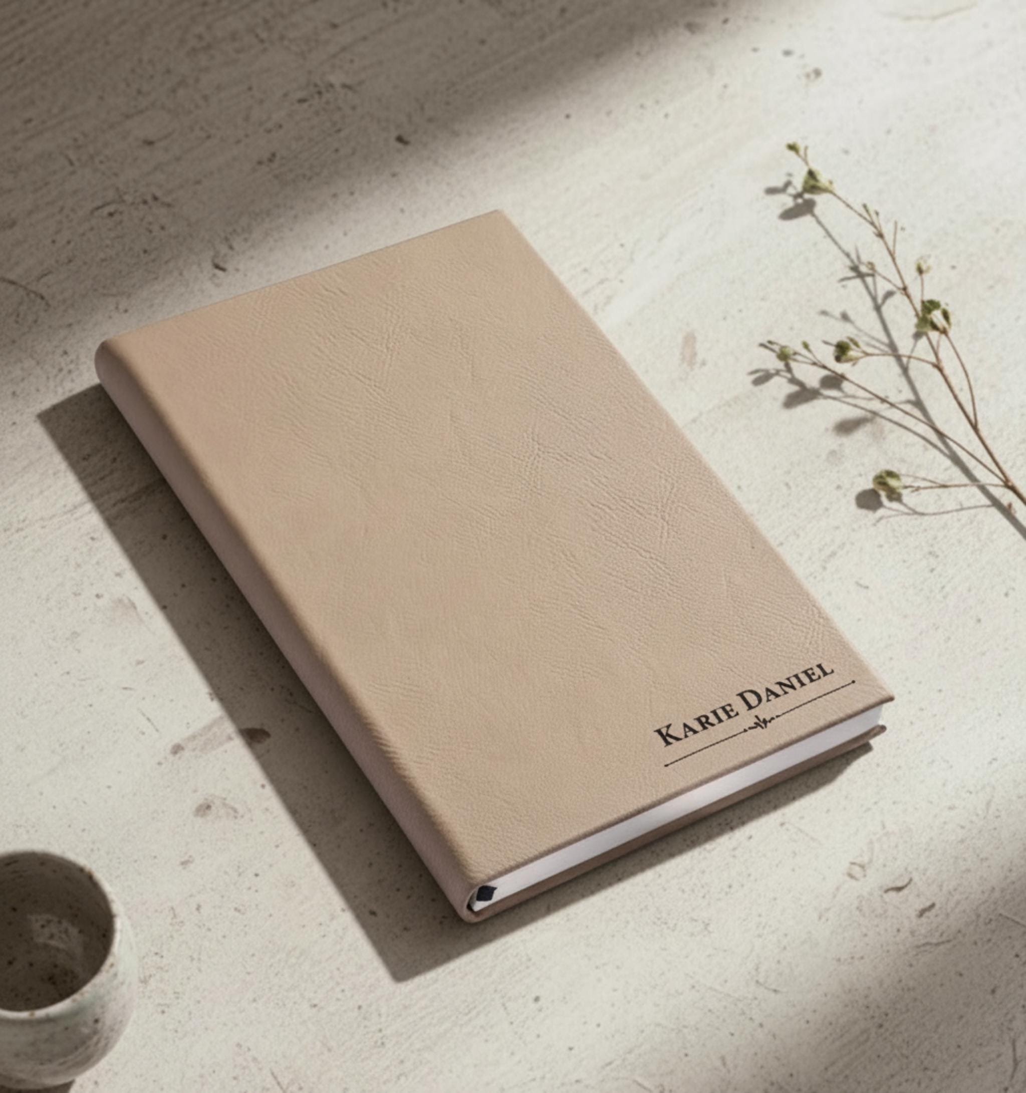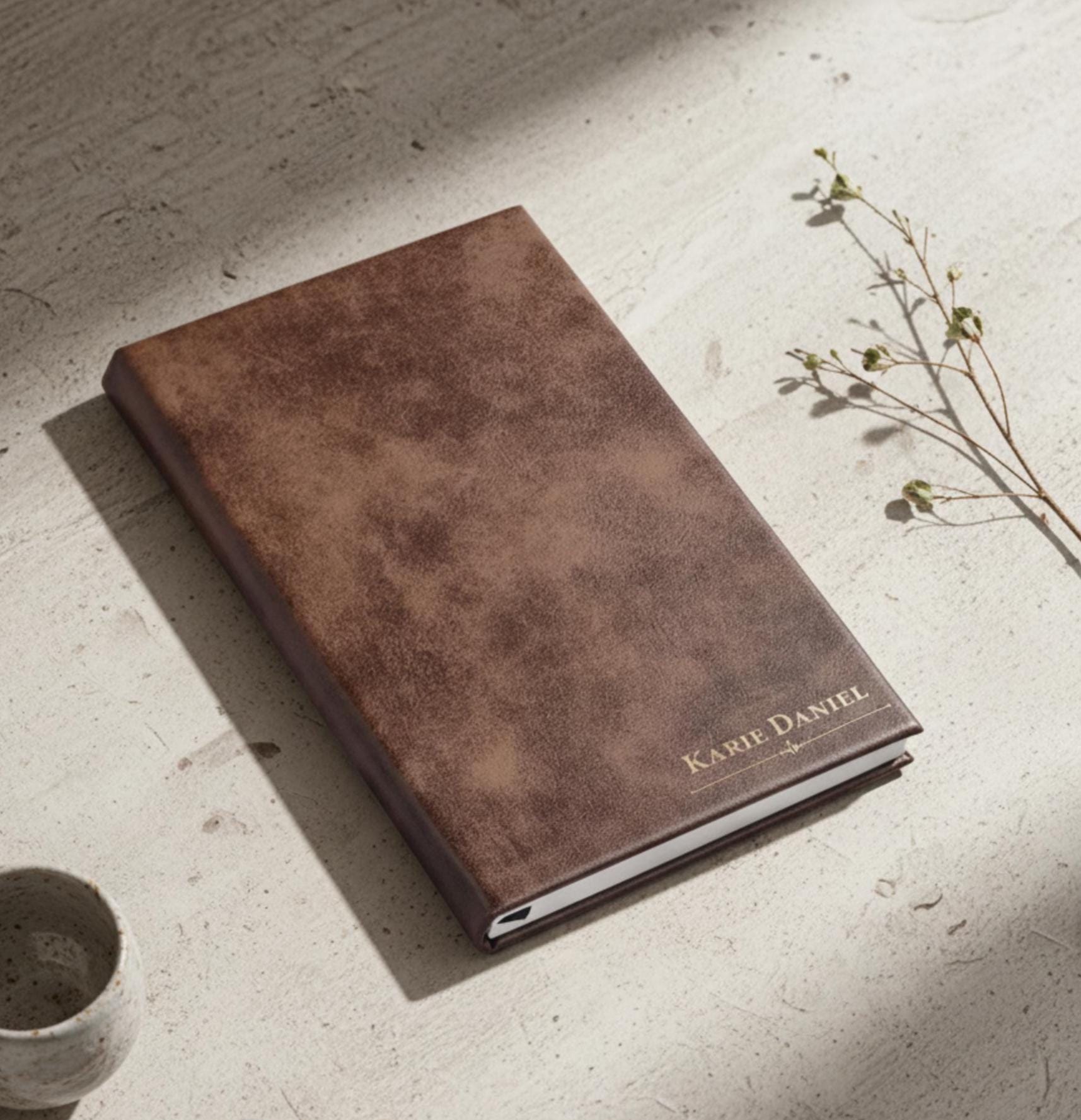 Beautiful and timeless gift that seamlessly blends style with practicality. Our Custom Engraved Journal is a meticulously crafted leatherette notebook, perfect for capturing thoughts, dreams, and everyday reflections. Add a personal touch by engraving a name or a meaningful message to create a cherished keepsake.